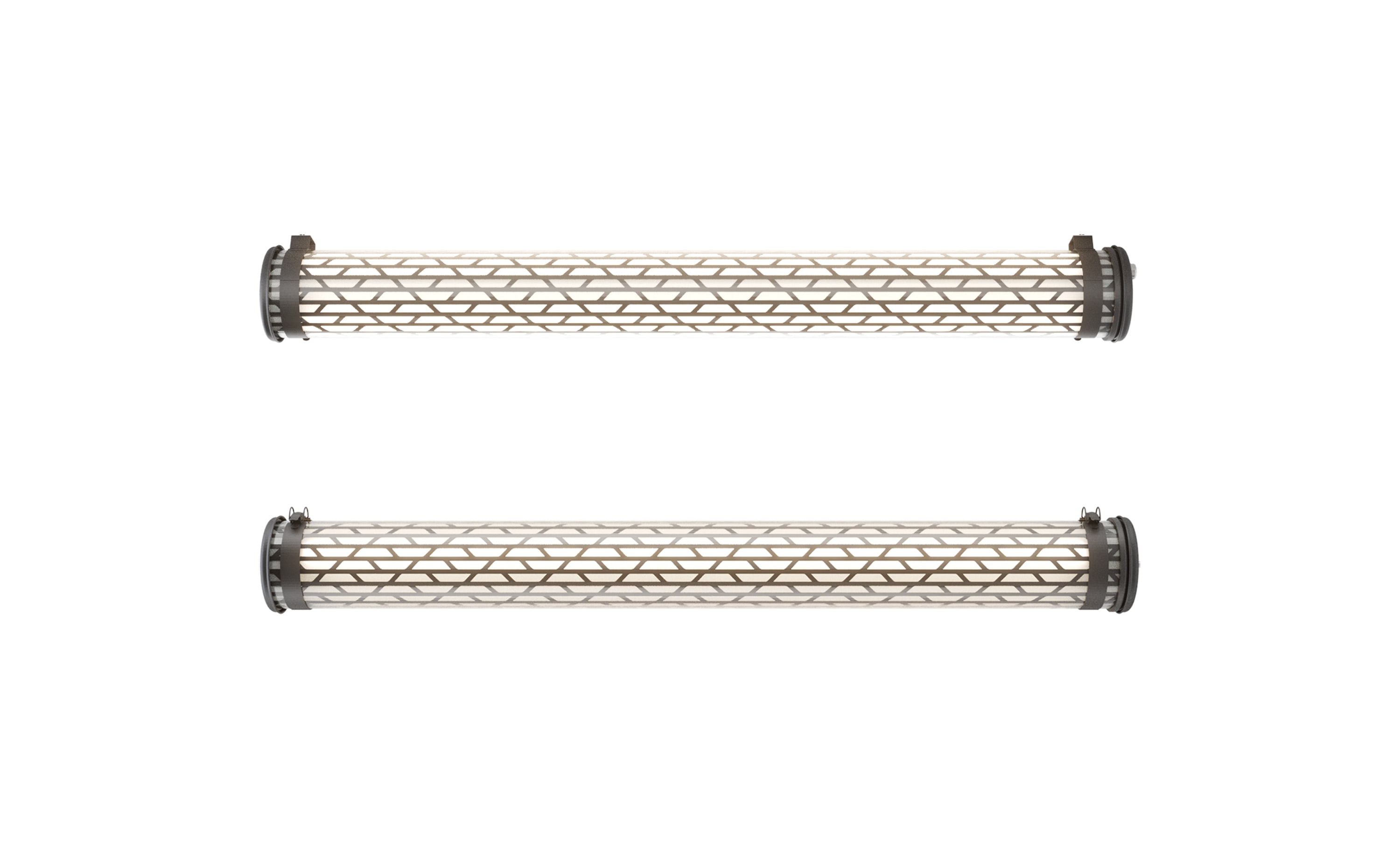 Luminaire tubulaire diamètre 100 à grille multiperforée et ampoule LED, hautement décoratif, idéal en applique murale. Lignes épurées, finitions haut de gamme et qualité industrielle des matériaux, pour offrir une signature unique, durable et résolument contemporaine à vos espaces intérieurs ou extérieurs.