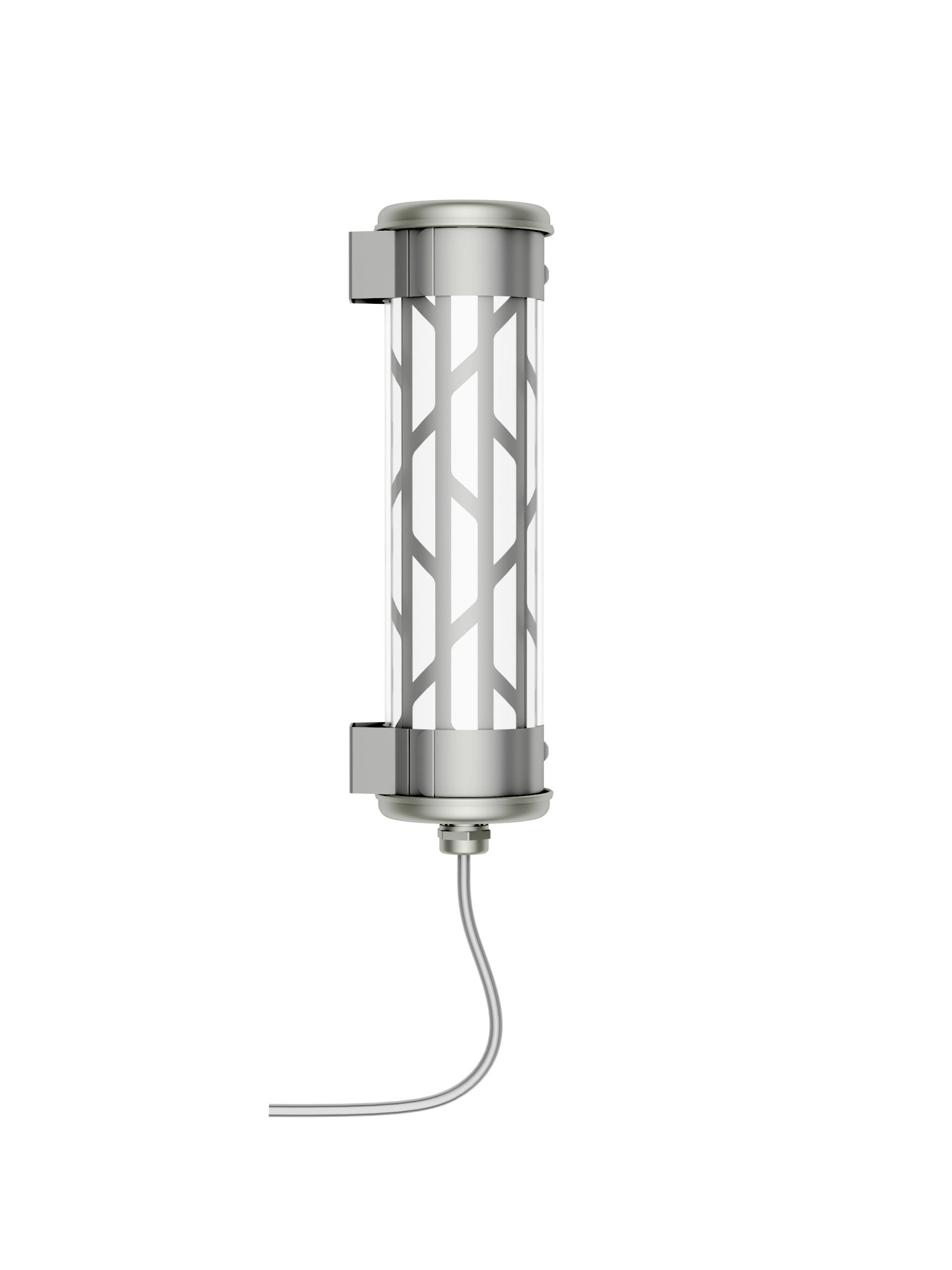 Applique murale tubulaire diametre 70 à grille multiperforée et ampoules LED, hautement décorative et durablement étanche. Lignes épurées, finitions haut de gamme et qualité industrielle des matériaux, pour offrir une signature unique, durable et résolument contemporaine à vos espaces intérieurs ou extérieurs.Avec son corps en verre subtilement habillé de la grille Belleville dessinée par Normal Studio, cette petite applique de la collection Paname, compacte et simple de mise en oeuvre, couvre une grande diversité d'usage : en tête de lit, dans un couloir, sur une terrasse, le long d'un bâtiment... Seule ou en répétition, sa finition tout inox et son design industriel affirmé ne laisseront personne indifférent.Ce luminaire est livré prêt pour l’installation et est équipé de son câble, de sa source et d’une sortie murale. Tous nos luminaires sont fabriqués, assemblés et emballés dans notre usine à Châtillon-sur-Saône dans les Vosges. Design : Normal Studio.