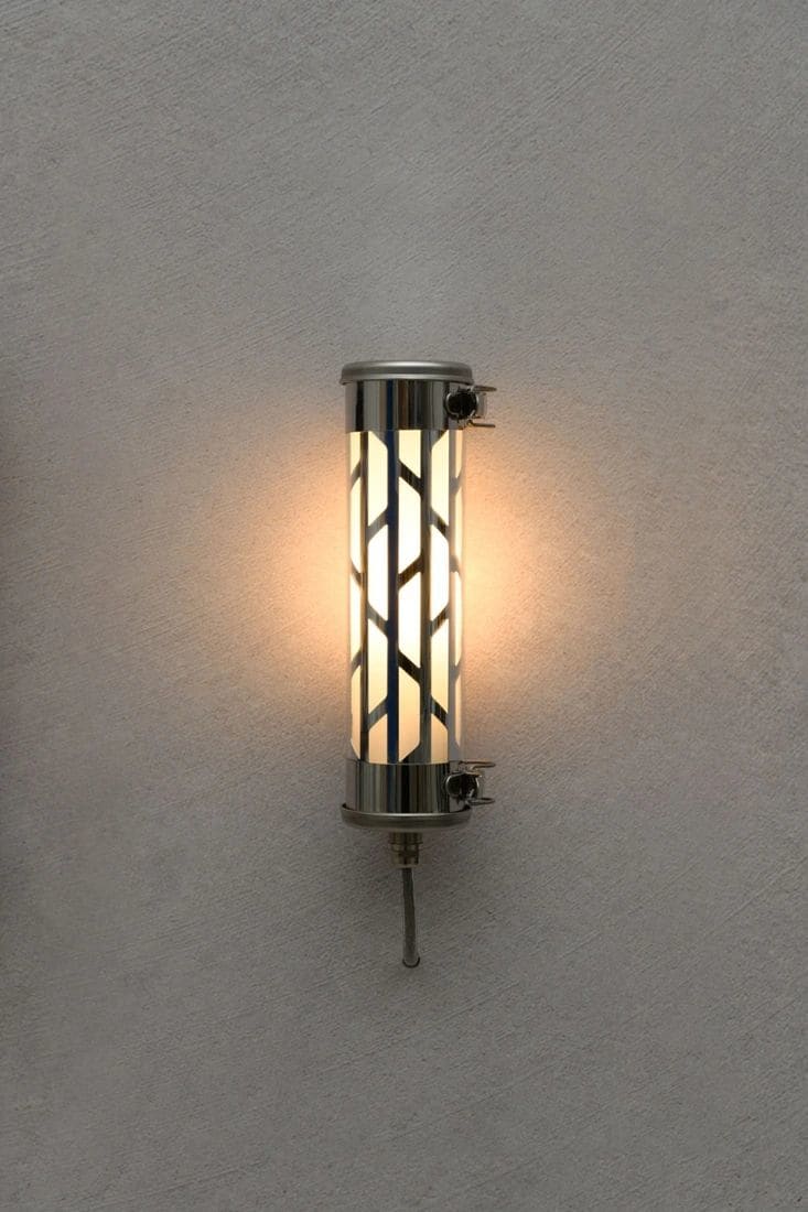 Applique murale tubulaire diametre 70 à grille multiperforée et ampoules LED, hautement décorative et durablement étanche. Lignes épurées, finitions haut de gamme et qualité industrielle des matériaux, pour offrir une signature unique, durable et résolument contemporaine à vos espaces intérieurs ou extérieurs.Avec son corps en verre subtilement habillé de la grille Belleville dessinée par Normal Studio, cette petite applique de la collection Paname, compacte et simple de mise en oeuvre, couvre une grande diversité d'usage : en tête de lit, dans un couloir, sur une terrasse, le long d'un bâtiment... Seule ou en répétition, sa finition tout inox et son design industriel affirmé ne laisseront personne indifférent.Ce luminaire est livré prêt pour l’installation et est équipé de son câble, de sa source et d’une sortie murale. Tous nos luminaires sont fabriqués, assemblés et emballés dans notre usine à Châtillon-sur-Saône dans les Vosges. Design : Normal Studio.
