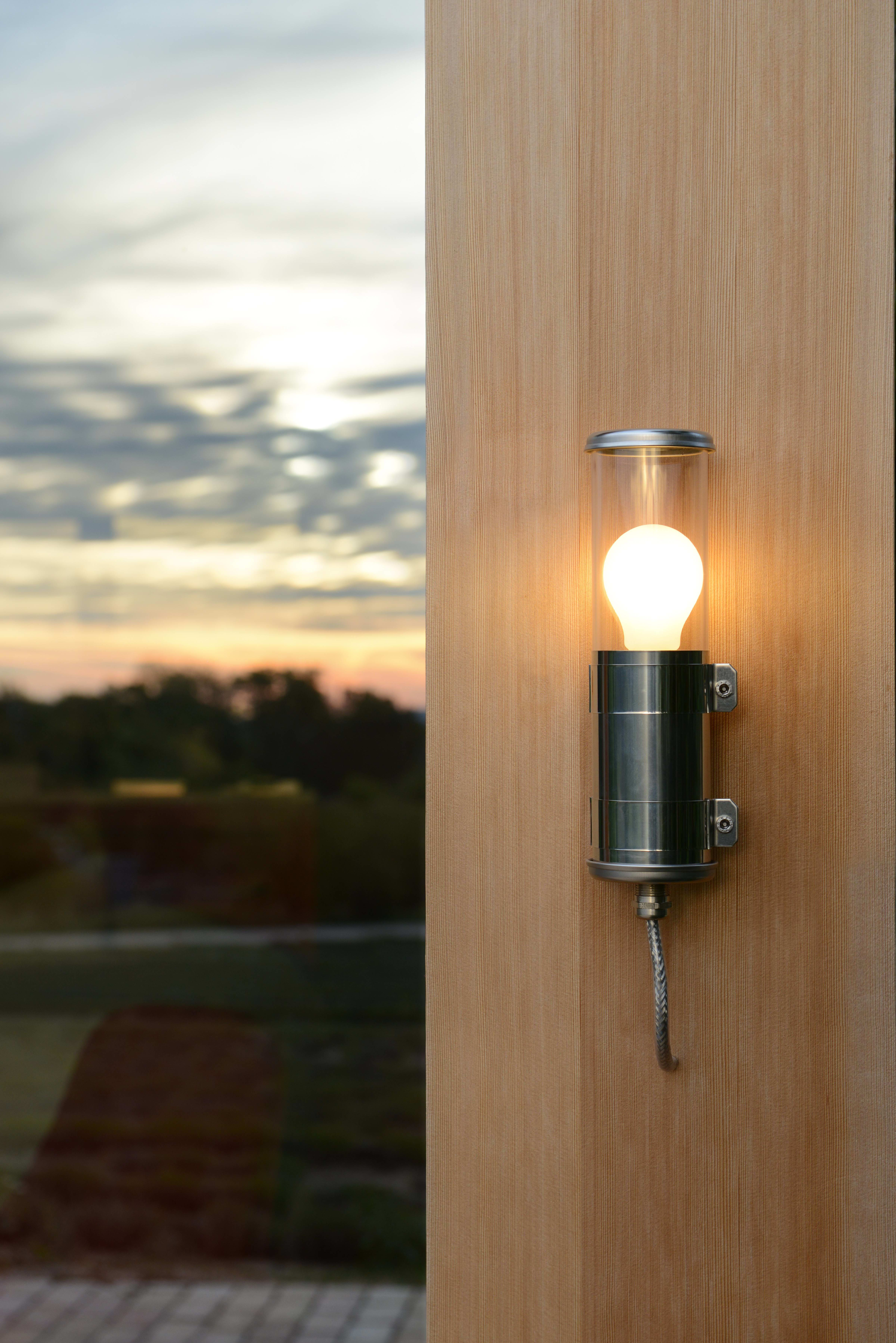 Applique discrète et subtile dont le corps transparent laisse entrevoir une ampoule LED satinée. Idéal en lampe de chevet pour créer une ambiance intime et chaleureuse ou sur une terrasse extérieure, ce petit modèle d’applique offre une multitude d’applications.