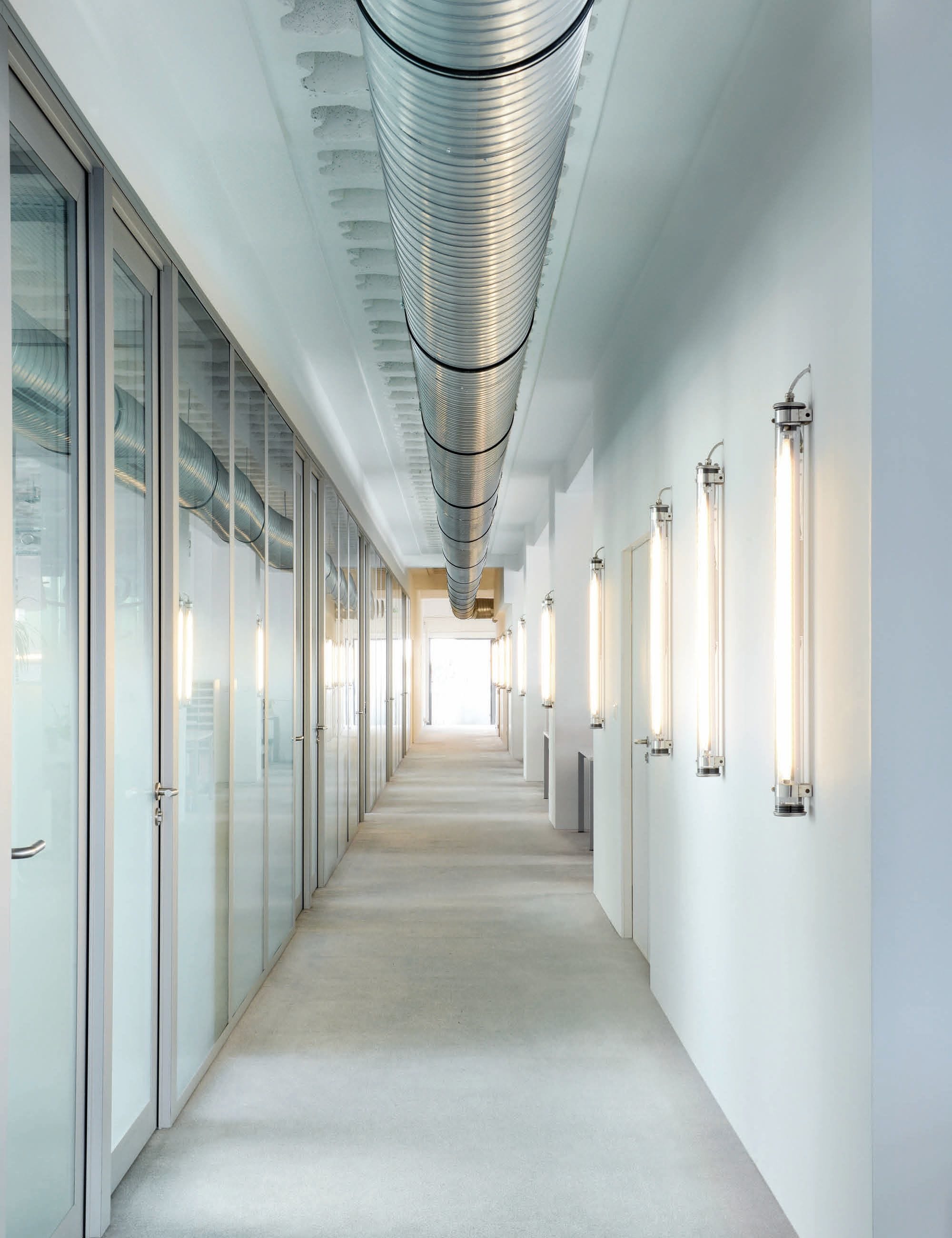 Applique LED tubulaire verticale diamètre 70 à lamelles inclinées, esthétique et fonctionnelle. Disponible en plusieurs longueurs et plusieurs flux, de 275 à 1400 lumens. Lignes épurées, finitions haut de gamme et qualité industrielle des matériaux et des composants, pour offrir une signature unique, intemporelle et durable à votre projet architectural.Toute en transparence et en reflets, cette applique murale à flux dirigé est l'alliance parfaite du savoir-faire, de la technique et du design Sammode. La grille métallique à lamelles inclinées, véritable signature de ce luminaire emblématique, voile la source lumineuse tout en réfléchissant le flux lumineux vers le sol. En répétition le long d'un mur, pour donner du rythme et structurer l'espace, elle convient parfaitement à l'éclairage de circulations. Idéale en complément des modèles Purcell ou Pissarro, elle sublime n'importe quel projet architectural en permettant d'investir murs et plafonds avec une parfaite continuité de style. Différents modes de gradation disponibles en option, ainsi que divers accessoires de finition.Herméticité totale et durable à la poussière et à l'humidité (IP68), en intérieur comme en extérieur. Enveloppe hautement résistante aux chocs (IK10), au vandalisme, aux intempéries et insensible aux UV. Maintenance et entretien facile, sur site et sans dépose, grâce à sa platine extractable et reconnectable côté opposé à l'entrée de câble (système breveté Close'n Connect).Très fortes économies d'énergie et de maintenance par rapport aux solutions fluorescentes. Garantie 5 ans en usage intensif, en intérieur comme en extérieur. Conçue et fabriquée en FRANCE, pensée pour durer, évolutive et entièrement réparable, cette applique tubulaire à lamelles inclinées est un must-have de l'éclairage fonctionnel et décoratif.