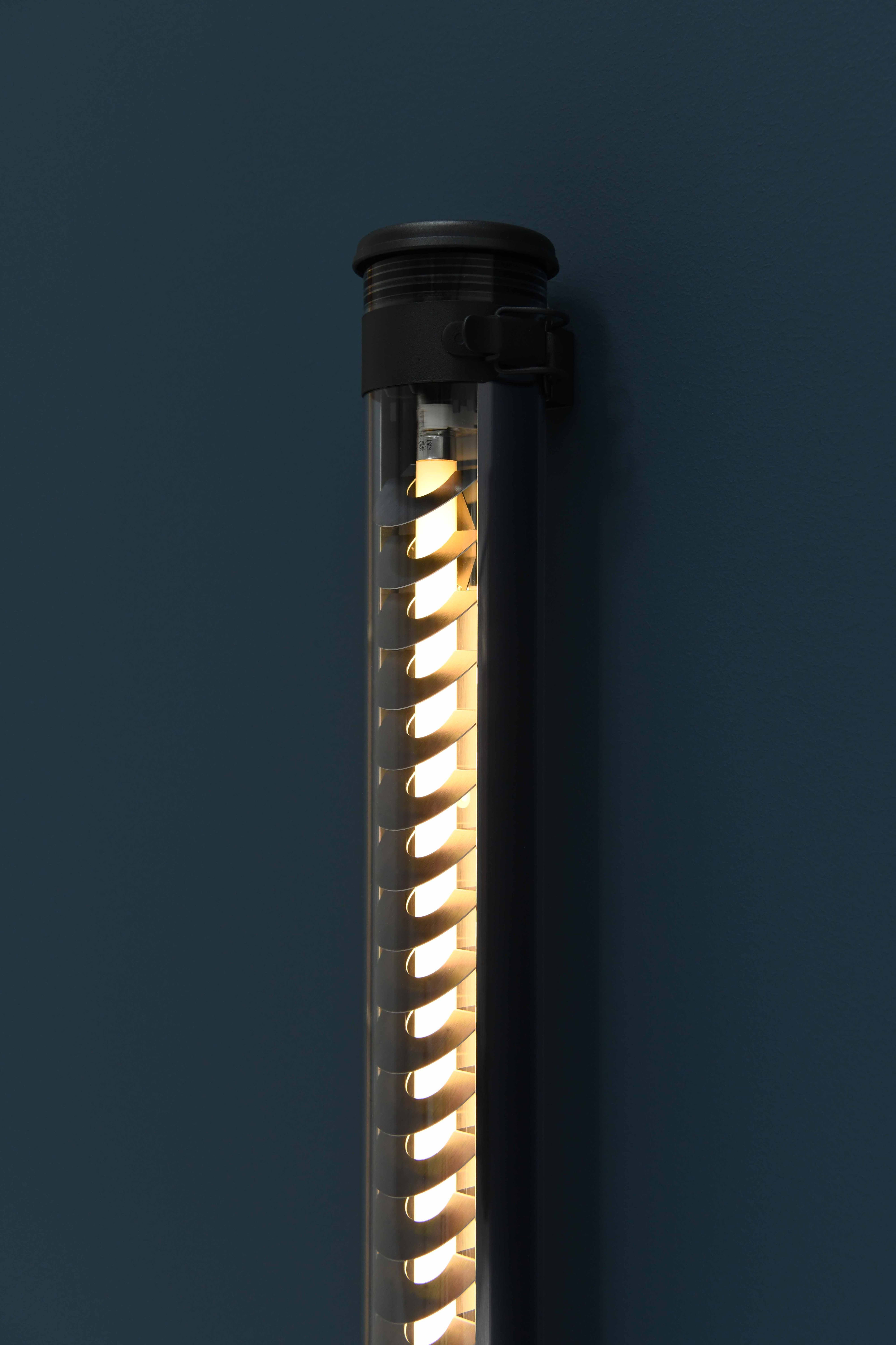 Applique LED tubulaire verticale diamètre 70 à lamelles inclinées, esthétique et fonctionnelle. Disponible en plusieurs longueurs et plusieurs flux, de 275 à 1400 lumens. Lignes épurées, finitions haut de gamme et qualité industrielle des matériaux et des composants, pour offrir une signature unique, intemporelle et durable à votre projet architectural.Toute en transparence et en reflets, cette applique murale à flux dirigé est l'alliance parfaite du savoir-faire, de la technique et du design Sammode. La grille métallique à lamelles inclinées, véritable signature de ce luminaire emblématique, voile la source lumineuse tout en réfléchissant le flux lumineux vers le sol. En répétition le long d'un mur, pour donner du rythme et structurer l'espace, elle convient parfaitement à l'éclairage de circulations. Idéale en complément des modèles Purcell ou Pissarro, elle sublime n'importe quel projet architectural en permettant d'investir murs et plafonds avec une parfaite continuité de style. Différents modes de gradation disponibles en option, ainsi que divers accessoires de finition.Herméticité totale et durable à la poussière et à l'humidité (IP68), en intérieur comme en extérieur. Enveloppe hautement résistante aux chocs (IK10), au vandalisme, aux intempéries et insensible aux UV. Maintenance et entretien facile, sur site et sans dépose, grâce à sa platine extractable et reconnectable côté opposé à l'entrée de câble (système breveté Close'n Connect).Très fortes économies d'énergie et de maintenance par rapport aux solutions fluorescentes. Garantie 5 ans en usage intensif, en intérieur comme en extérieur. Conçue et fabriquée en FRANCE, pensée pour durer, évolutive et entièrement réparable, cette applique tubulaire à lamelles inclinées est un must-have de l'éclairage fonctionnel et décoratif.