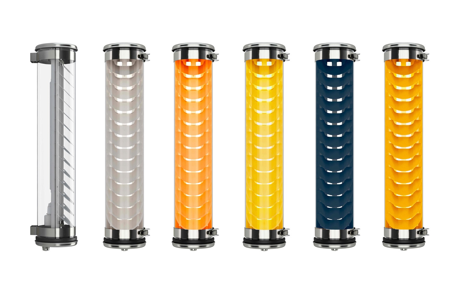 Applique LED tubulaire verticale diametre 133 à lamelles inclinées, esthétique et fonctionnelle, dédiée aux grands espaces. Disponible en plusieurs longueurs et plusieurs flux, de 2700 à 4500 lumens. Lignes épurées, finitions haut de gamme et qualité industrielle des matériaux et des composants, pour offrir une signature unique, intemporelle et durable à votre projet architectural.