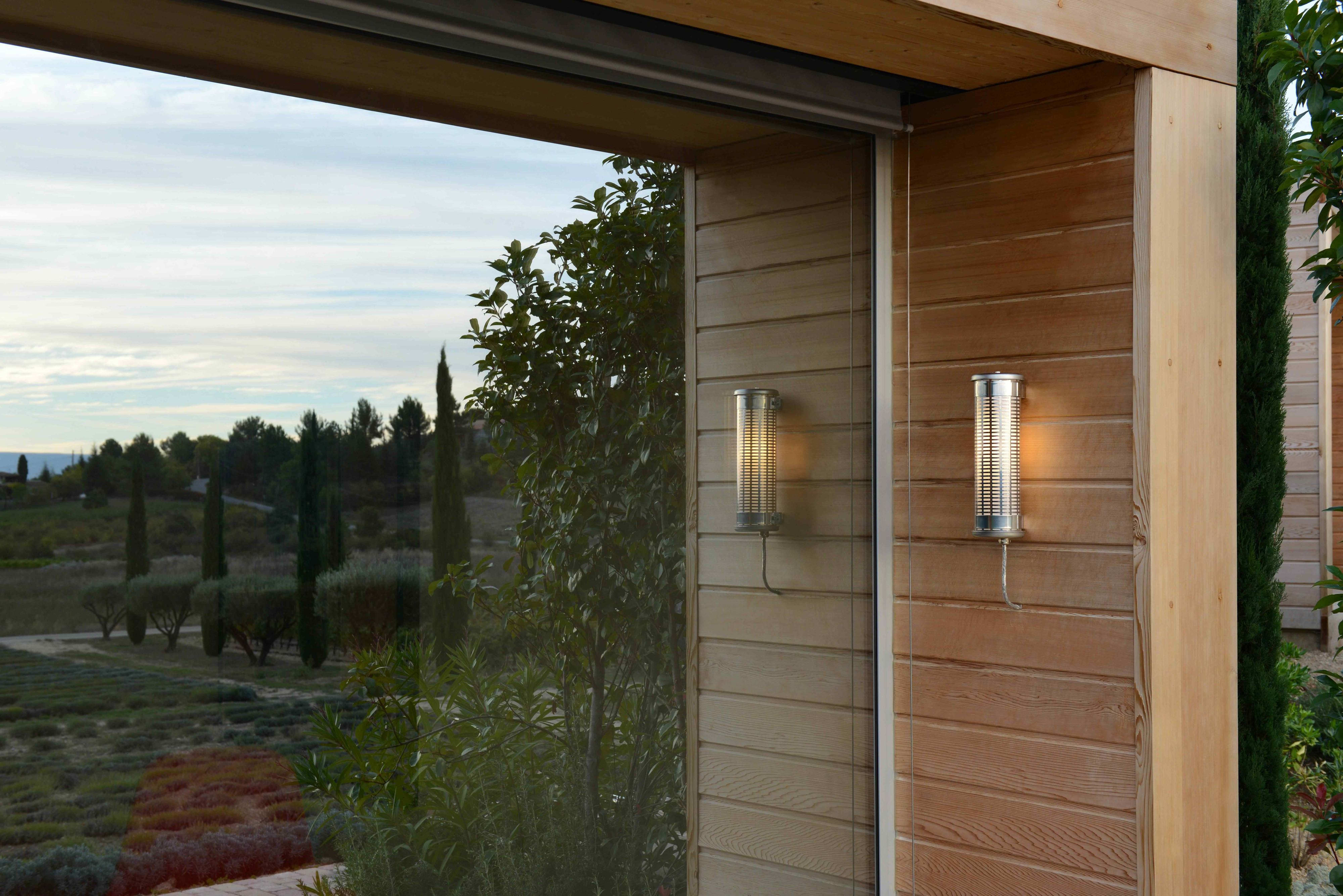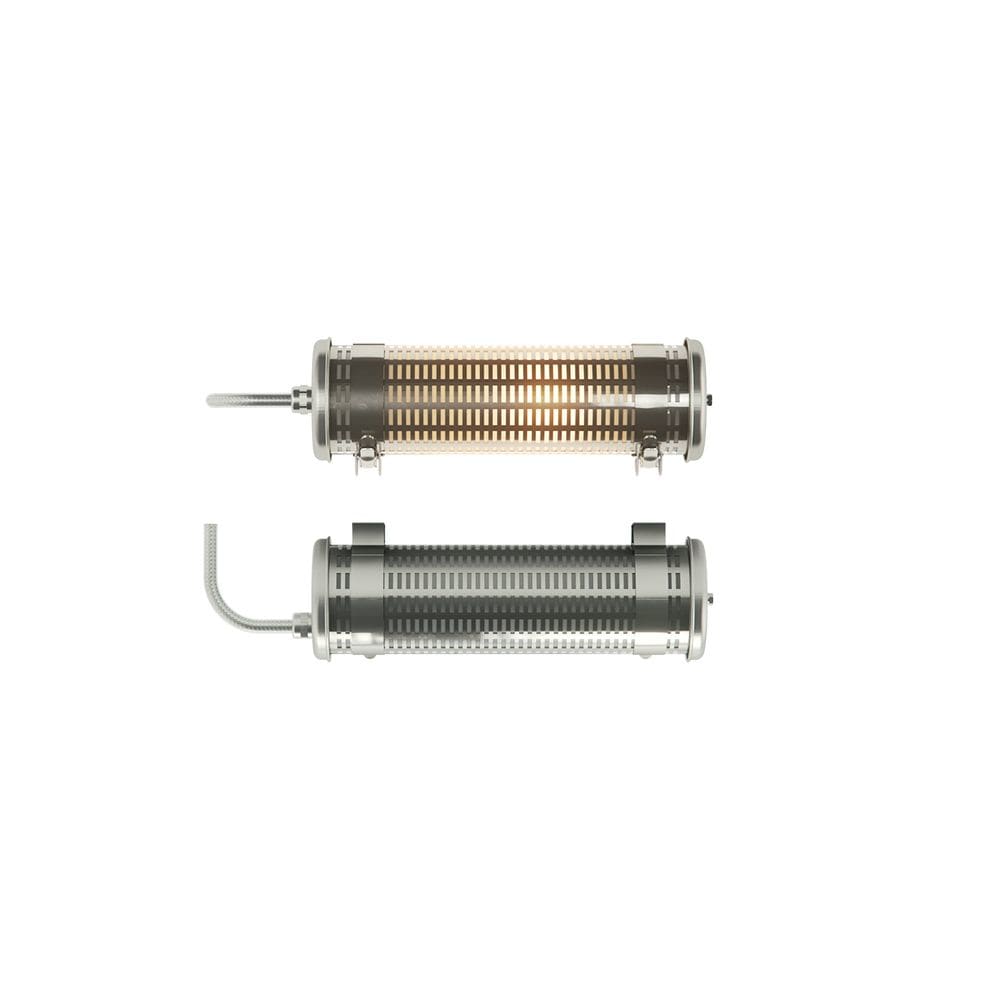 Applique tubulaire GUDE 100 360° (design : Dominique Perrault & Gaëlle Lauriot-Prévost) - Pour éclairage omnidirectionnel avec grille à perforation rectangulaire - Grille finition SILVER - Vasque : Coextrudé de polycarbonate/PMMA insensible aux UV pour un usage intérieur/extérieur - Flasques & Colliers : Inox 316L - Grille en inox insérée entre la vasque et un film interne en polycarbonate blanc opalisé - Toute partie métallique externe en inox 316L et visserie en inox A4 - Platine en inox solidaire du flasque d'entrée de câble - Joints : Joints moulés en EPDM - Avec 1 lampe filament LED E27 8W 2700K mate - Flux lumineux: 180 lm - Température de couleur: 2700 K - Gradation : Sans - Diamètre : 100 mm - Longueur hors tout: 355 mm - Entrée de câble par presse-étoupe en laiton nickelé pour câble Ø 5 à 14 mm - Fourni équipé de 0,50m de câble 3G1,5 avec tresse en cuivre étamé sous gaine transparente - Fixation par 2 colliers renforcés en inox à vis CHC (à entraxe variable) et permettant une orientation sur 360° - Fourni avec un boitier de sortie murale en inox 316L, usage intérieur (IP 40), à raccorder à la terre - Installation en position verticale, presse-étoupe vers le bas - Maintenance par desserrage de la vis de fermeture et extraction de la vasque - Garantie 5 ans - Température d’utilisation : -20 °C à +35 °C - Indice de protection : IP66/IP68/IP69K - Résistance aux chocs : IK10 - Classe électrique : Classe I - Alimentation : 220-240V 50/60Hz - Consommation: 8 W - Résistance au fil incandescent : 650°C - Poids: 1,5 kg - Conçu et fabriqué en France