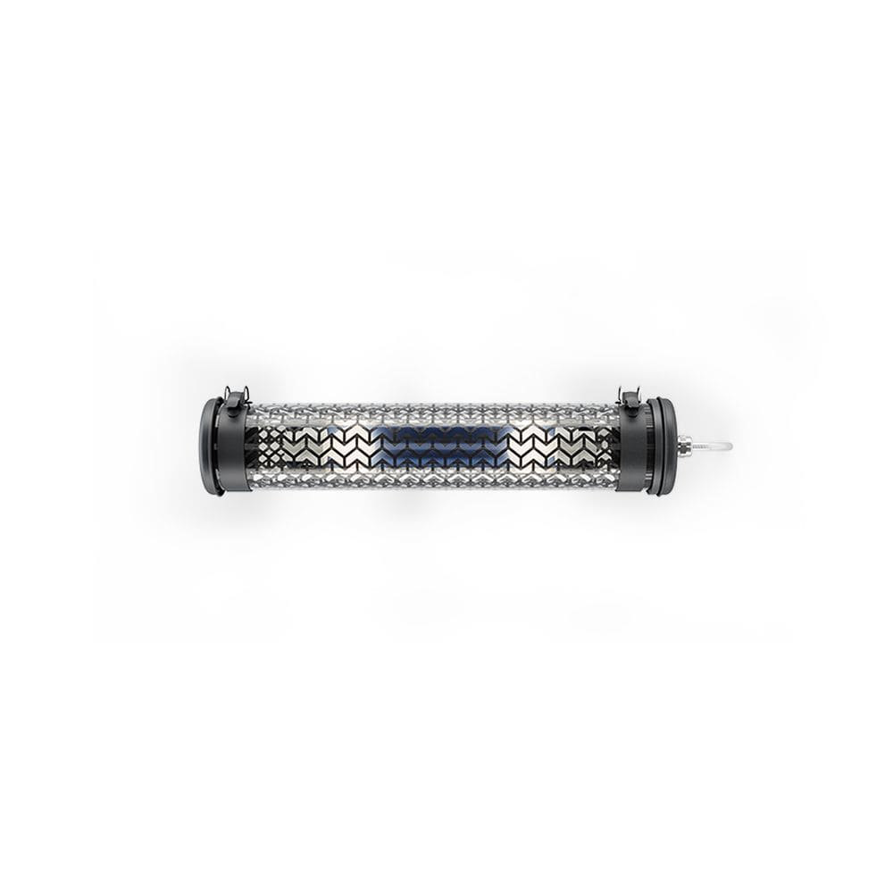 Applique tubulaire Monceau 100 2L (design : Normal Studio) - Grille à perforation chevron - Couleur : COAL (RAL 7021) - Grille finition COAL - Vasque : Coextrudé de polycarbonate/PMMA insensible aux UV pour un usage intérieur/extérieur - Flasques & Colliers : Inox 316L laqués COAL (RAL 7021) - Réflecteur en aluminium anodisé : PETROL - Grille en aluminium laqué COAL (RAL 7021) insérée à l'intérieur de la vasque - Toute partie métallique externe en inox 316L et visserie en inox A4 - Platine inox avec 2 douilles porcelaine E14 - Joints : Joints moulés en EPDM - Avec 2 lampes filament LED E14 4W 2700K claires - Flux lumineux: 150 lm - Température de couleur: 2700 K - Gradation : Sans - Diamètre : 100 mm - Longueur hors tout: 519 mm - Fourni équipé de 1m de câble 3G1,5 avec tresse en cuivre étamé sous gaine transparente - Fixation par 2 colliers renforcés en inox à grenouillère (à entraxe variable) et permettant une orientation sur 360° - Fourni avec un boitier de sortie murale en inox 316L, usage intérieur (IP 40), à raccorder à la terre - Installation en position verticale, presse-étoupe vers le bas - Garantie 5 ans - Température d’utilisation : -20 °C à +35 °C - Indice de protection : IP66/IP68/IP69K - Résistance aux chocs : IK10 - Classe électrique : Classe I - Alimentation : 220-240V 50/60Hz - Consommation: 8 W - Résistance au fil incandescent : 650°C - Poids: 1,8 kg - Conçu et fabriqué en France