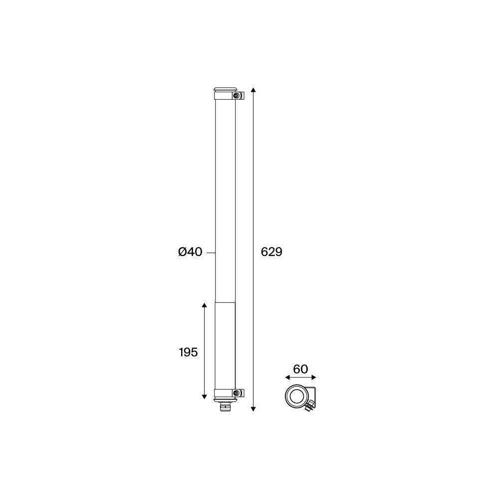 Luminaire tubulaire pour éclairage diffus Mondrian, très basse tension pour usage salle de bain - Eclairage confortable sur 260° - Couleur : COAL (RAL 7021) - Cache appareillage externe en inox 304L laqué COAL (RAL 7021) - Vasque : Coextrudé de polycarbonate/PMMA insensible aux UV pour un usage intérieur/extérieur - Platine d'appareillage en tôle d'acier laquée laquée blanche - Joints : Joints moulés en EPDM - Rubans LED à faible consommation, IRC>90 - Flux lumineux: 350 lm - Température de couleur: 2700 K - Gestion des luminances par utilisation d'une vasque diffusante - Light mixing chamber - Alimentation déportée non incluse, à placer à 1m20 du point d'eau - Diamètre : 40 mm - Longueur Partie éclairante: 426 mm - Longueur hors tout: 629 mm - Entrée de câble par presse-étoupe en laiton nickelé pour câble Ø 6 à 10 mm - Raccordement sur bornier fixe 2 x 2,5 mm² - Fixation par colliers en inox à vis CHC à entraxe variable et permettant une orientation sur 360° - Fixation en applique ou en plafonnier par 2 colliers en inox 304L - Ouverture et fermeture par serrage de l’écrou sous presse-étoupe - Installation verticale : presse-étoupe vers le bas - Maintenance par démontage du flasque de fermeture et extraction de la platine - Garantie 3 ans - 50 000 h L80/B10 à température ambiante max. - Température d'utilisation : -20°C à +30°C - Indice de protection : IP66/IP68/IP69K - Résistance aux chocs : IK10 - Classe III - Tension d'alimentation : 24V +/-10% - Consommation: 4,2 W - Risque photobiologique : Groupe 0 - Pic de courant d'appel: 27 A - Durée du courant d'appel à 50% du pic: 250 µs - Résistance au feu : 650 °C - Poids: 0,7 kg - Conçu et fabriqué en France