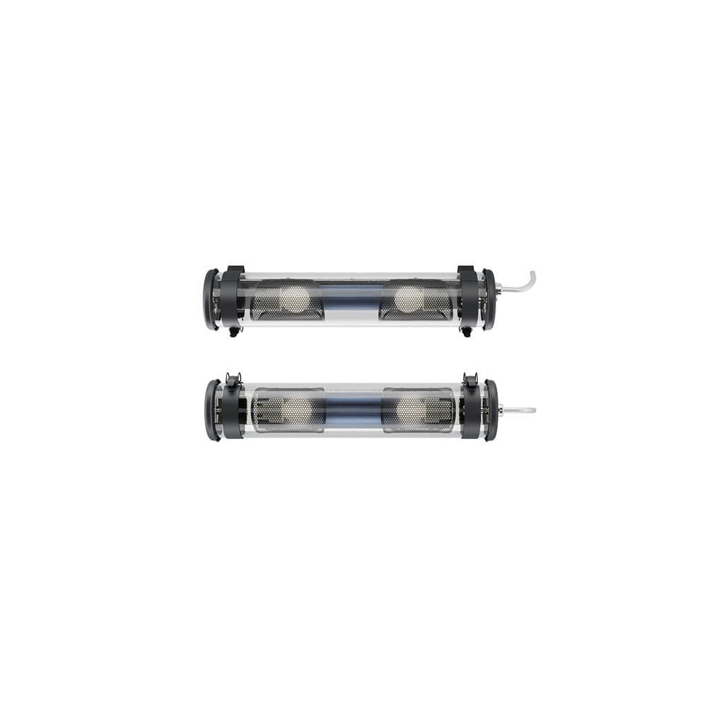 Luminaire tubulaire d’ambiance Musset - Couleur : COAL (RAL 7021) - Flasques & Colliers : Inox 316L laqués COAL (RAL 7021) - Grilles brise-flux en inox, laquées COAL (RAL 7021) - Réflecteur en aluminium anodisé : PETROL - Vasque Ø100 mm en verre borosilicaté - Toute partie métallique externe en inox 316L et visserie en inox A4 - Platine inox avec 2 douilles porcelaine E14 - Joints moulés en EPDM - Câblage interne haute température à isolation silicone tressée fibre de verre - Avec 2 lampes filament LED E14 4W 2700K claires - Flux lumineux: 250 lm - Température de couleur: 2700 K - Longueur hors tout: 519 mm - Fourni équipé de 1m de câble 3G1,5 avec tresse en cuivre étamé sous gaine transparente - Fixation par 2 colliers renforcés en inox à grenouillère (à entraxe variable) et permettant une orientation sur 360° - Fourni avec un boitier de sortie murale en inox 316L, usage intérieur (IP 40), à raccorder à la terre - Installation en position verticale, presse-étoupe vers le bas - Maintenance par desserrage des 2 vis de fermeture, démontage du flasque mobile et extraction de la platine - Garantie 5 ans - Température d'utilisation : -20°C à +30°C - Indice de protection : IP66/IP68/IP69K - Résistance aux chocs : IK07 - Classe électrique : Classe I - Alimentation : 220-240V 50/60Hz - Consommation: 8 W - Résistance au fil incandescent : Ininflammable - Poids: 2,4 kg