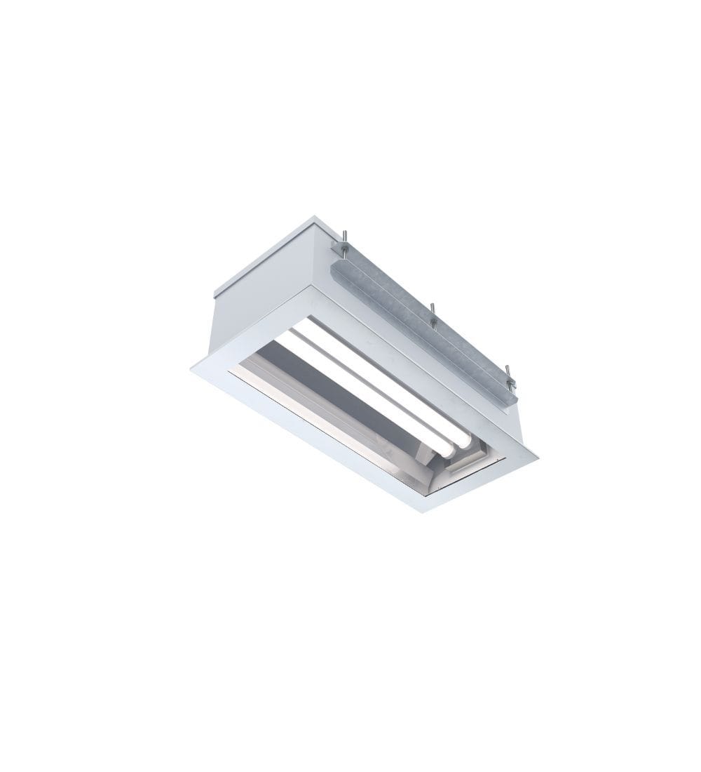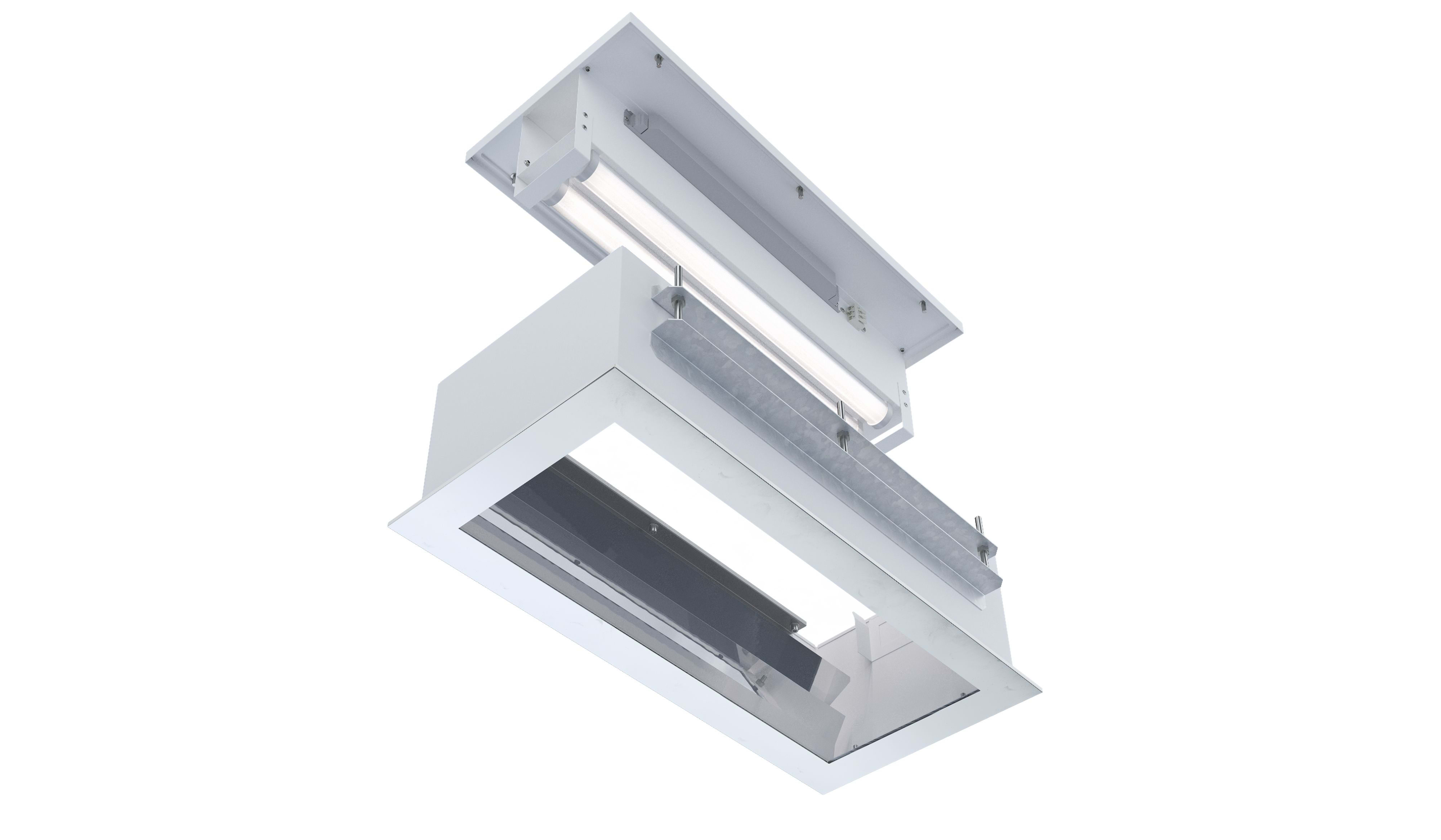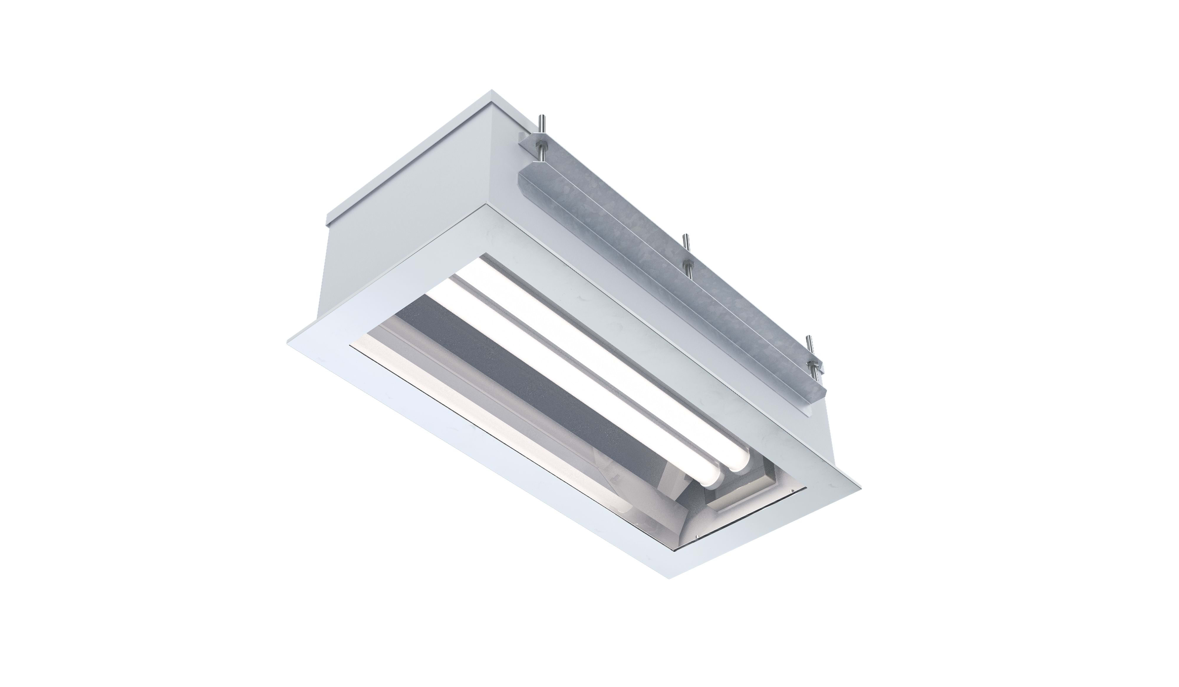 Luminaire encastré CALMETTE à maintenance par le dessus - Réflecteur en aluminium grand brillant - Caisse et capot de fermeture en tôle d'acier laquée blanche - Vitre fixe en méthacrylate compatible avec les agents lessiviels, cerclée d'un cadre en inox - Dissipateur thermique en aluminium - Modules LED démontables à haute efficacité (IRC>80, 70 000h L80/B10@Tmax) - Flux lumineux: 7200 lm - Température de couleur : 5000K - Light mixing chamber - Driver LED robuste spécial industrie, réglable DALI - Compatible sans restriction avec régimes de neutre TN, TT et IT - LxlxH (mm) : 1277x298x232 - Entrée de câble par 1 prise débrochable 5x1,5mm² à verrouillage par bague vissée (capacité : Ø8 à 10 mm) - Raccordement par prise débrochable 5x1,5mm² - Installation par le dessous du plafond, pose d'un joint silicone et pincement dans l'épaisseur du plafond par cornières inox et tige filetées - Maintenance par ouverture du capot supérieur (maintenance par le dessus) - Garantie : 8 ans, en usage 24/7 à temp max - Température d'utilisation : -20°C +40°C - Indice de protection : IP68 côté salle propre, IP65 côté maintenance - Résistance aux chocs : IK09 - Classe I - Tension d'alimentation : 220-240V 0/50/60Hz - Consommation: 61 W - Résistance à la surtension: 320 V AC, 48 h (Supporte les pics de tension < 4 kV) - Risque photobiologique : Groupe 0 - Pic de courant d'appel: 40 A - Durée du courant d'appel à 50% du pic: 200 µs - Résistance au fil incandescent : 650°C - Nombre de drivers sur MCB type B 16A: 12 pcs - Résistance aux vibrations : Conforme aux conditions sévères de l’EN 60598-1 (tests selon CEI 60068-2-6) - Poids: 18 kg - Conçu et fabriqué en France