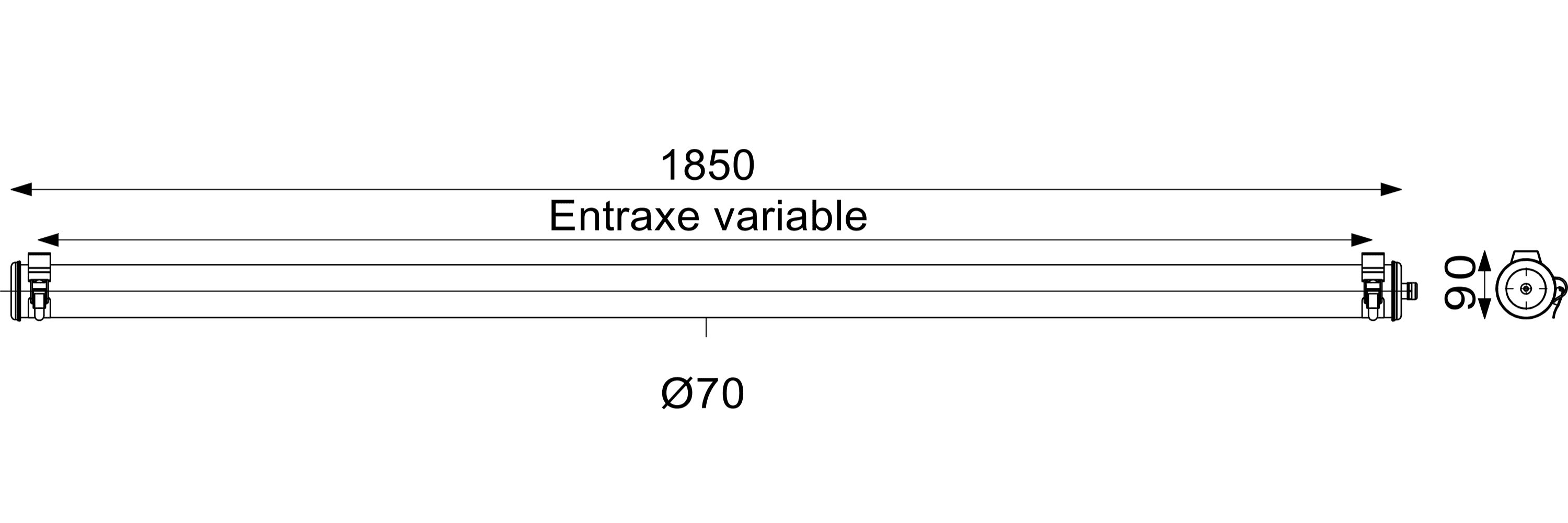 Luminaire tubulaire compact pour espaces réduits FOUCAULT 70 - Vasque : Coextrudé de polycarbonate/PMMA insensible aux UV pour un usage intérieur/extérieur - Flasques inox en forme de 1/2 tore creux - Enveloppe monobloc à étanchéité renforcée par expansion radiale du joint - Platine d'appareillage en tôle d'acier laquée blanche avec système de connexion électrique automatique à la fermeture et indexation en rotation - Dissipateur thermique en aluminium - Joints moulés en EPDM - Modules LED démontables à haute efficacité (IRC>80, 70 000h L80/B10@Tmax) - Flux lumineux: 4800 lm - Température de couleur: 4000 K - Light mixing chamber - Driver LED non réglable - Diamètre : 70 mm - Longueur hors tout: 1840 mm - Entrée de câble par 1 presse-étoupe en laiton nickelé (Ø8 à 12 mm) - Raccordement par Bornier débrochable 3x2,5mm² - Fixation par colliers en inox à grenouillère à entraxe variable et permettant une orientation sur 360° - Maintenance sans intervention sur le câble par extraction de la platine par le côté opposé à l'alimentation - Garantie : 8 ans, en usage 24/7 à temp max - Température d’utilisation : -20 °C à +40 °C - Étanchéité : IP66, IP68 et IP69K - Résistance aux chocs : IK10 - Classe I - Tension d'alimentation : 220-240 V 50/60 Hz - Consommation: 36 W - Efficacité lumineuse: 133 lm/W - Facteur de puissance > 0,95 - THD: 13,1 % - Risque photobiologique : Groupe 0 - Pic de courant d'appel: 23,4 A - Durée du courant d'appel à 50% du pic: 121 µs - Résistance au feu : 650 °C - Nombre de drivers sur MCB type B 16A: 33 pcs - Résistance aux vibrations : Conforme aux conditions sévères de l’EN 60598-1 (tests selon CEI 60068-2-6) - Conception mécanique testée selon norme ferroviaire IEC 61373 (essais de vibrations du matériel roulant) - Poids: 3,2 kg - Conçu et fabriqué en France