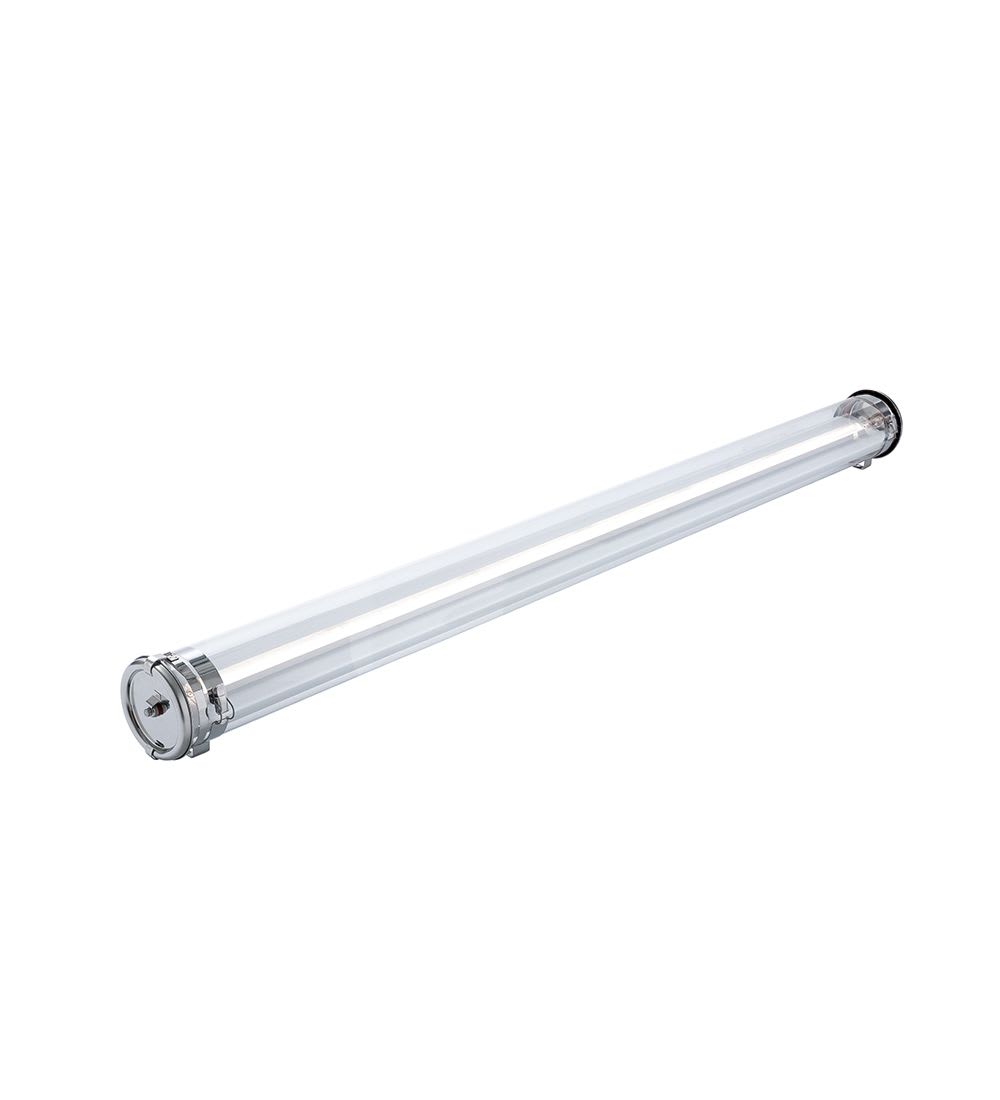 Luminaire tubulaire LED dédié à l'éclairage général de grands volumes industriels jusqu'à 8 m de hauteur, avec ou sans rayonnages. Répond aux exigences d'hygiène et participe à la conformité IFS ou BRC et HACCP d'un site agro-alimentaire. Etanchéïté ultime et durable IP68-IP69K. Matériaux à haute résistance chimique et mécanique IK10. Electronique très haute fiabilité et très longue durée de vie. Parties métalliques externes en inox et vasque composite ultra-résistante aux agents lessiviels. Fiabilité exceptionnelle avec driver longue durée conçu pour supporter les pires pertubations de réseaux électriques instables (pics de tension). Optique linéaire intensive à haut rendement lumineux.Connecteur débrochable haute résistance pour une installation rapide. Très fortes économies d’énergie et de maintenance avec un flux utile équivalent ou supérieur aux solutions fluorescentes. GARANTIE 8 ANS ULTIME, en usage intensif dans les pires conditions. Conçu et fabriqué en FRANCE, pensé pour durer, évolutif et entièrement réparable, c'est le tubulaire de référence pour l'éclairage de zones de production de fortes hauteurs, de zones de stockage ou allées entre racks.
