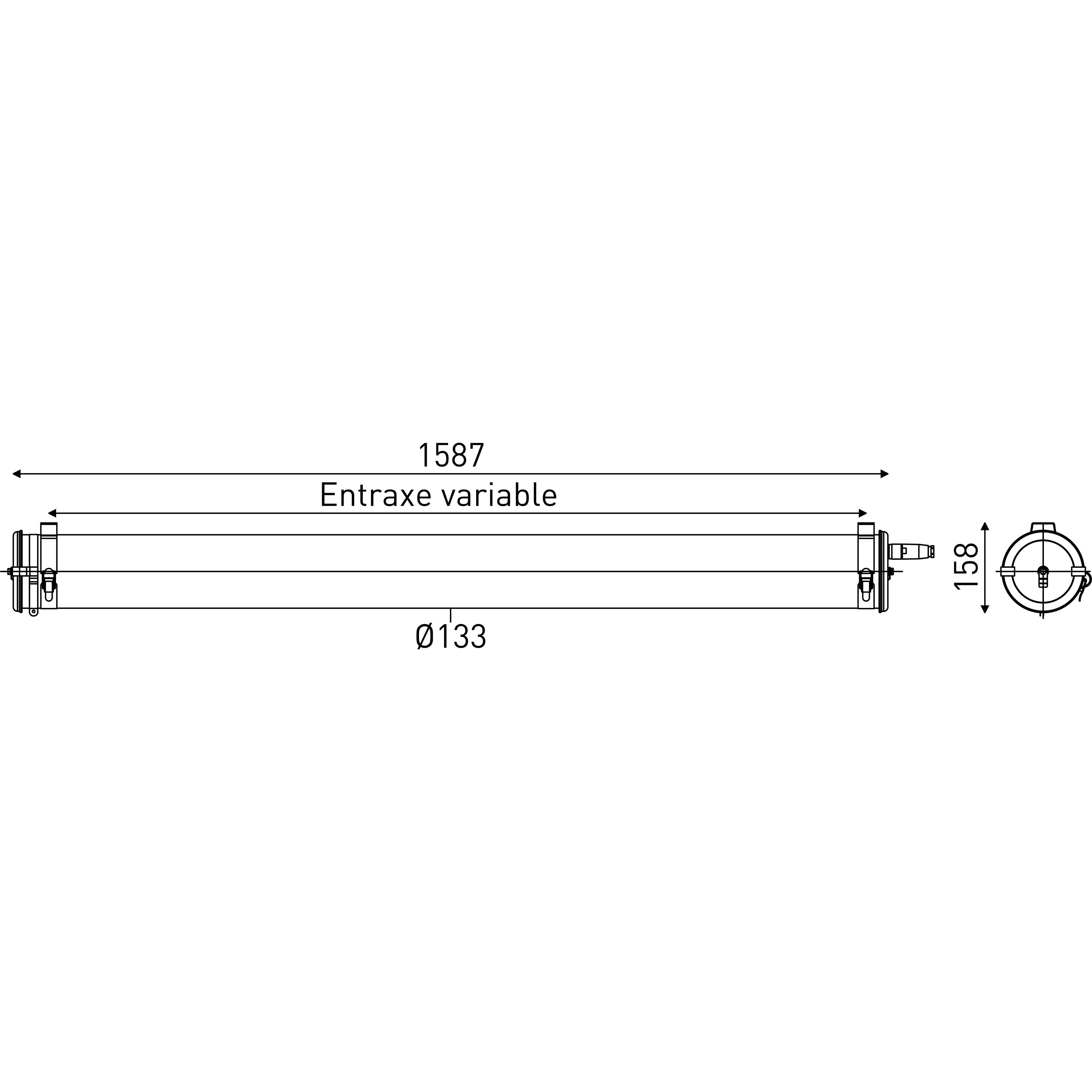 Luminaire tubulaire pour éclairage à haute température JOULE 133 - Vasque satinée spéciale LED - Flasques inox en forme de 1/2 tore creux - Vasque Ø133 mm en polycarbonate protégé des UV, des solvants, des hydrocarbures et des agents lessiviels par une coextrusion de méthacrylate - Enveloppe monobloc à haute résistance mécanique et à étanchéité renforcée - Platine d'appareillage en tôle d'acier laquée blanche - Dissipateur thermique en aluminium - Joints moulés haute température en silicone - Modules LED spécifiques haute température démontables à haute efficacité (IRC>80, 50 000h L80/B50@Tmax) - Flux lumineux: 4625 lm - Température de couleur : 3000K - Light mixing chamber - Driver LED non réglable spécial haute température - Compatible sans restriction avec régimes de neutre TN, TT et IT - Longueur hors tout: 1587 mm - Entrée de câble par 1 presse-étoupe en polyamide (Ø7 à 12 mm) - Raccordement par Bornier débrochable 3x2,5mm² - Fixation par colliers renforcés en inox à grenouillère à entraxe variable et permettant une orientation sur 360° - Maintenance par desserrage des 2 vis de fermeture, démontage du flasque mobile et extraction de la platine - Garantie : 5 ans, en usage 24/7 à temp max - Température d'utilisation : -20°C à +70°C - Indice de protection : IP66/IP68/IP69K - Résistance aux chocs : IK10 - Classe I - Tension d'alimentation : 220-240V 0/50/60Hz - Consommation: 43 W - Efficacité lumineuse: 125 lm/W - Résistance à la surtension: 320 V AC, 48 h (Supporte les pics de tension < 4 kV) - Facteur de puissance > 0,85 - THD: 9,2 % - Risque photobiologique : Groupe 0 - Pic de courant d'appel: 5 A - Durée du courant d'appel à 50% du pic: 1000 µs - Résistance au fil incandescent : 650°C - Nombre de drivers sur MCB type B 16A: 16 pcs - Résistance aux vibrations : Conforme aux conditions sévères de l’EN 60598-1 (tests selon CEI 60068-2-6) - Poids: 6,1 kg - Conçu et fabriqué en France