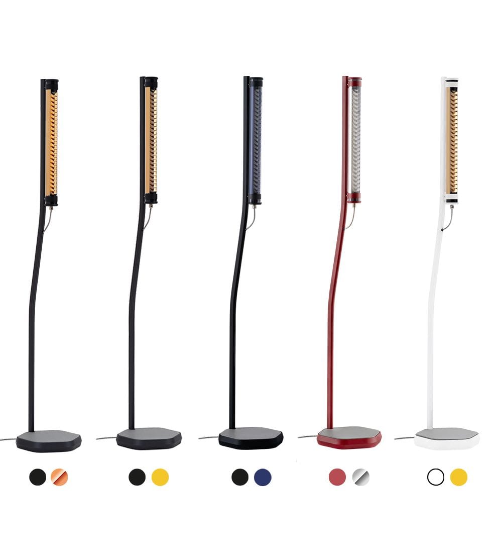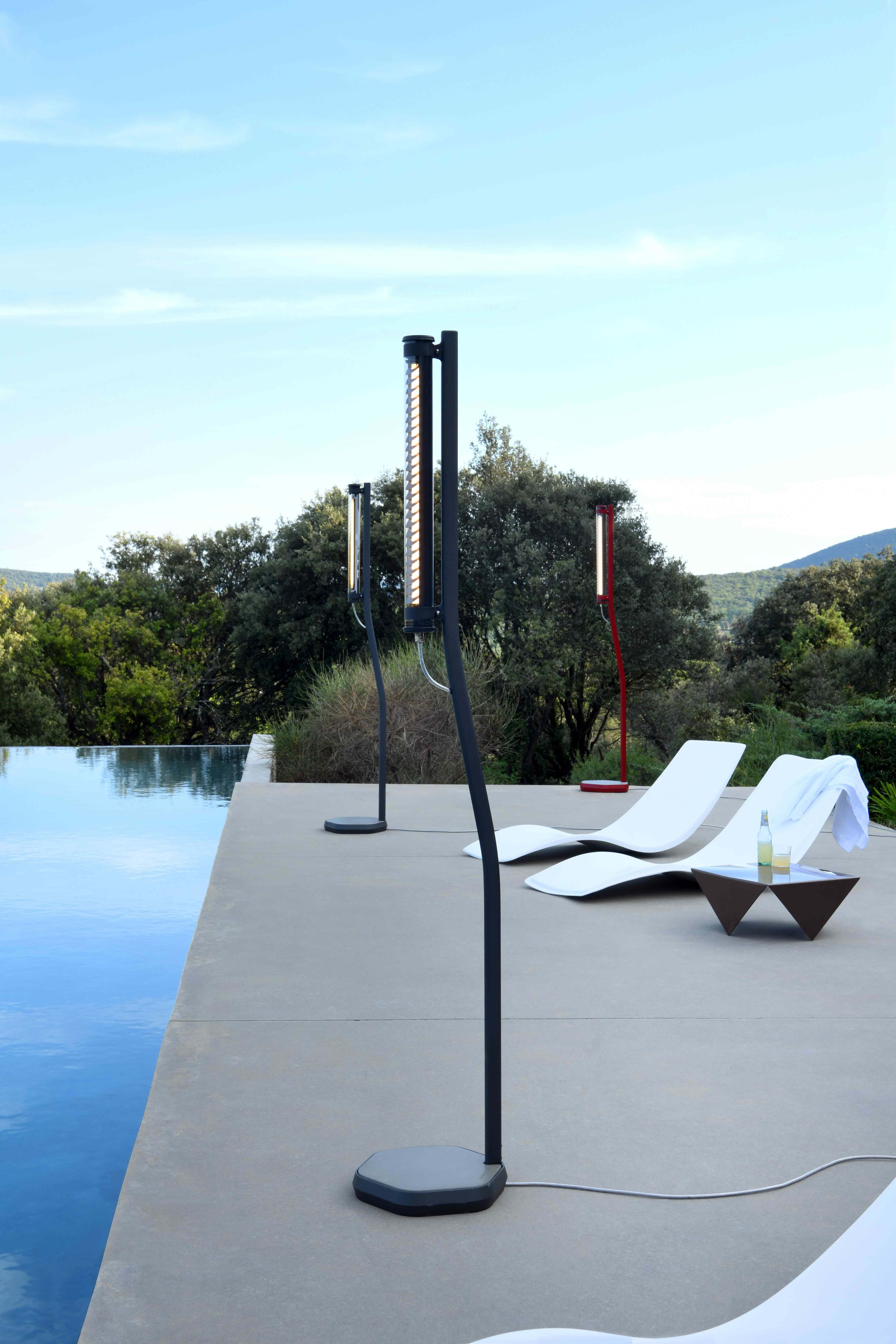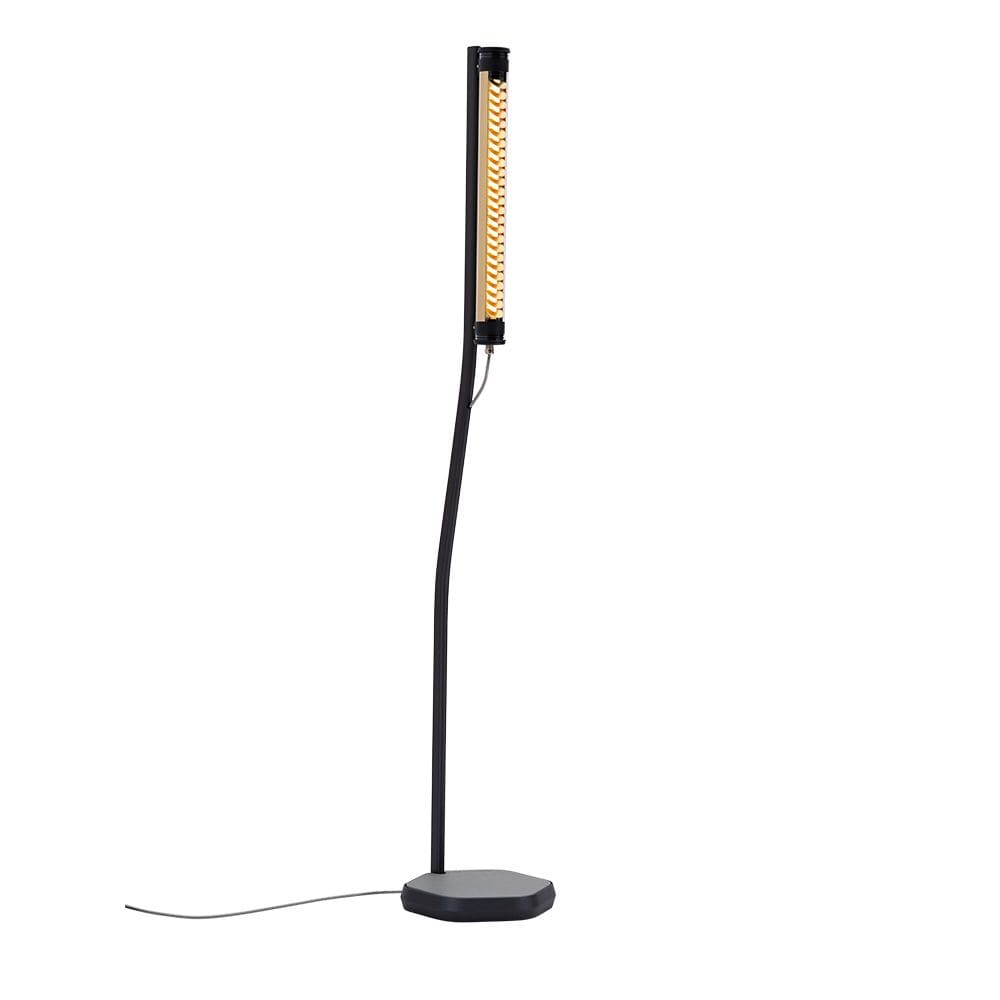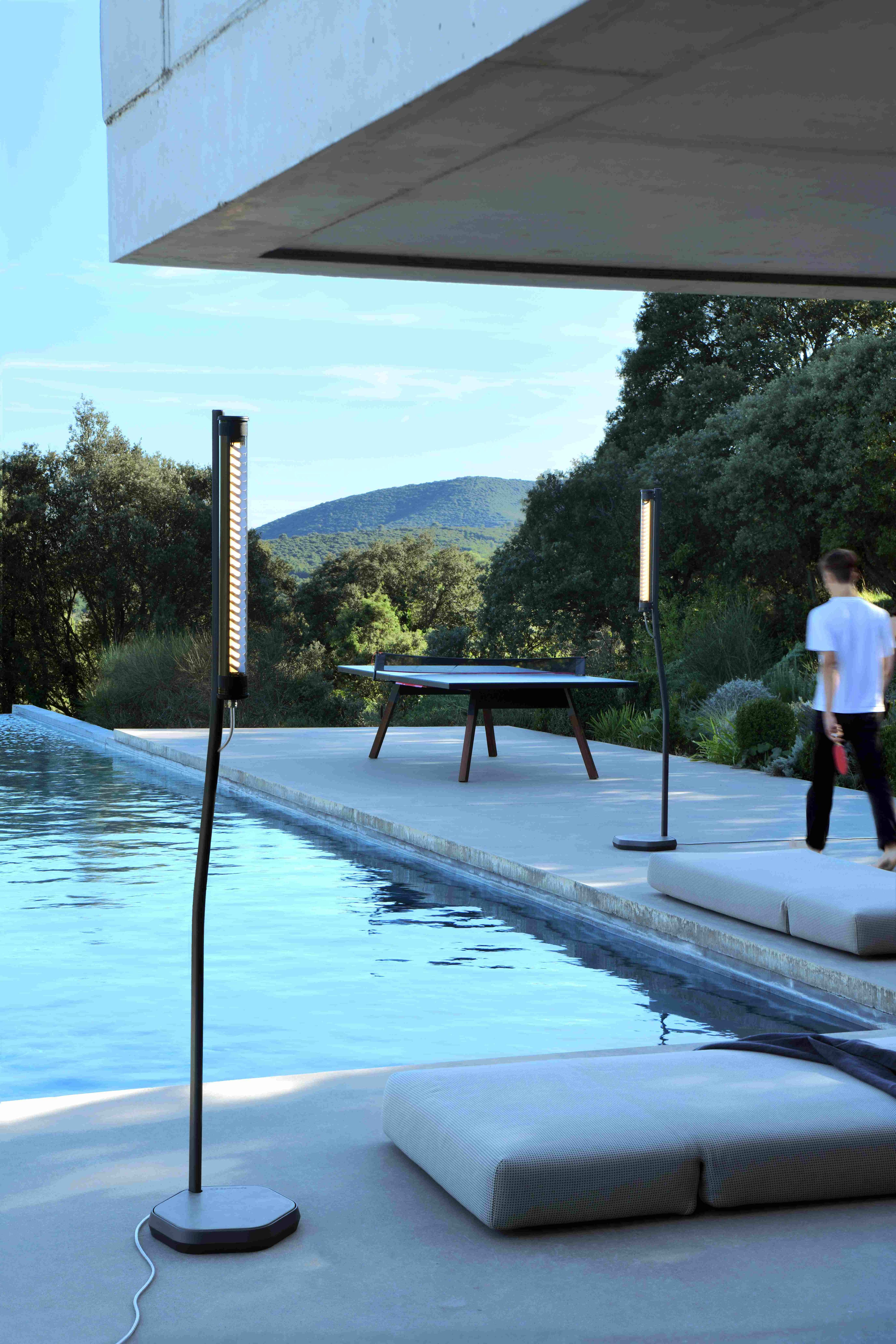 Lampe sur pied avec socle béton, structure aluminium et lampe tubulaire LED diamètre 70, hautement décorative. Lignes épurées, finitions haut de gamme et qualité industrielle des matériaux et des composants, pour offrir une signature unique, durable et résolument contemporaine à vos espaces intérieurs ou extérieurs.Avec son socle en béton et son mât en aluminium, ce lampadaire est conçu pour éclairer terrasses et jardins. Sa lumière est adoucie et teintée par les lamelles métalliques du tube Elgar, disponible en finition cuivrée, dorée, argentée, laiton et pétrole. Etanche de la tête au pied - jusqu’à son boitier de gradation qui vous permet d’adapter son intensité lumineuse à toutes les situations - le Bodom sublimera aussi bien votre intérieur que vos espaces extérieurs, en toutes saisons.Ce luminaire est livré prêt pour l’installation et est équipé de sa prise, son câble et de sa source. Tous nos luminaires sont fabriqués, assemblés et emballés dans notre usine à Châtillon-sur-Saône dans les Vosges. Design : Normal Studio