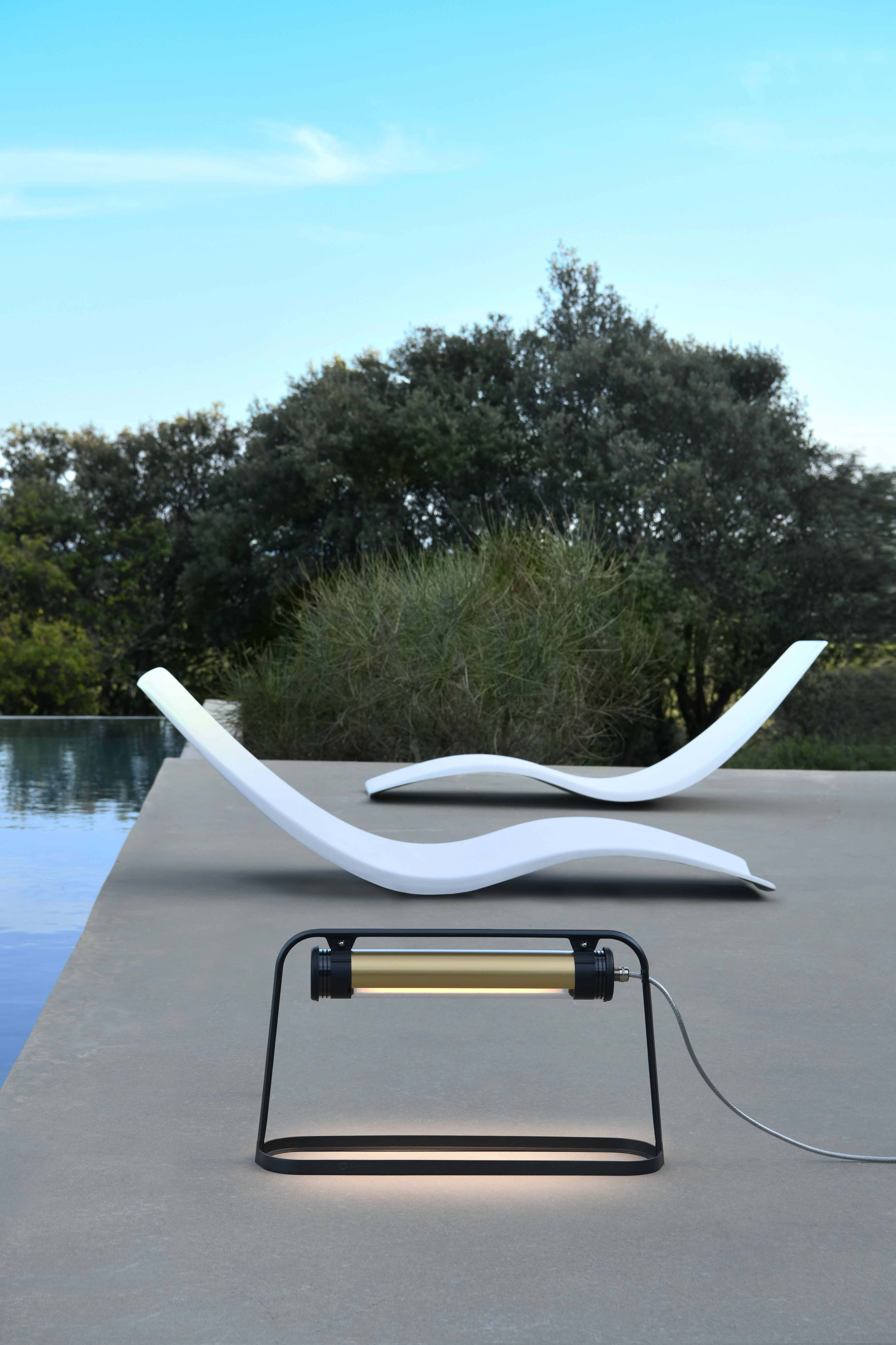 Lampe de table avec structure aluminium et lampe tubulaire LED diamètre 70, hautement décorative. Lignes épurées, finitions haut de gamme et qualité industrielle des matériaux et des composants, pour offrir une signature unique, durable et résolument contemporaine à vos espaces intérieurs ou extérieurs.Son arche en aluminium laqué légère et graphique vient recevoir une lampe tubulaire intégrant un module LEDs dernière génération. Disponible en plusieurs teintes, cette lampe à poser est munie d’un bouton-variateur qui lui permet d’éclairer comme bon vous semble une table, un bureau ou de prendre place dans une bibliothèque. Sa lumière peut être modulée pour apporter un éclairage doux lors d’un dîner le soir en terrasse ou au contraire devenir une lampe de bureau fonctionnelle et confortable.Ce luminaire est livré prêt pour l’installation et est équipé de sa prise, son câble et de sa source. Tous nos luminaires sont fabriqués, assemblés et emballés dans notre usine à Châtillon-sur-Saône dans les Vosges. Design : Normal Studio