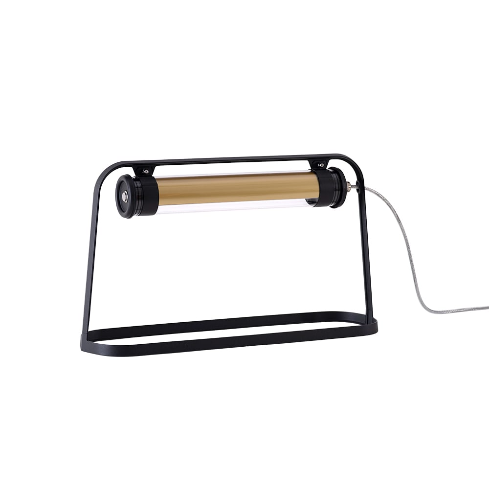 Lampe de table avec structure aluminium et lampe tubulaire LED diamètre 70, hautement décorative. Lignes épurées, finitions haut de gamme et qualité industrielle des matériaux et des composants, pour offrir une signature unique, durable et résolument contemporaine à vos espaces intérieurs ou extérieurs.