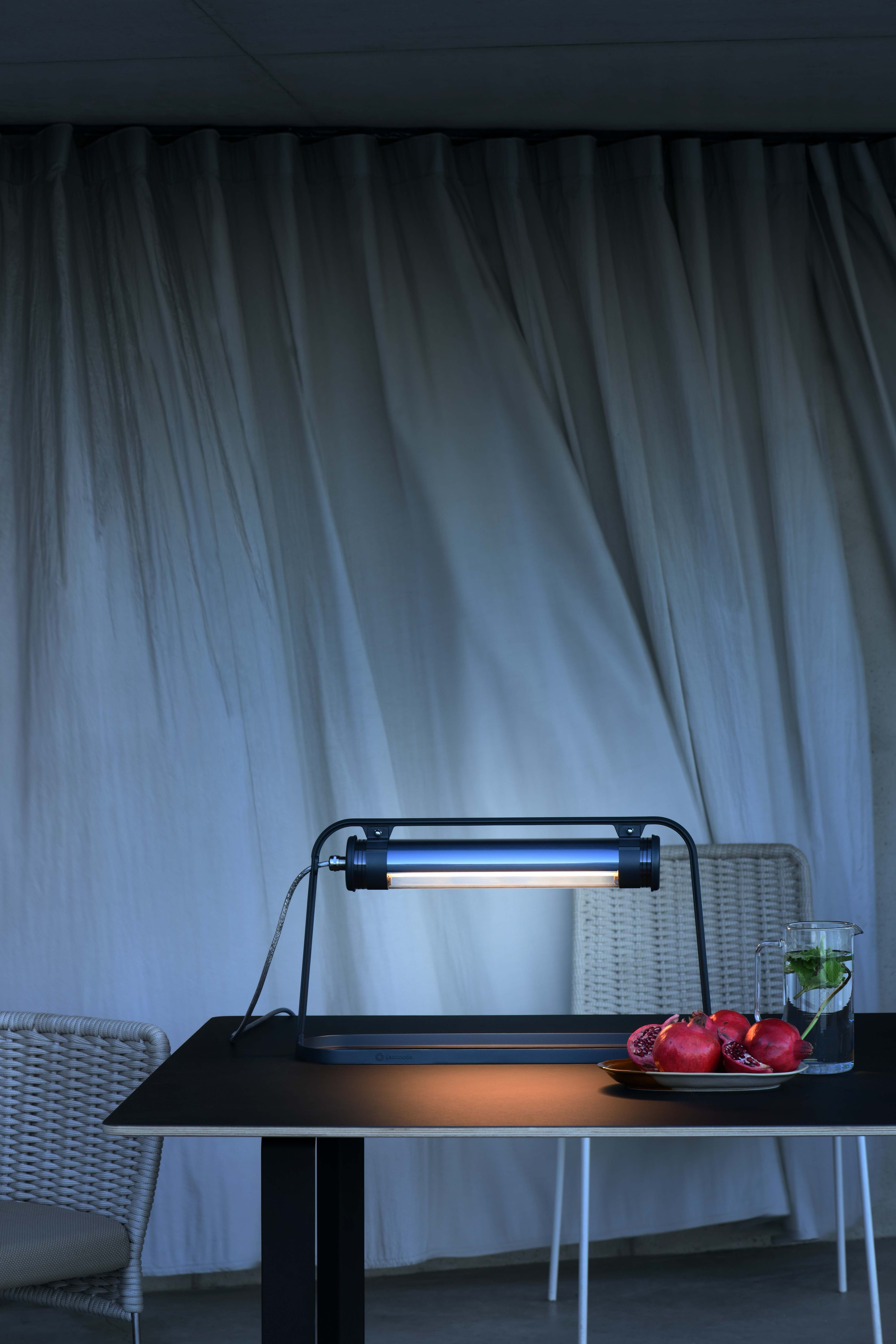 Lampe de table avec structure aluminium et lampe tubulaire LED diamètre 70, hautement décorative. Lignes épurées, finitions haut de gamme et qualité industrielle des matériaux et des composants, pour offrir une signature unique, durable et résolument contemporaine à vos espaces intérieurs ou extérieurs.Son arche en aluminium laqué légère et graphique vient recevoir une lampe tubulaire intégrant un module LEDs dernière génération. Disponible en plusieurs teintes, cette lampe à poser est munie d’un bouton-variateur qui lui permet d’éclairer comme bon vous semble une table, un bureau ou de prendre place dans une bibliothèque. Sa lumière peut être modulée pour apporter un éclairage doux lors d’un dîner le soir en terrasse ou au contraire devenir une lampe de bureau fonctionnelle et confortable.Ce luminaire est livré prêt pour l’installation et est équipé de sa prise, son câble et de sa source. Tous nos luminaires sont fabriqués, assemblés et emballés dans notre usine à Châtillon-sur-Saône dans les Vosges. Design : Normal Studio