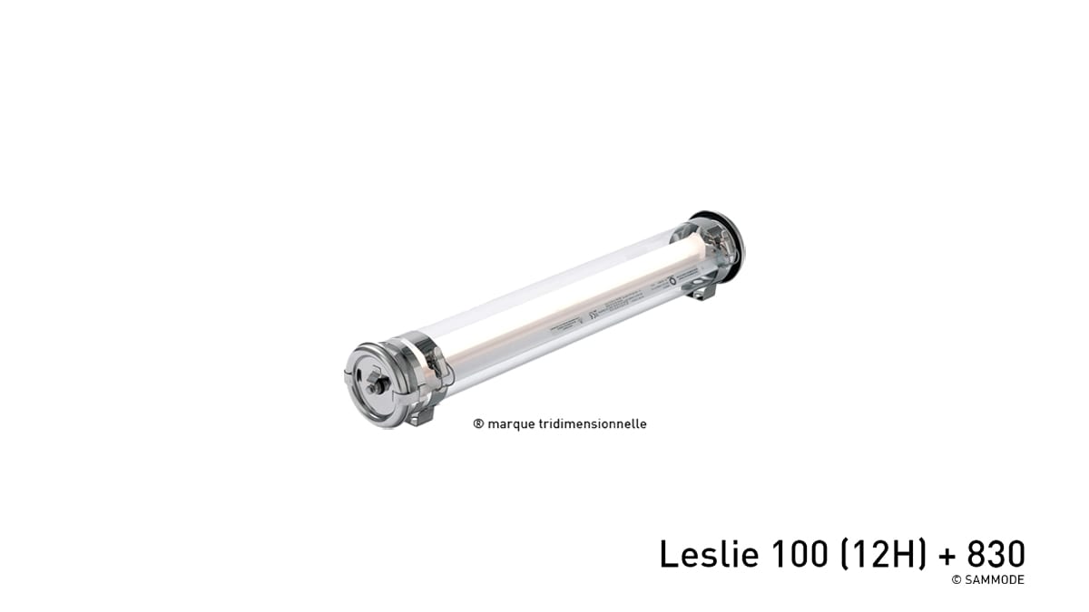 Luminaire tubulaire pour éclairage à haute température LESLIE 133 - Flasques inox en forme de 1/2 tore creux - Diffuseur optique - Vasque Ø135 mm en verre borosilicaté - Toute partie métallique externe en inox 316L et visserie en inox A4 - Enveloppe monobloc à haute résistance mécanique et à étanchéité renforcée - Platine d'appareillage en tôle d'acier laquée blanche - Dissipateur thermique en aluminium - Joints moulés haute température en silicone - Modules LED spécifiques haute température démontables à haute efficacité (IRC>80, 50 000h L80/B50) - Flux lumineux: 3700 lm - Température de couleur : 4000K - Light mixing chamber - Driver LED non réglable spécial haute température - Diamètre : 133 mm - Longueur hors tout: 1287 mm - Entrée de câble par 1 presse-étoupe en inox 316L (capacité : Ø7 à 13 mm) - Raccordement par Bornier débrochable 3x2,5mm² - Fixation par colliers renforcés en inox à grenouillère à entraxe variable et permettant une orientation sur 360° - Maintenance par desserrage des 2 vis de fermeture, démontage du flasque mobile et extraction de la platine - Garantie : 5 ans, en usage 24/7 à temp max - Température d'utilisation : -20°C +70°C - Étanchéité : IP66, IP68 et IP69K - Résistance aux chocs : IK07 - Classe I - Tension d'alimentation : 220-240V 50/60Hz - Consommation: 35 W - Résistance à la surtension: 320 V AC, 48 h (Supporte les pics de tension < 4 kV) - Résistance aux vibrations : Conforme aux conditions sévères de l’EN 60598-1 (tests selon CEI 60068-2-6) - Résistance au fil incandescent : Ininflammable - Poids: 9,5 kg - Conçu et fabriqué en France