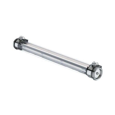 Luminaire tubulaire pour fosse de visite NIEPCE FV - Flasques inox en forme de 1/2 tore creux - Optique spécifique à haut confort visuel et réflecteur asymétrique avec fenêtre de réflexion vers le sol - Vasque Ø70 mm en polycarbonate protégé des UV, des solvants, des hydrocarbures et des agents lessiviels par une coextrusion de méthacrylate - Enveloppe monobloc à étanchéité renforcée par expansion radiale du joint - Platine d'appareillage réversible permettant l'orientation du réflecteur et un branchement par la gauche ou par la droite, avec système de connexion électrique automatique à la fermeture - Dissipateur thermique en aluminium - Joints moulés en EPDM - Câblage interne haute température à isolation silicone tressée fibre de verre - Modules LED démontables à haute efficacité (IRC>80, 70 000h L80/B50@Tmax) - Flux lumineux: 3000 lm - Température de couleur : 4000K - Driver LED robuste spécial industrie, non réglable - Diamètre : 70 mm - Longueur hors tout: 995 mm - Entrée de câble par 1 presse-étoupe en laiton nickelé (Ø8 à 12 mm) - Raccordement par bornier 3x2,5mm² solidaire du flasque de fermeture - Fixation par colliers en inox à grenouillère à entraxe variable et permettant une orientation sur 360° - Maintenance sans intervention sur le câble par extraction de la platine par le côté opposé à l'alimentation - Garantie : 8 ans, en usage 24/7 à temp max - Température d'utilisation : -20°C +35°C - Indice de protection : IP66/IP68/IP69K - Résistance aux chocs : IK10 - Classe I - Tension d'alimentation : 220-240V 0/50/60Hz - Consommation: 26 W - Efficacité lumineuse: 115 lm/W - Résistance à la surtension: 320 V AC, 48 h (Supporte les pics de tension < 1 kV) - Facteur de puissance > 0,95 - THD: 13 % - Risque photobiologique : Groupe 0 - Pic de courant d'appel: 22,6 A - Durée du courant d'appel à 50% du pic: 203 µs - Résistance au fil incandescent : 650°C - Nombre de drivers sur MCB type B 16A: 27 pcs - Résistance aux vibrations : Conforme aux conditions sévères de l’EN 60598-1 (tests selon CEI 60068-2-6) - Poids: 2,1 kg - Conçu et fabriqué en France
