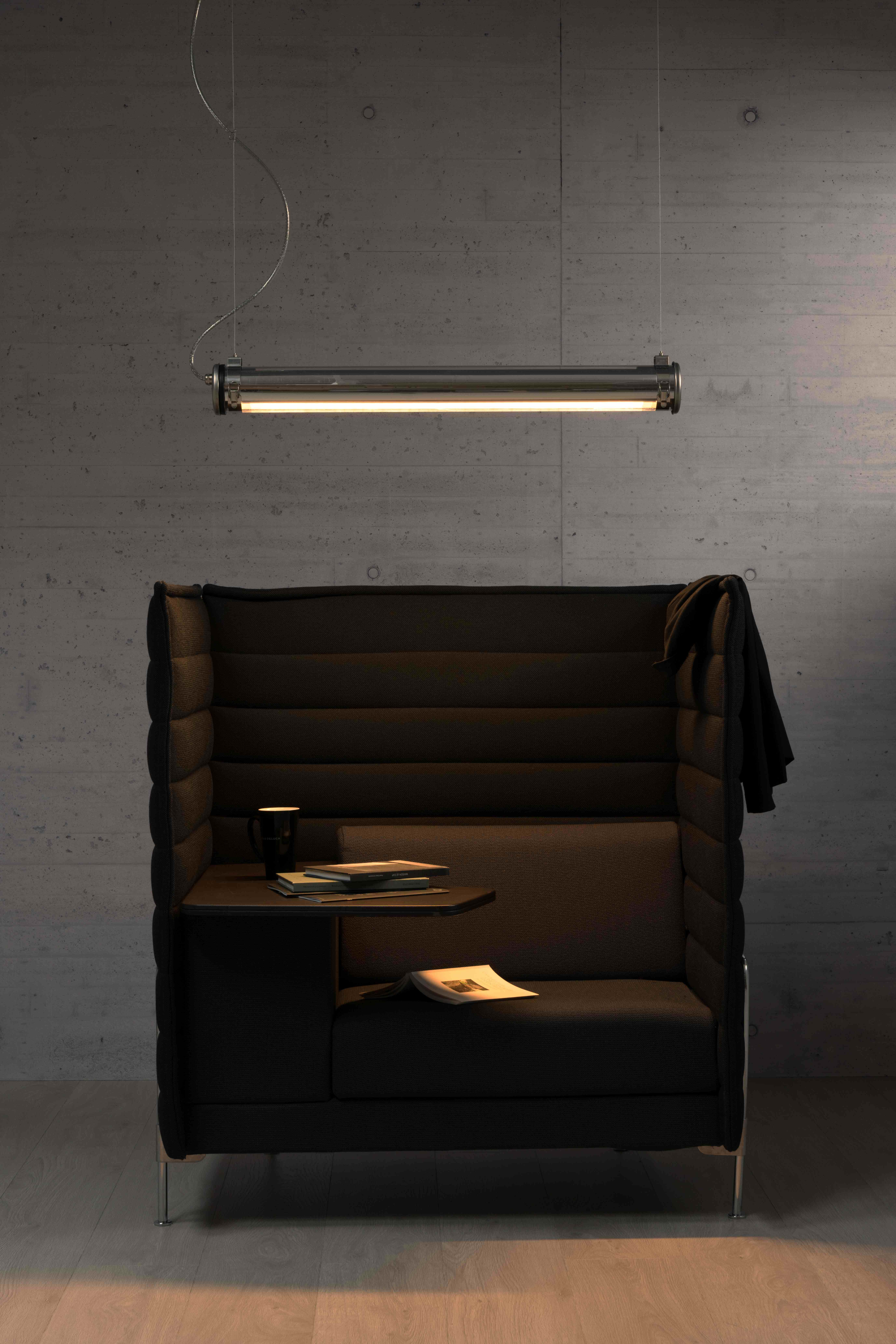 Luminaire tubulaire LED diamètre 100 ou 133 à grille basse luminance, esthétique et fonctionnel, en plafonnier ou en suspension. Disponible en plusieurs longueurs et plusieurs flux, de 2100 à 4000 lumens. Lignes épurées, finitions haut de gamme et qualité industrielle des matériaux et des composants, pour offrir une signature unique, intemporelle et durable à votre projet architectural. Equipé d'une grille basse luminance haute performance offrant un UGR?19, c'est le luminaire idéal pour les espaces nécessitant une haute qualité de lumière et de confort dans toutes les directions : bureaux, salles de classe, médiathèques, quais de gare... Fiable et robuste, insensible aux UV avec son corps composite (polycarbonate/PMMA coextrudés), il convient parfaitement pour des applications extérieures, dans le respect les nouvelles réglementations contre les nuisances lumineuse en extérieur (ULR = 0%). Détection de présence et gradation disponibles en option, ainsi que divers accessoires de finition. Herméticité totale et durable à la poussière et à l'humidité (IP68), en intérieur comme en extérieur. Enveloppe hautement résistante aux chocs (IK10), et flasque equipé d'une prise débrochable (PS3) pour une installation ultra-rapide.Très fortes économies d'énergie et de maintenance par rapport aux solutions fluorescentes. Garantie 8 ans en usage intensif, en intérieur comme en extérieur. Conçu et fabriqué en FRANCE, pensé pour durer, et entièrement démontable et réparable, c'est le tubulaire basse luminance de référence pour l'éclairage de tous les espaces nécessitant un très haut niveau de confort lumineux.