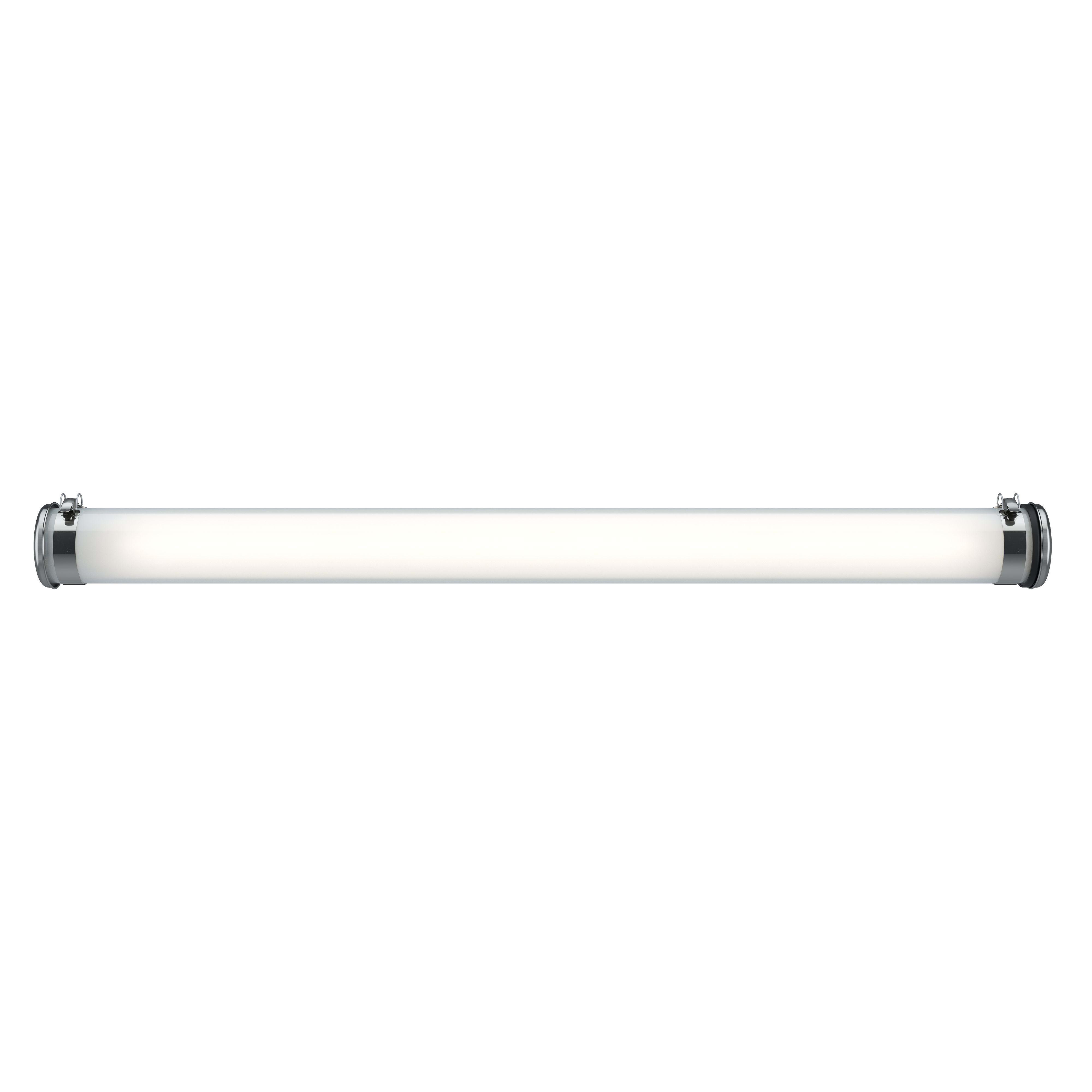 Luminaire tubulaire pour éclairage diffus Géricault - Vasque : Coextrudé de polycarbonate/PMMA insensible aux UV pour un usage intérieur/extérieur - Flasques, colliers, …: Inox 304L - Dissipateur thermique passif en aluminium - Joints : Joints moulés en EPDM - Modules LED démontables à haute efficacité (IRC>80, 3 SDCM) - Flux lumineux: 8000 lm - Température de couleur: 3000 K - Gestion des luminances par utilisation d'une vasque diffusante - Light mixing chamber - UGR ? 25 (luminaire en position plafonnier ou en suspension) - Driver à sortie en courant constant, gradable selon protocole DALI 2 - Diamètre : 133 mm - Longueur hors tout: 1595 mm - Entrée de câble par 1 prise débrochable 5x1,5mm² à verrouillage par bague vissée pour câble Ø 8 à 10 mm - Fixation par 2 Colliers en inox à vis CHC (à entraxe variable) - Ouverture et fermeture rapide par une seule vis - Maintenance par système de tiroir (breveté) - Modules LED et driver facilement démontables - Garantie 8 ans - 70 000 h L80/B10 à 25°C - Température d’utilisation : -25 °C à +35 °C - Étanchéité : IP66, IP68 et IP69K - Résistance aux chocs : IK10 - Classe électrique : Classe II - Tension d'alimentation : 220-240V 0/50/60Hz - Consommation: 69 W - Efficacité lumineuse: 116 lm/W - Facteur de puissance > 0,95 - THD: 8,5 % - Risque photobiologique : Groupe 0 - Pic de courant d'appel: 25 A - Durée du courant d'appel à 50% du pic: 280 µs - Résistance au feu : 650 °C - Nombre de drivers sur MCB type B 16A: 24 pcs - Poids: 4,7 kg