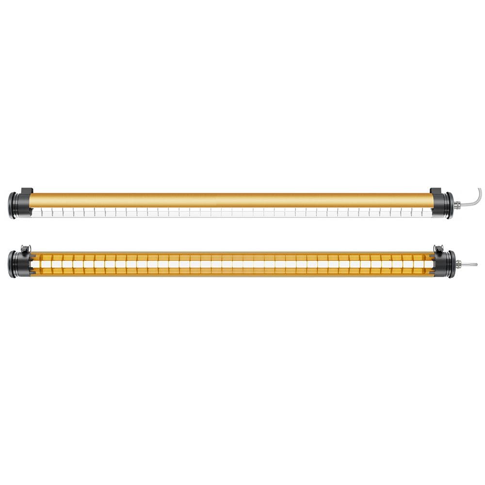 Plafonnier à flux dirigé PURCELL - Cache-appareillage interne roulé en aluminium anodisé : BRASS - Vasque : Polycarbonate qualité cristal - Flasques & Colliers : Inox 304L - Grille de défilement longitudinale en aluminium couleur laiton - Platine interne en tôle d’acier laquée grise RAL 9006 - Joints : Joints moulés en EPDM - Modules LED démontables à haute efficacité (IRC>80, 3 SDCM) - Flux lumineux: 1500 lm - Température de couleur: 2700 K - Optique primaire diffusante satinée spécifique - UGR ? 22 - Défilement longitudinal : 25° - Driver à sortie en courant constant, non gradable - Diamètre : 70 mm - Longueur hors tout: 995 mm - Entrée de câble par presse-étoupe en laiton nickelé pour câble Ø 8 à 12 mm - Raccordement par bornier 3x2,5mm² solidaire du flasque de fermeture - Fixation par colliers renforcés en inox à grenouillère à entraxe variable et permettant une orientation sur 360° - Fermeture par serrage de l’écrou sous presse-étoupe - Ouverture et fermeture rapide par une seule vis - Système breveté de connexion/déconnexion électrique automatique à la fermeture - Installation verticale : presse-étoupe vers le bas - Maintenance sans intervention sur le câble par extraction de la platine par le côté opposé à l'alimentation - Modules LED et driver facilement démontables - Garantie 8 ans - 70 000 h L80/B10 à 25°C - Température d’utilisation : -25 °C à +35 °C - Étanchéité : IP66, IP68 et IP69K - Résistance aux chocs : IK10 - Classe électrique : Classe II - Tension d'alimentation : 220-240 V 50/60 Hz - Consommation: 14 W - Facteur de puissance > 0,85 - THD: 30 % - Risque photobiologique : Groupe 0 - Pic de courant d'appel: 32 A - Durée du courant d'appel à 50% du pic: 240 µs - Résistance au feu : 960 °C - Nombre de drivers sur MCB type B 16A: 16 pcs - Poids: 2,1 kg - Conçu et fabriqué en France