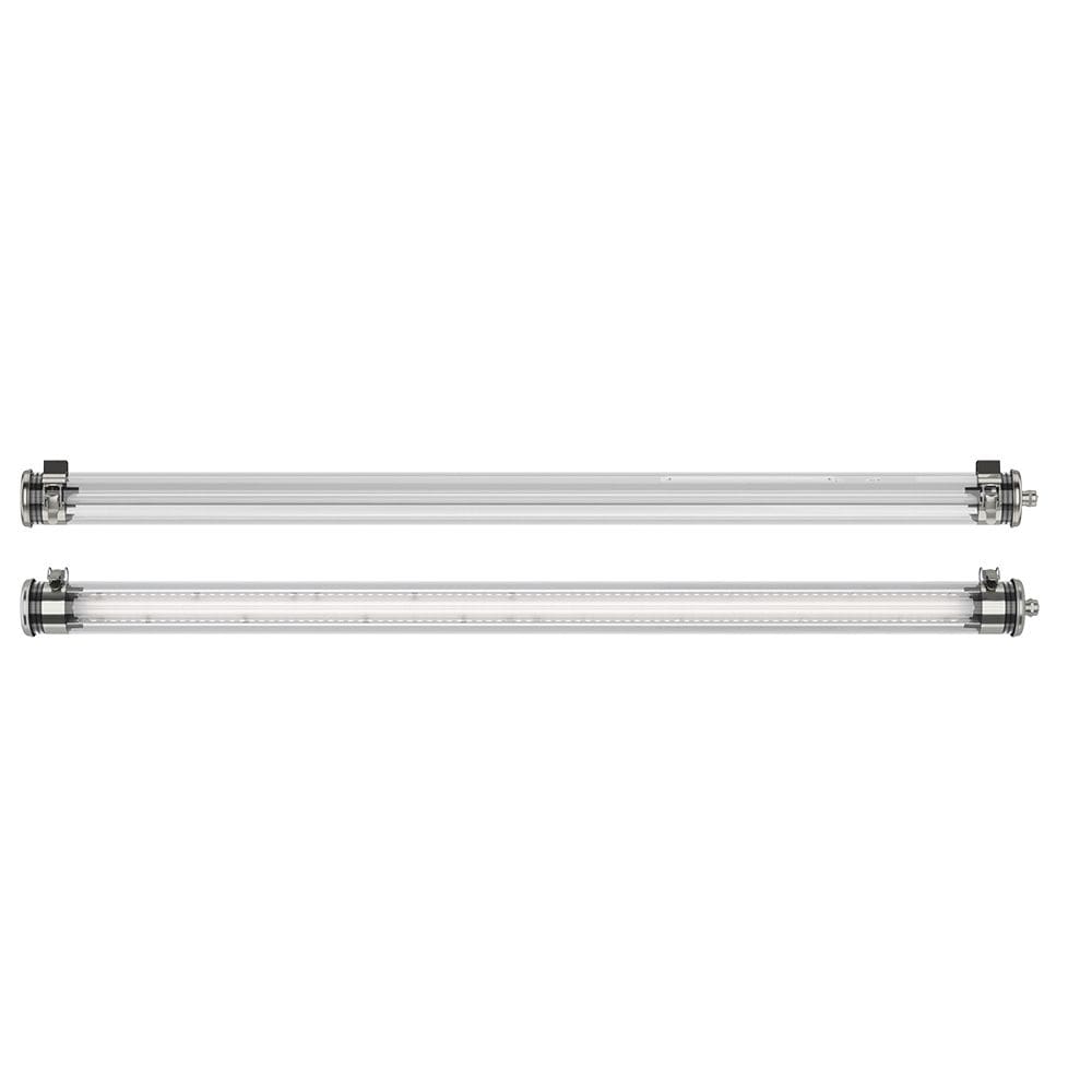Luminaire tubulaire à flux dirigé Scorel - Vasque : Coextrudé de polycarbonate/PMMA insensible aux UV pour un usage intérieur/extérieur - Flasques & Colliers : Inox 304L - Réflecteur extensif en aluminium grand brillant - Dissipateur thermique passif en aluminium - Platine interne en tôle d’acier laquée grise RAL 9006 - Joints : Joints moulés en EPDM - Modules LED démontables à haute efficacité (IRC>80, 3 SDCM) - Flux lumineux: 1500 lm - Température de couleur: 3000 K - Optique primaire diffusante satinée spécifique limitant l'intensité axiale - Light mixing chamber - UGR ? 25 - Sans nuisance lumineuse pour l’éclairage extérieur : ULR = 0% - Orientation max pour ULR < 4% : 30° en position horizontale - FC3 = 98% - Driver à sortie en courant constant, gradable selon protocole DALI 2 - Diamètre : 70 mm - Longueur hors tout: 995 mm - Entrée de câble par presse-étoupe en laiton nickelé pour câble Ø 8 à 12 mm - Raccordement sur bornier débrochable 5 x 2,5 mm² - Fixation par 2 Colliers en inox à vis Torx Tamper (à entraxe variable) - Fermeture par serrage de l’écrou sous presse-étoupe - Ouverture et fermeture rapide par une seule vis - Système breveté de connexion/déconnexion électrique automatique à la fermeture - Maintenance sans intervention sur le câble par extraction de la platine par le côté opposé à l'alimentation - Modules LED et driver facilement démontables - Garantie 8 ans - 70 000 h L80/B10 à 25°C - Température d’utilisation : -25 °C à +35 °C - Étanchéité : IP66, IP68 et IP69K - Résistance aux chocs : IK10 - Classe électrique : Classe II - Tension d'alimentation : 220-240V 0/50/60Hz - Consommation: 15 W - Efficacité lumineuse: 100 lm/W - Facteur de puissance > 0,85 - THD: 20 % - Risque photobiologique : Groupe 0 - Pic de courant d'appel: 17 A - Durée du courant d'appel à 50% du pic: 170 µs - Résistance au feu : 650 °C - Nombre de drivers sur MCB type B 16A: 28 pcs - Poids: 2,4 kg - Conçu et fabriqué en France