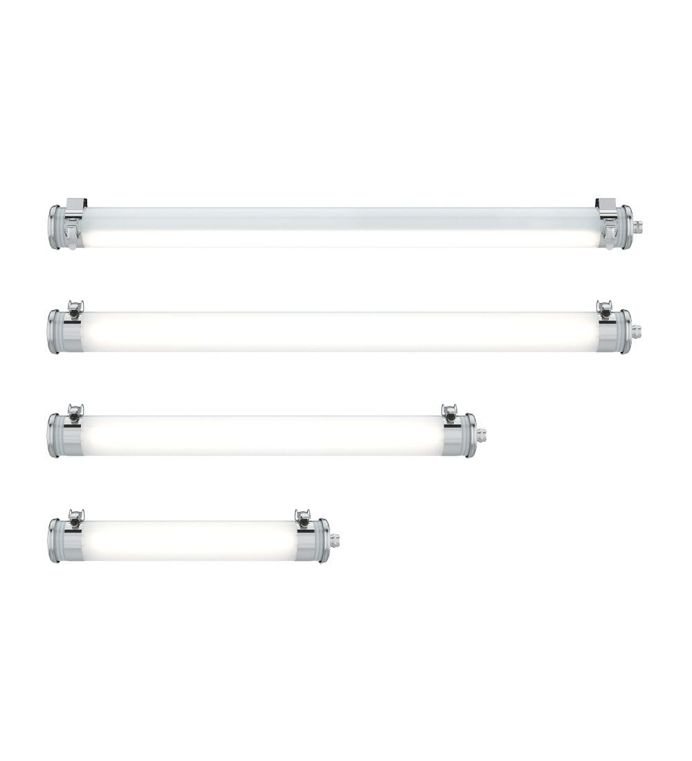 Luminaire tubulaire pour éclairage diffus Turner - Vasque : Polycarbonate satiné spécial LED - Flasques, colliers, …: Inox 304L - Dissipateur thermique passif en aluminium - Joints : Joints moulés en EPDM - Modules LED démontables à haute efficacité (IRC>80, 3 SDCM) - Flux lumineux: 1500 lm - Température de couleur: 2700 K - Gestion des luminances par utilisation d'une vasque diffusante - Light mixing chamber - UGR ? 22 - Driver à sortie en courant constant, non gradable - Diamètre : 70 mm - Longueur hors tout: 995 mm - Entrée de câble par presse-étoupe en laiton nickelé pour câble Ø 8 à 12 mm - Raccordement sur bornier débrochable 3 x 2,5 mm² - Fixation par 2 colliers en inox à grenouillère (à entraxe variable) - Fermeture par serrage de l’écrou sous presse-étoupe - Ouverture et fermeture rapide par une seule vis - Système breveté de connexion/déconnexion électrique automatique à la fermeture - Installation verticale : presse-étoupe vers le bas - Maintenance sans intervention sur le câble par extraction de la platine par le côté opposé à l'alimentation - Modules LED et driver facilement démontables - Garantie 8 ans - 70 000 h L80/B10 à 25°C - Température d’utilisation : -25 °C à +35 °C - Étanchéité : IP66, IP68 et IP69K - Résistance aux chocs : IK10 - Classe électrique : Classe I - Consommation: 14 W - Efficacité lumineuse: 107 lm/W - Facteur de puissance > 0,85 - THD: 7 % - Risque photobiologique : Groupe 0 - Pic de courant d'appel: 20,4 A - Durée du courant d'appel à 50% du pic: 195 µs - Résistance au feu : 960 °C - Nombre de drivers sur MCB type B 16A: 24 pcs - Poids: 2,1 kg - Conçu et fabriqué en France