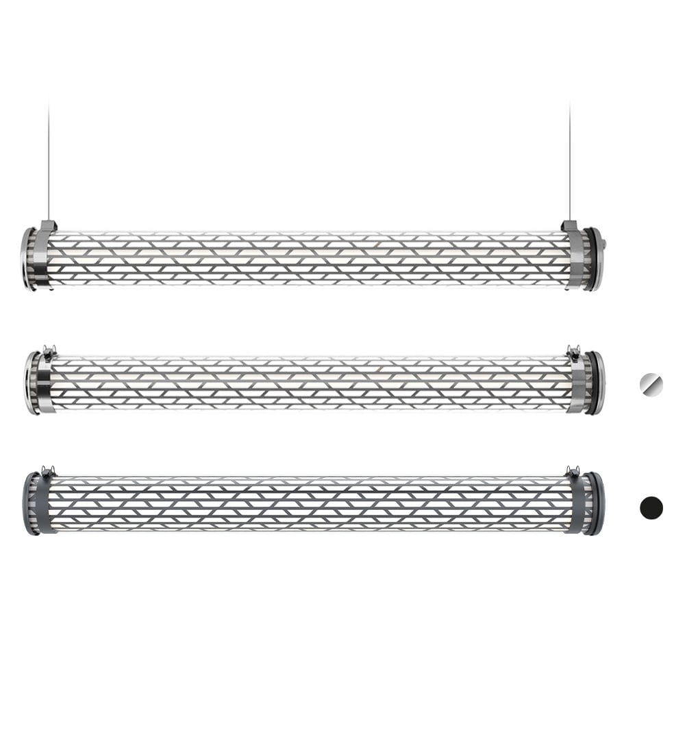 Luminaire tubulaire LED diamètre 133 à grille multiperforée, hautement décoratif, idéal en suspension. Lignes épurées, finitions haut de gamme et qualité industrielle des matériaux et des composants, pour offrir une signature unique, durable et résolument contemporaine à vos espaces intérieurs ou extérieurs.La collection Paname, dessinée en hommage à la ville lumière, rassemble 4 familles de luminaires, chacune construite autour d’un motif de grille . La grille du Belleville, au motif simple et rectiligne, évoque le style contemporain de ce célèbre quartier au passé ouvrier, aujourd’hui temple du street art parisien. Disponible en noir charbon ou tout inox, cette grande suspension au style industriel affirmé éclaire sur 360 degrés et s’avère idéale pour révéler les volumes d’un loft. Un film interne blanc diffuse parfaitement la lumière produite par les LED et met en valeur le dessin résolument moderne de sa grille multiperforée.Ce luminaire est livré prêt pour l’installation et est équipé de son câble, de sa source et d’une sortie murale. Tous nos luminaires sont fabriqués, assemblés et emballés dans notre usine à Châtillon-sur-Saône dans les Vosges. Design : Normal Studio.
