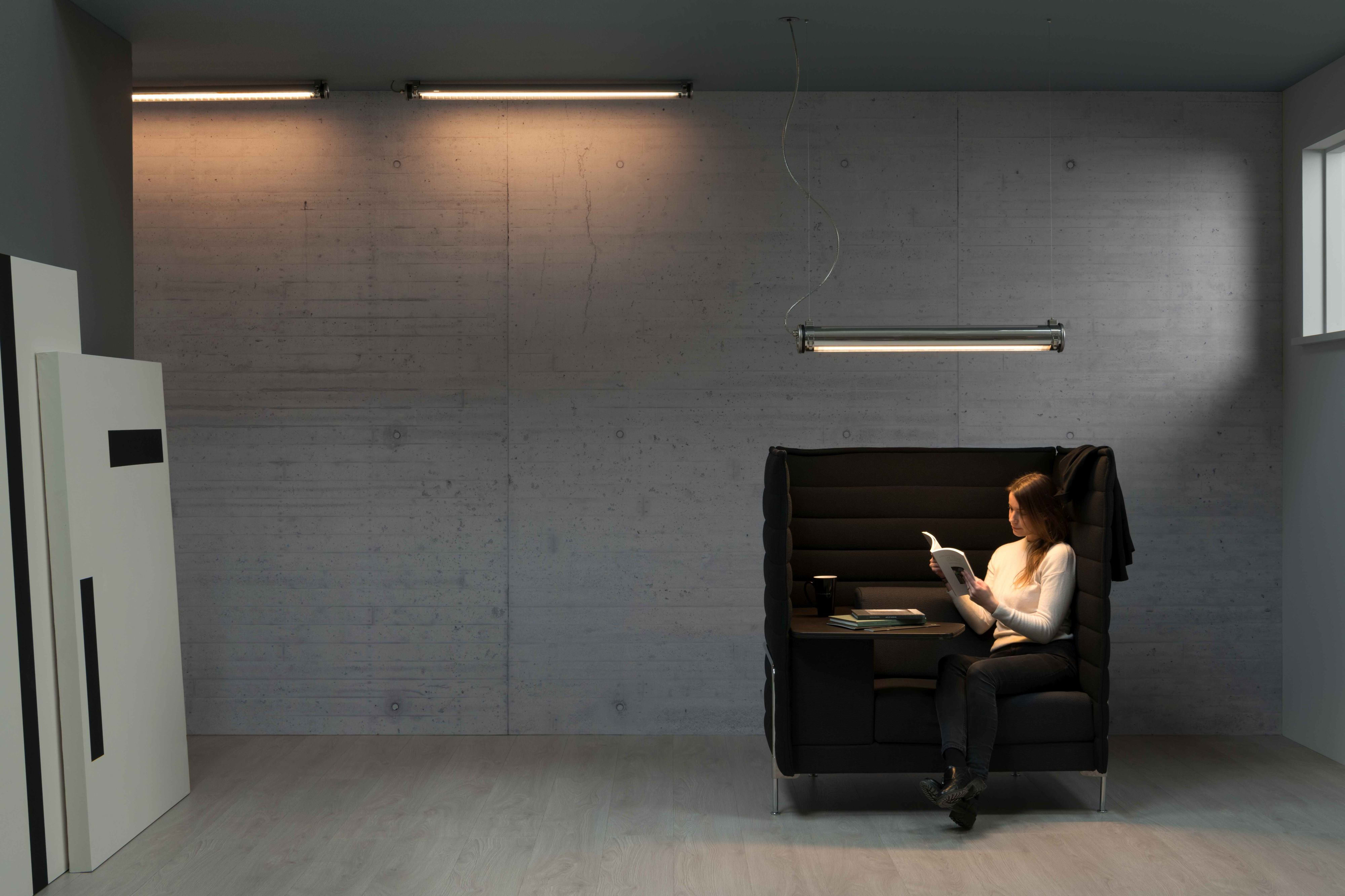 Luminaire tubulaire LED diamètre 70 à grille de défilement, esthétique et fonctionnel, en plafonnier ou en suspension. Disponible en plusieurs longueurs, et plusieurs flux de 350 à 2500 lumens. Lignes épurées, finitions haut de gamme et qualité industrielle des matériaux et des composants, pour offrir une signature unique, intemporelle et durable à votre projet architectural.Ses lamelles en aluminium légèrement brossé, conçues spécifiquement pour le Purcell, masquent parfaitement la source LED dans le sens longitudinal, tout en produisant une agréable lumière diffuse. Grâce à ce dispositif optique unique, le Purcell offre un parfait compromis entre design et confort lumineux ; il est idéal pour éclairer une circulation avec un niveau d'éclairement standard, tout en restant discret de part son encombrement limité. Gradation disponible en option, ainsi que divers accessoires de finition.Herméticité totale et durable à la poussière et à l'humidité (IP68), en intérieur comme en extérieur. Enveloppe hautement résistante aux chocs (IK10), au vandalisme, aux intempéries et insensible aux UV. Maintenance et entretien facile, sur site et sans dépose, grâce à sa platine extractable et reconnectable côté opposé à l'entrée de câble (système breveté Close'n Connect).Très fortes économies d'énergie et de maintenance par rapport aux solutions fluorescentes. Garantie 8 ans en usage intensif, en intérieur comme en extérieur. Conçu et fabriqué en FRANCE, pensé pour durer, évolutif et entièrement réparable, c'est le tubulaire à grille de défilement de référence pour l'éclairage des circulations et des petits espaces nécessitant un haut niveau de confort lumineux.