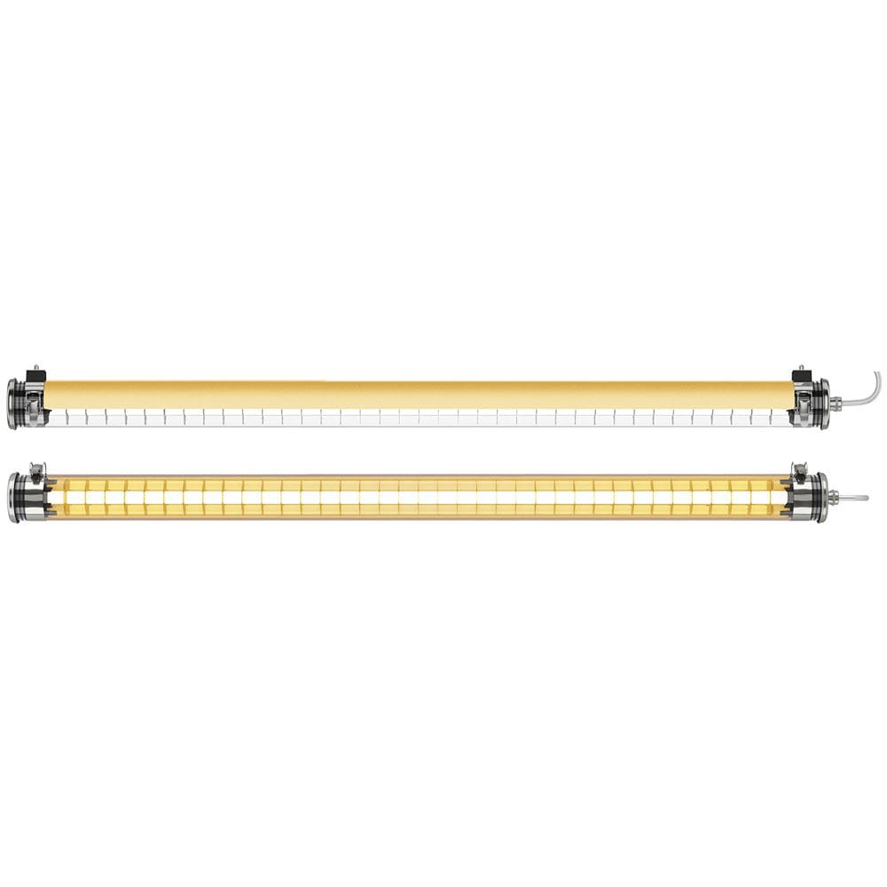 Plafonnier à flux dirigé PURCELL - Couleur : COAL (RAL 7021) - Cache-appareillage interne roulé en aluminium anodisé : GOLD - Vasque : Coextrudé de polycarbonate/PMMA insensible aux UV pour un usage intérieur/extérieur - Flasques & Colliers : Inox 304L laqués COAL (RAL 7021) - Grille de défilement longitudinale en aluminium doré - Platine interne en tôle d’acier laquée grise RAL 9006 - Joints : Joints moulés en EPDM - Modules LED démontables à haute efficacité (IRC>80, 3 SDCM) - Flux lumineux: 2000 lm - Température de couleur: 2700 K - Optique primaire diffusante satinée spécifique - UGR ? 22 - Défilement longitudinal : 25° - Driver à sortie en courant constant, gradable par bouton-poussoir - Diamètre : 70 mm - Longueur hors tout: 1295 mm - Entrée de câble par presse-étoupe en laiton nickelé pour câble Ø 8 à 12 mm - Raccordement par bornier 5x2,5mm² solidaire du flasque de fermeture - Fixation par colliers renforcés en inox à grenouillère à entraxe variable et permettant une orientation sur 360° - Livré avec 2 kits de suspension intégrant : un système d'accrochage sur plafond, 3 m de filin acier de Ø 1,2 mm et un système de fixation sur colliers avec dispositif de réglage - Fermeture par serrage de l’écrou sous presse-étoupe - Ouverture et fermeture rapide par une seule vis - Système breveté de connexion/déconnexion électrique automatique à la fermeture - Maintenance sans intervention sur le câble par extraction de la platine par le côté opposé à l'alimentation - Modules LED et driver facilement démontables - Garantie 8 ans - 70 000 h L80/B10 à 25°C - Température d’utilisation : -25 °C à +35 °C - Étanchéité : IP66, IP68 et IP69K - Résistance aux chocs : IK10 - Classe électrique : Classe II - Tension d'alimentation : 220-240 V 50/60 Hz - Consommation: 18 W - Facteur de puissance > 0,95 - THD: 13 % - Risque photobiologique : Groupe 0 - Pic de courant d'appel: 17 A - Durée du courant d'appel à 50% du pic: 170 µs - Résistance au feu : 650 °C - Nombre de drivers sur MCB type B 16A: 28 pcs - Poids: 2,6 kg - Conçu et fabriqué en France