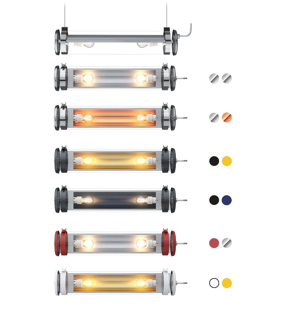 Luminaire tubulaire d’ambiance RIMBAUD - Couleur : WHITE (RAL 9010) - Flasques & Colliers : Inox 316L laqués WHITE (RAL 9010) - Réflecteur en aluminium anodisé : SILVER - Vasque Ø135 mm en verre borosilicaté - Toute partie métallique externe en inox 316L et visserie en inox A4 - Platine inox avec 2 douilles porcelaine E27 - Joints moulés en EPDM - Câblage interne haute température à isolation silicone tressée fibre de verre - Avec 2 lampes filament LED E27 4W 2700K claires - Flux lumineux: 600 lm - Température de couleur: 2700 K - Gradation par un module CASAMBI intégré - Longueur hors tout: 677 mm - Fourni équipé de 3m de câble 3G1,5 avec tresse en cuivre étamé sous gaine transparente - Fixation par 2 colliers renforcés en inox à grenouillère (à entraxe variable) et permettant une orientation sur 360° - Livré avec 2 kits de suspension intégrant : un système d'accrochage sur plafond, 3 m de filin acier de Ø 1,2 mm et un système de fixation sur colliers avec dispositif de réglage - Fourni avec un boitier de sortie murale en inox 316L, usage intérieur (IP 40), à raccorder à la terre - Installation en position verticale, presse-étoupe vers le bas - Maintenance par desserrage des 2 vis de fermeture, démontage du flasque mobile et extraction de la platine - Garantie 5 ans - Température d'utilisation : -20°C à +30°C - Indice de protection : IP66/IP68/IP69K - Résistance aux chocs : IK07 - Classe électrique : Classe I - Alimentation : 220-240V 50/60Hz - Consommation: 8 W - Résistance au fil incandescent : Ininflammable - Poids: 5,9 kg