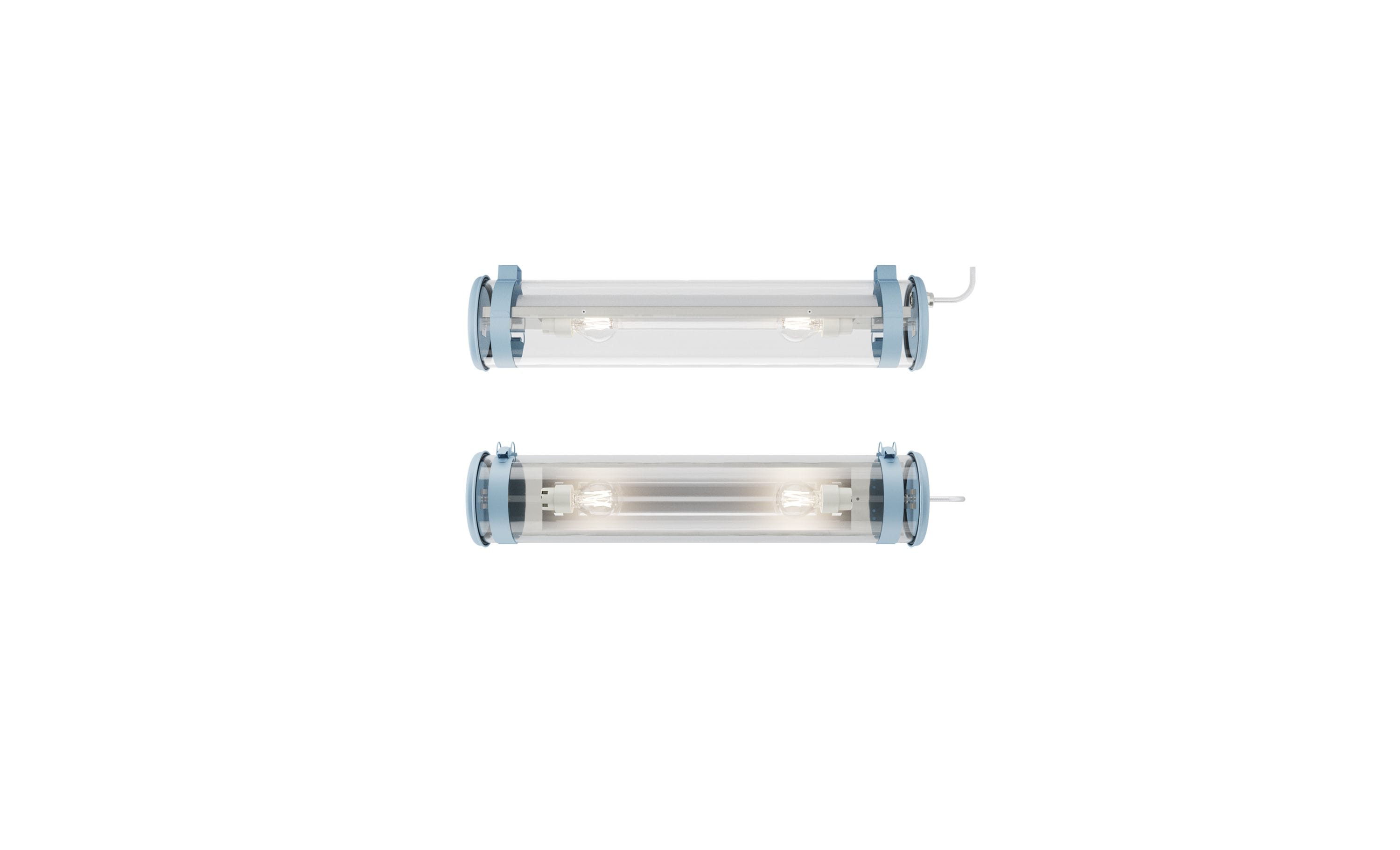 Luminaire tubulaire d’ambiance RIMBAUD - Couleur : AZUR (RAL 5024) - Flasques & Colliers : Inox 316L laqués AZUR (RAL 5024) - Réflecteur en aluminium anodisé : SILVER - Vasque Ø135 mm en verre borosilicaté - Toute partie métallique externe en inox 316L et visserie en inox A4 - Platine inox avec 2 douilles porcelaine E27 - Joints moulés en EPDM - Câblage interne haute température à isolation silicone tressée fibre de verre - Avec 2 lampes filament LED E27 4W 2700K claires - Flux lumineux: 600 lm - Température de couleur: 2700 K - Longueur hors tout: 677 mm - Fourni équipé de 3m de câble 3G1,5 avec tresse en cuivre étamé sous gaine transparente - Fixation par 2 colliers renforcés en inox à grenouillère (à entraxe variable) et permettant une orientation sur 360° - Livré avec 2 kits de suspension intégrant : un système d'accrochage sur plafond, 3 m de filin acier de Ø 1,2 mm et un système de fixation sur colliers avec dispositif de réglage - Fourni avec un boitier de sortie murale en inox 316L, usage intérieur (IP 40), à raccorder à la terre - Installation en position verticale, presse-étoupe vers le bas - Maintenance par desserrage des 2 vis de fermeture, démontage du flasque mobile et extraction de la platine - Garantie 5 ans - Température d'utilisation : -20°C à +30°C - Indice de protection : IP66/IP68/IP69K - Résistance aux chocs : IK07 - Classe électrique : Classe I - Alimentation : 220-240V 50/60Hz - Consommation: 8 W - Résistance au fil incandescent : Ininflammable - Poids: 5,8 kg
