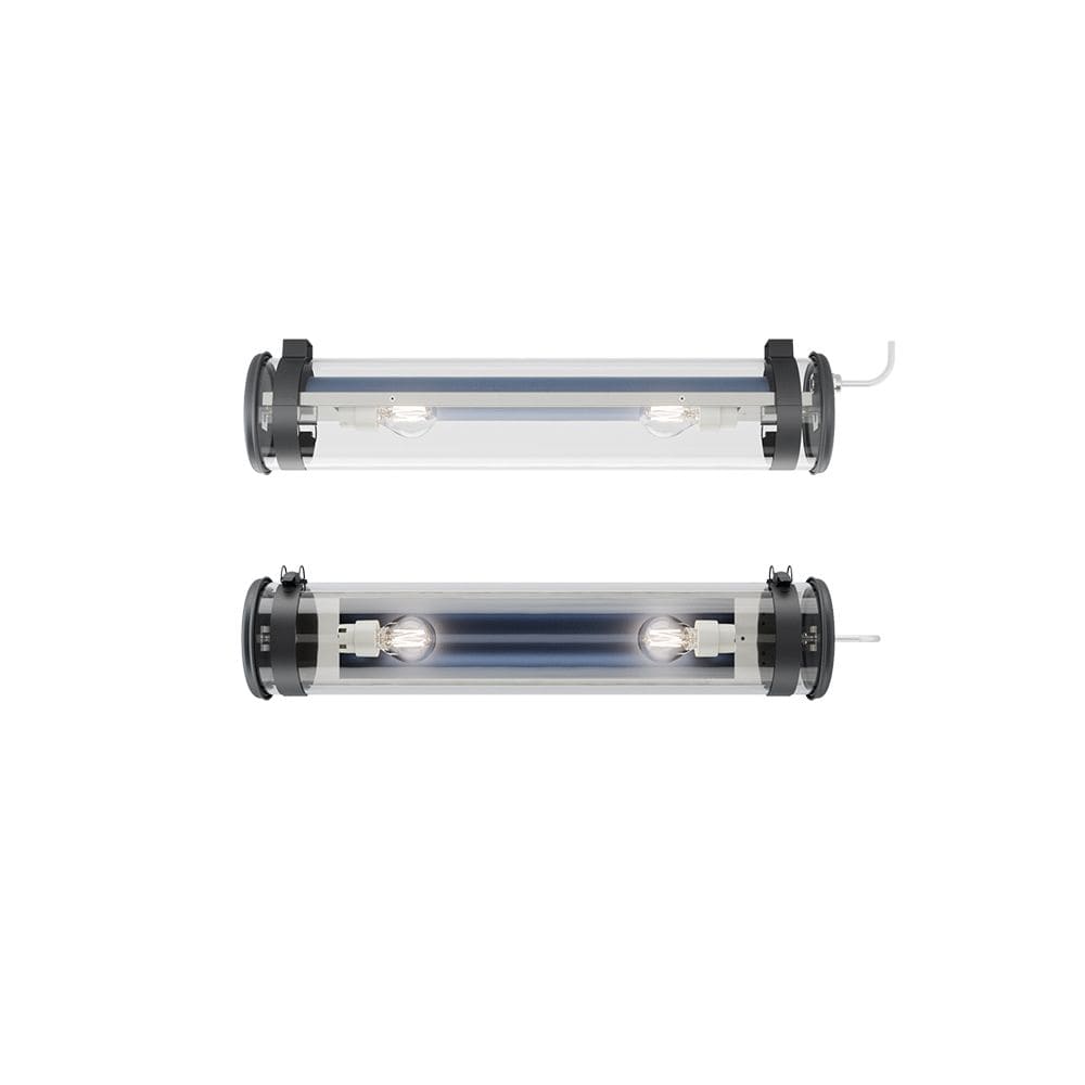 Luminaire tubulaire d’ambiance RIMBAUD - Couleur : COAL (RAL 7021) - Flasques & Colliers : Inox 316L laqués COAL (RAL 7021) - Réflecteur en aluminium anodisé : PETROL - Vasque Ø135 mm en verre borosilicaté - Toute partie métallique externe en inox 316L et visserie en inox A4 - Platine inox avec 2 douilles porcelaine E27 - Joints moulés en EPDM - Câblage interne haute température à isolation silicone tressée fibre de verre - Avec 2 lampes filament LED E27 4W 2700K claires - Flux lumineux: 500 lm - Température de couleur: 2700 K - Gradation par un module CASAMBI intégré - Longueur hors tout: 677 mm - Fourni équipé de 3m de câble 3G1,5 avec tresse en cuivre étamé sous gaine transparente - Fixation par 2 colliers renforcés en inox à grenouillère (à entraxe variable) et permettant une orientation sur 360° - Livré avec 2 kits de suspension intégrant : un système d'accrochage sur plafond, 3 m de filin acier de Ø 1,2 mm et un système de fixation sur colliers avec dispositif de réglage - Fourni avec un boitier de sortie murale en inox 316L, usage intérieur (IP 40), à raccorder à la terre - Installation en position verticale, presse-étoupe vers le bas - Maintenance par desserrage des 2 vis de fermeture, démontage du flasque mobile et extraction de la platine - Garantie 5 ans - Température d'utilisation : -20°C à +30°C - Indice de protection : IP66/IP68/IP69K - Résistance aux chocs : IK07 - Classe électrique : Classe I - Alimentation : 220-240V 50/60Hz - Consommation: 8 W - Résistance au fil incandescent : Ininflammable - Poids: 5,9 kg