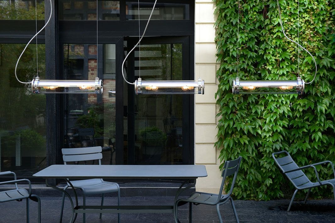 Luminaire tubulaire diamètre 133 à corps en verre et ampoules LED, hautement décoratif, idéal en suspension. Lignes épurées, finitions haut de gamme et qualité industrielle des matériaux, pour offrir une signature unique, durable et résolument contemporaine à vos espaces intérieurs ou extérieurs.Issu de l’histoire industrielle de Sammode, ce luminaire iconique et incontournable s’adaptera parfaitement à vos grands espaces. Majestueux et intemporel, il apportera charme et caractère au-dessus de votre table ou en applique dans votre bureau. Suspendu par ses filins en acier, il se dévoile entièrement et semble flotter dans les airs. Son corps en verre révèle la qualité de ses finitions : réflecteur brillant (doré, cuivré ou argenté) ou brossé (laiton ou gris-bleuté), douilles en céramique et subtiles ampoules à filament LED. Le Rimbaud donnera vie à chaque pièce et sublimera votre cuisine ou façade extérieure.Ce luminaire est livré prêt pour l’installation et est équipé de son câble, de sa source et d’une sortie murale. Tous nos luminaires sont fabriqués, assemblés et emballés dans notre usine à Châtillon-sur-Saône dans les Vosges.