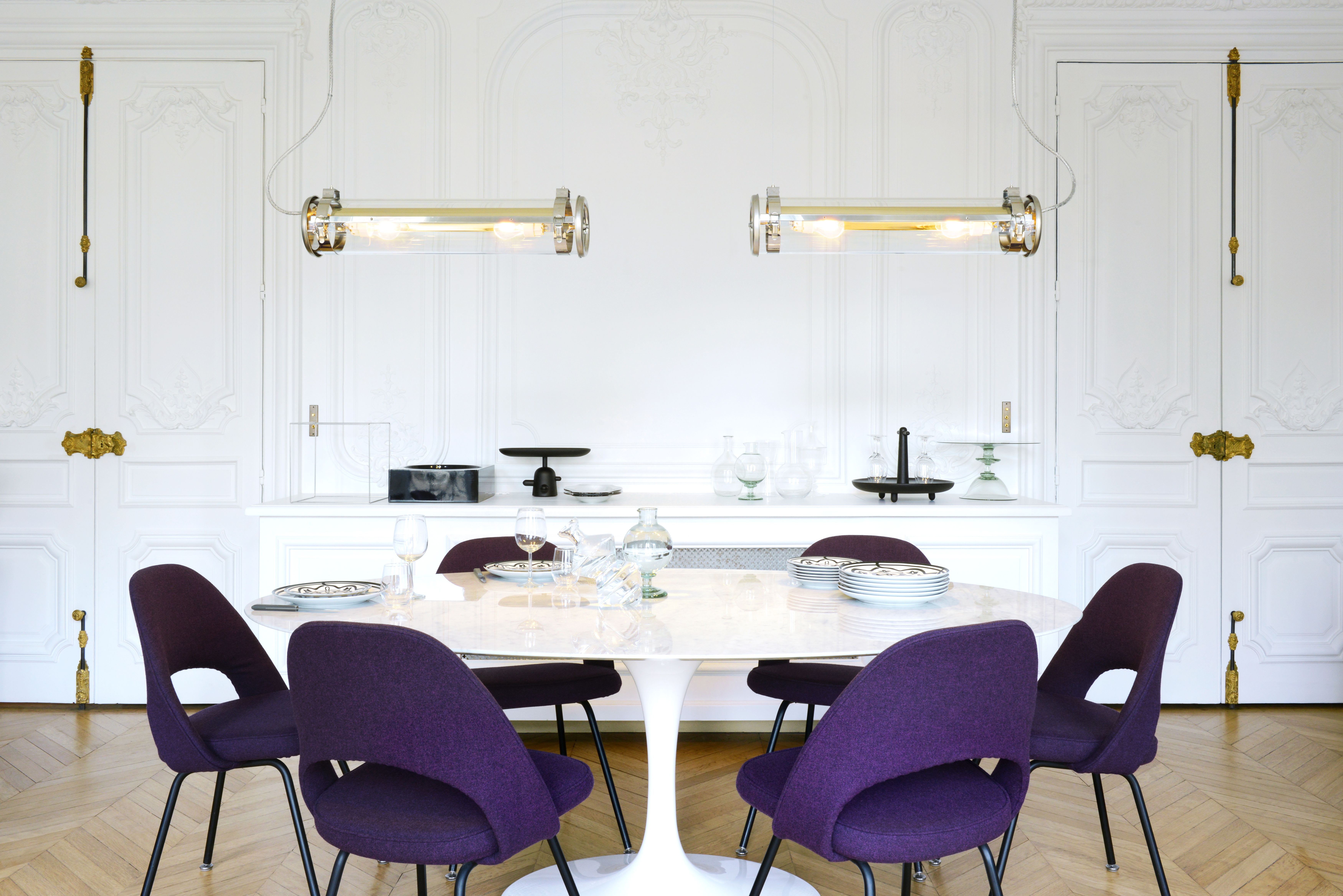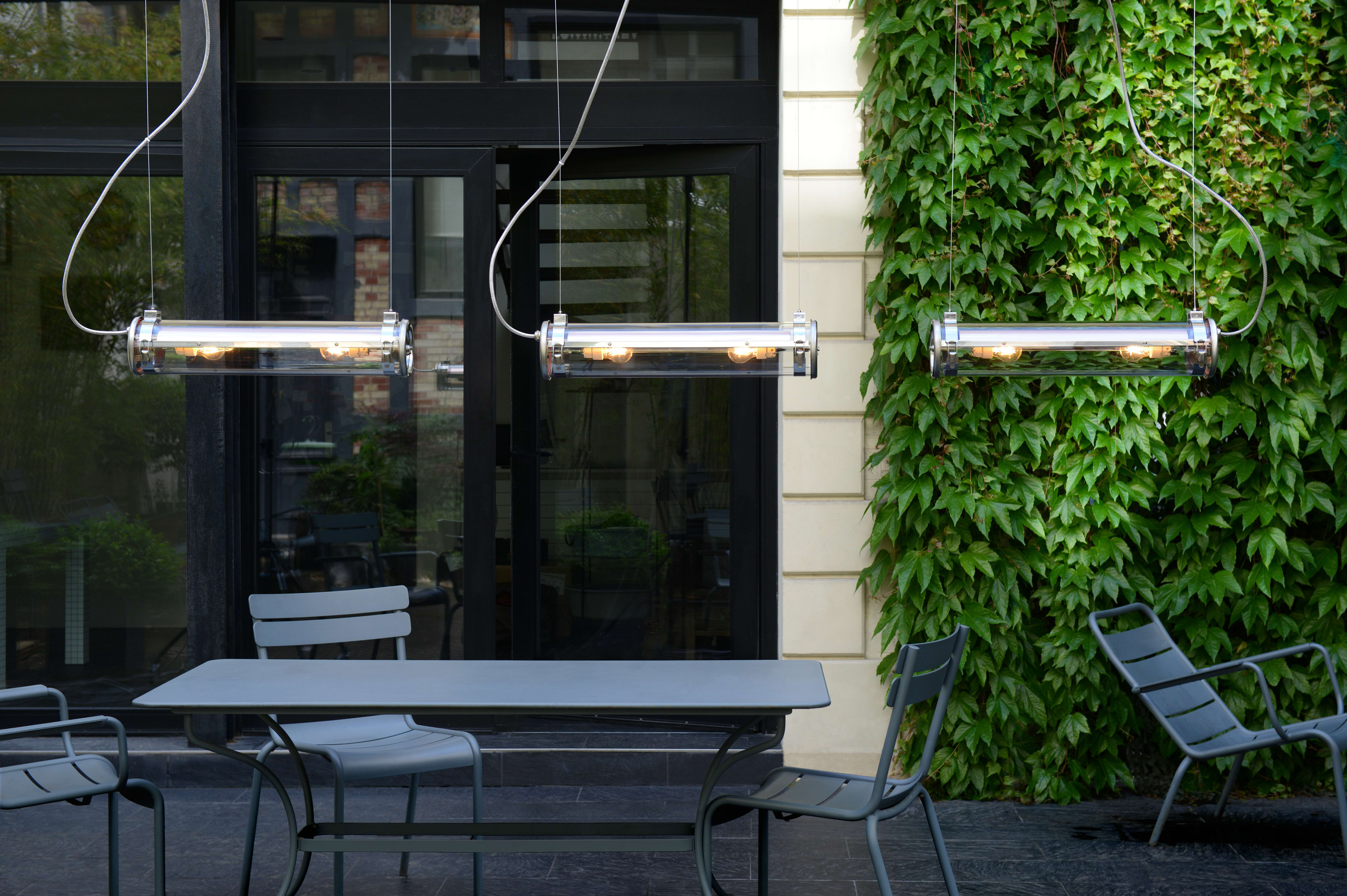 Luminaire tubulaire diamètre 133 à corps en verre et ampoules LED, hautement décoratif, idéal en suspension. Lignes épurées, finitions haut de gamme et qualité industrielle des matériaux, pour offrir une signature unique, durable et résolument contemporaine à vos espaces intérieurs ou extérieurs.