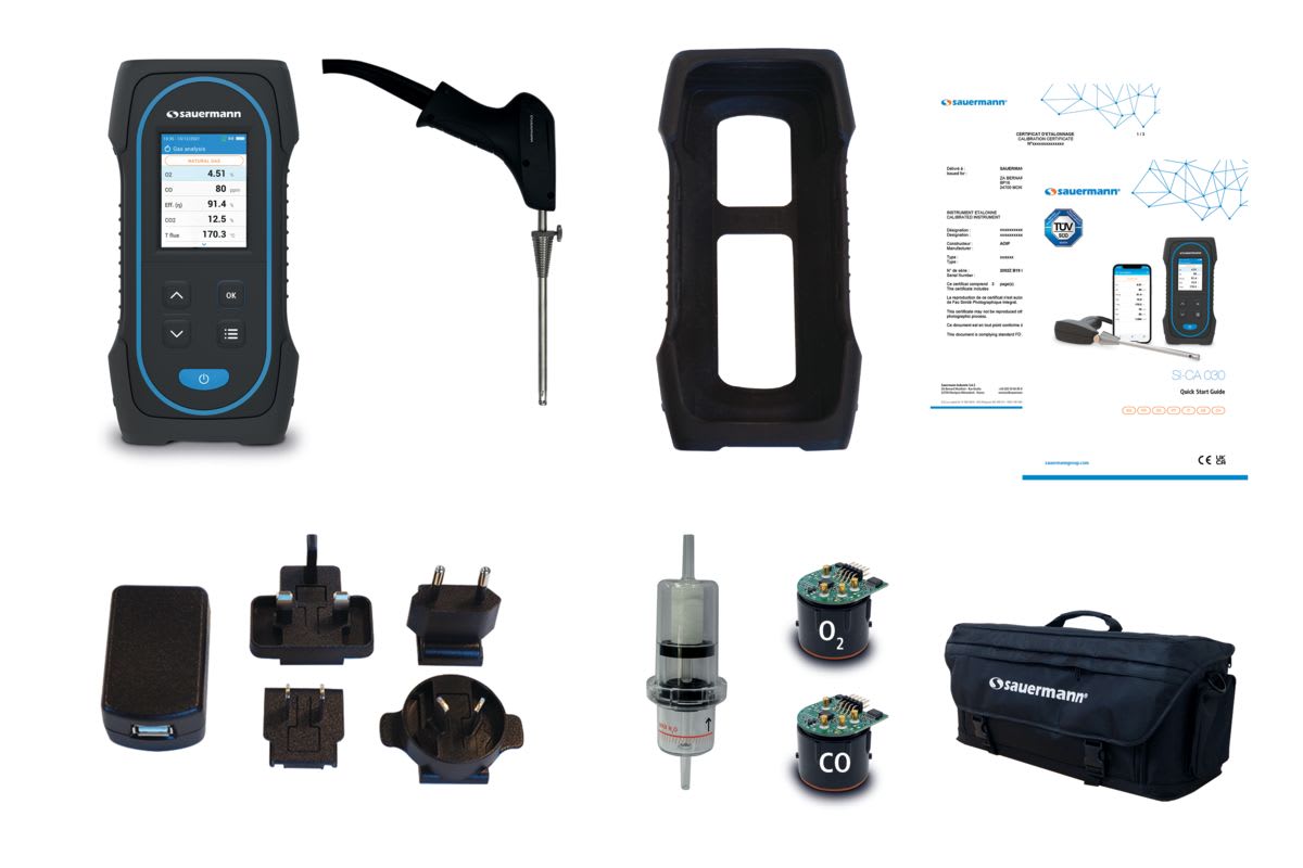 Analyseur de combustion Si-CA 030 Kit 2AS avec 2 cellules (O2, CO), sonde 180 mm avec tuyau de 2 m, sacoche de transport et certificat d'étalonnage Garantie 2 ans
