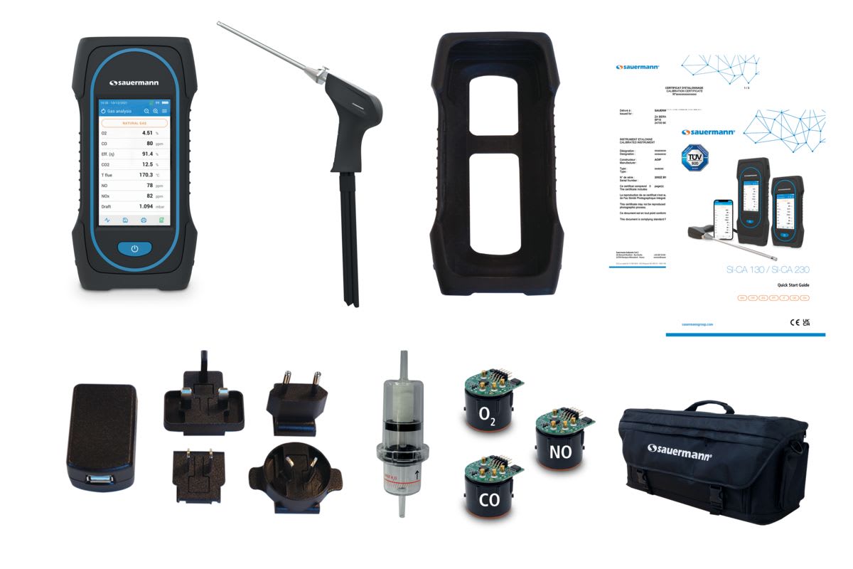Analyseur de combustion Si-CA 130 Kit 3BS avec 3 cellules (O2, CO, NO), sonde 300 mm avec tuyau de 3 m, sacoche de transport et certificat d'étalonnage Garantie 2 ans