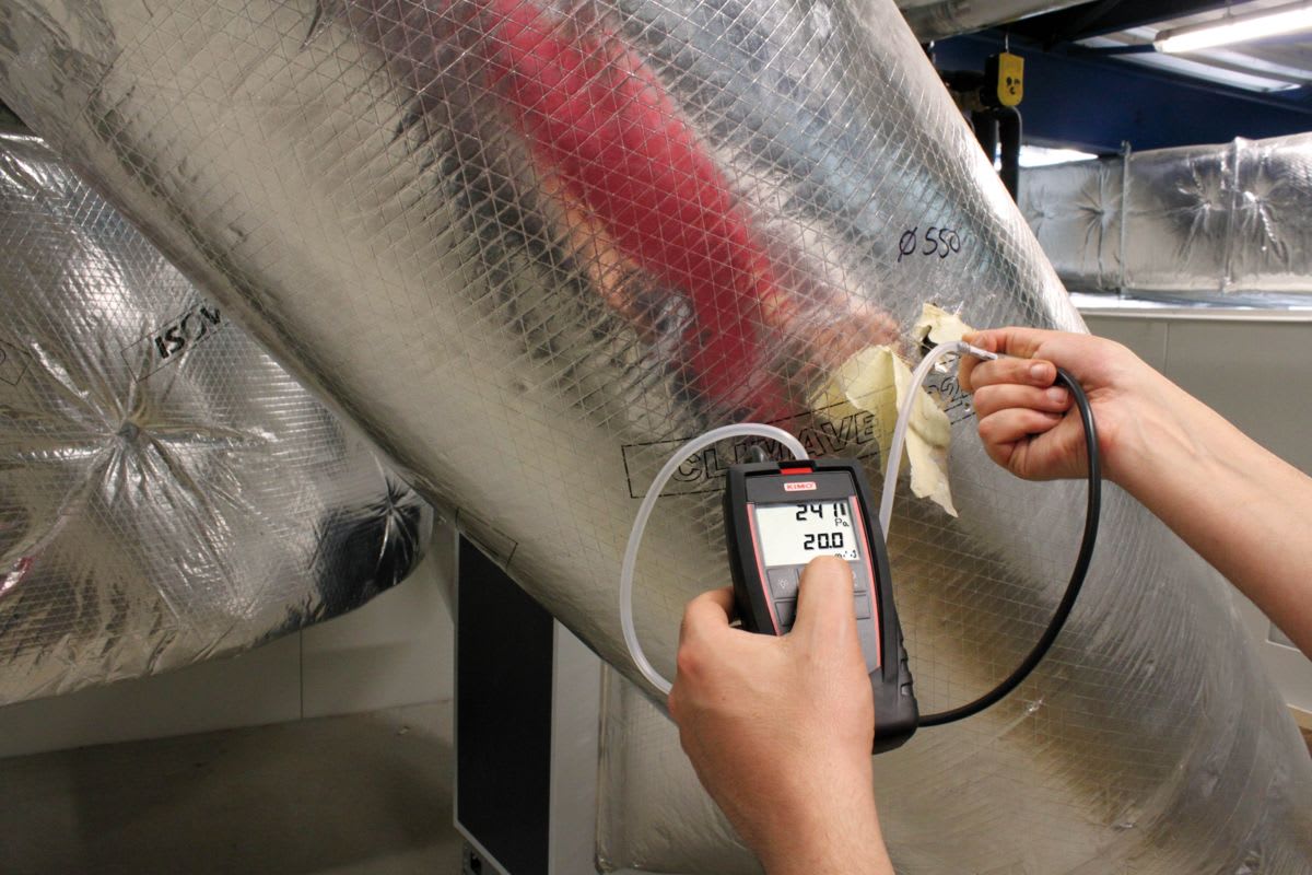 Gamme de mesure : pression : -1000 à +1000 Pa, et vitesse d’air : 0 à 40 m/s
