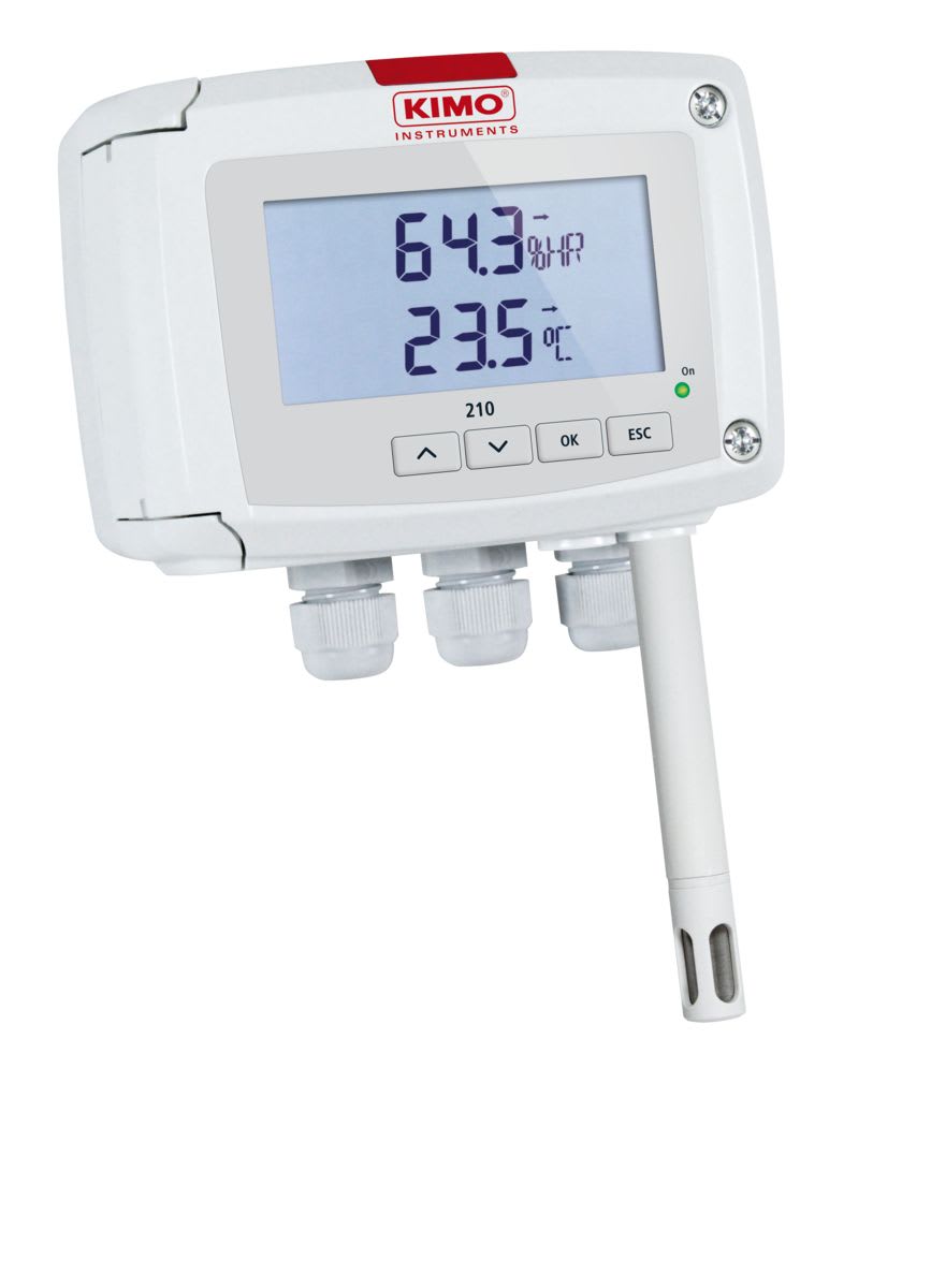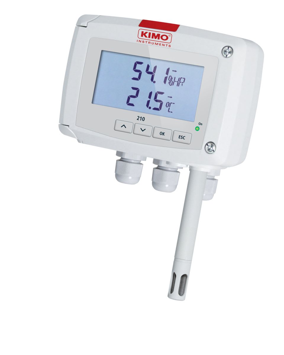 Le TH 210-R Kimo mesure l’humidité et la température de 0 à 100 %HR et -20 à +80 °C.