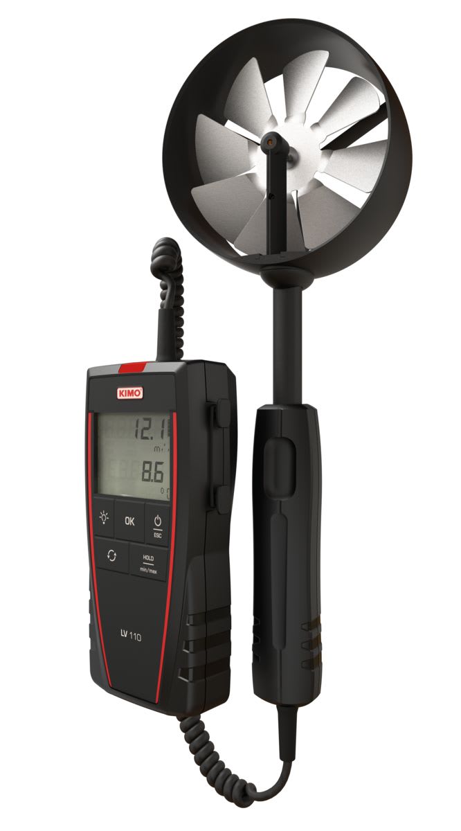 Gamme de mesure : Vitesse d’air : 0,3 à 35 m/s, débit : 0 à 99 999 m3/h, et température : 0 à +50 °C