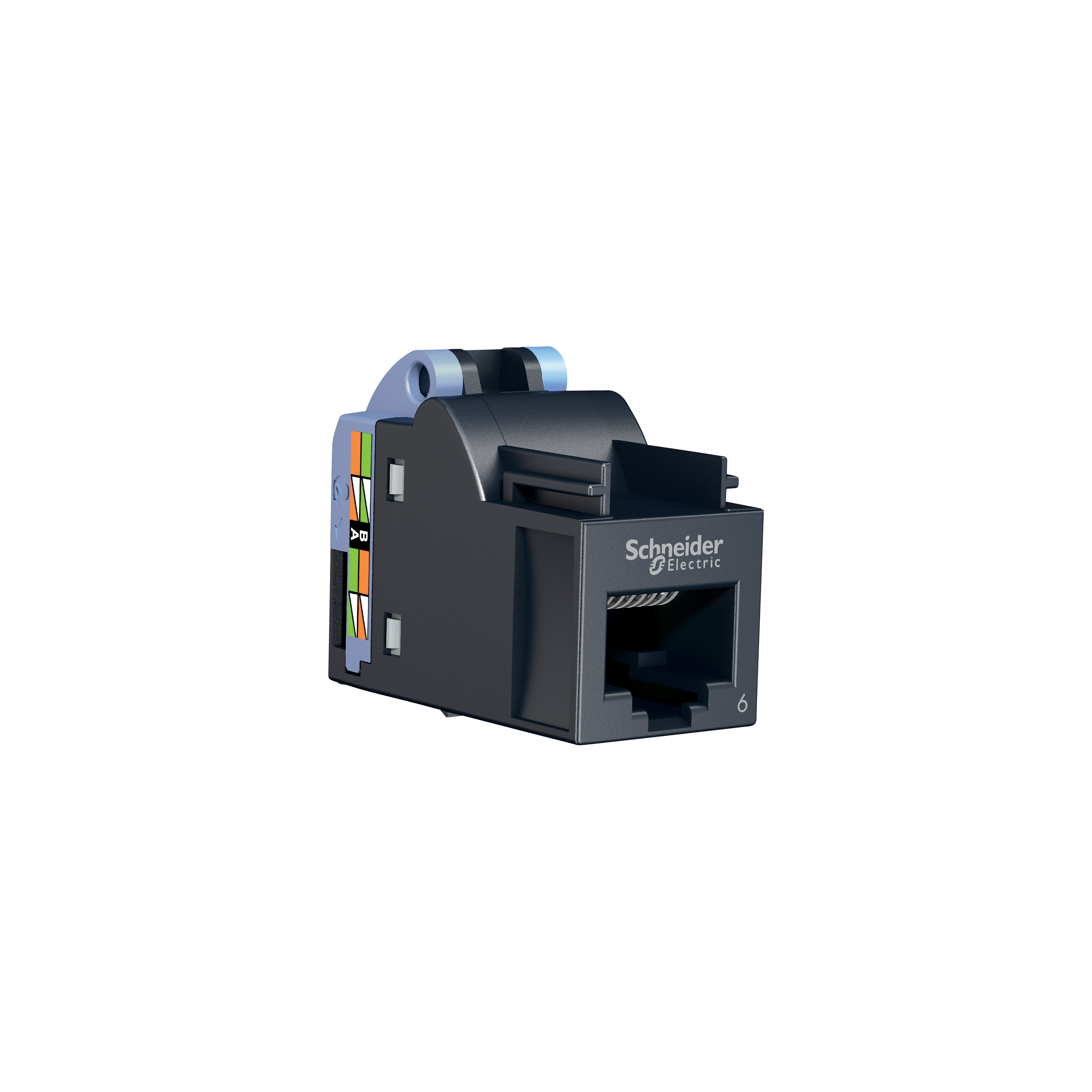 Actassi S-One connecteur RJ45 catégorie 6 non blindé sans outil - H28mmxL33mmxP18mm - connecteur : gris foncé, organisateur des fils : bleu (ABS + PC) - configuration de cablage : 568 A/B - courant assigné d'emploi : 1,5 A à 25 °C