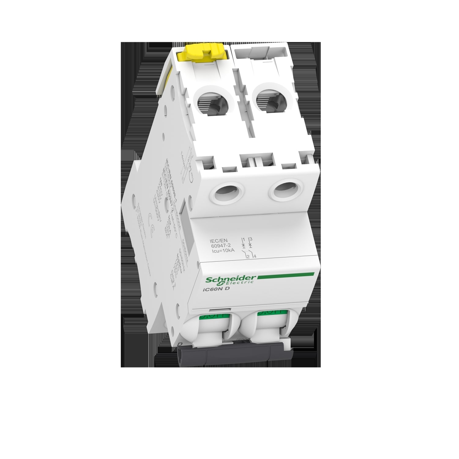 Schneider Electric - Acti9 iC60N - Disjoncteur - 2P - 63A - Courbe D - 400Vca - 6000A/10kA - A9F75263