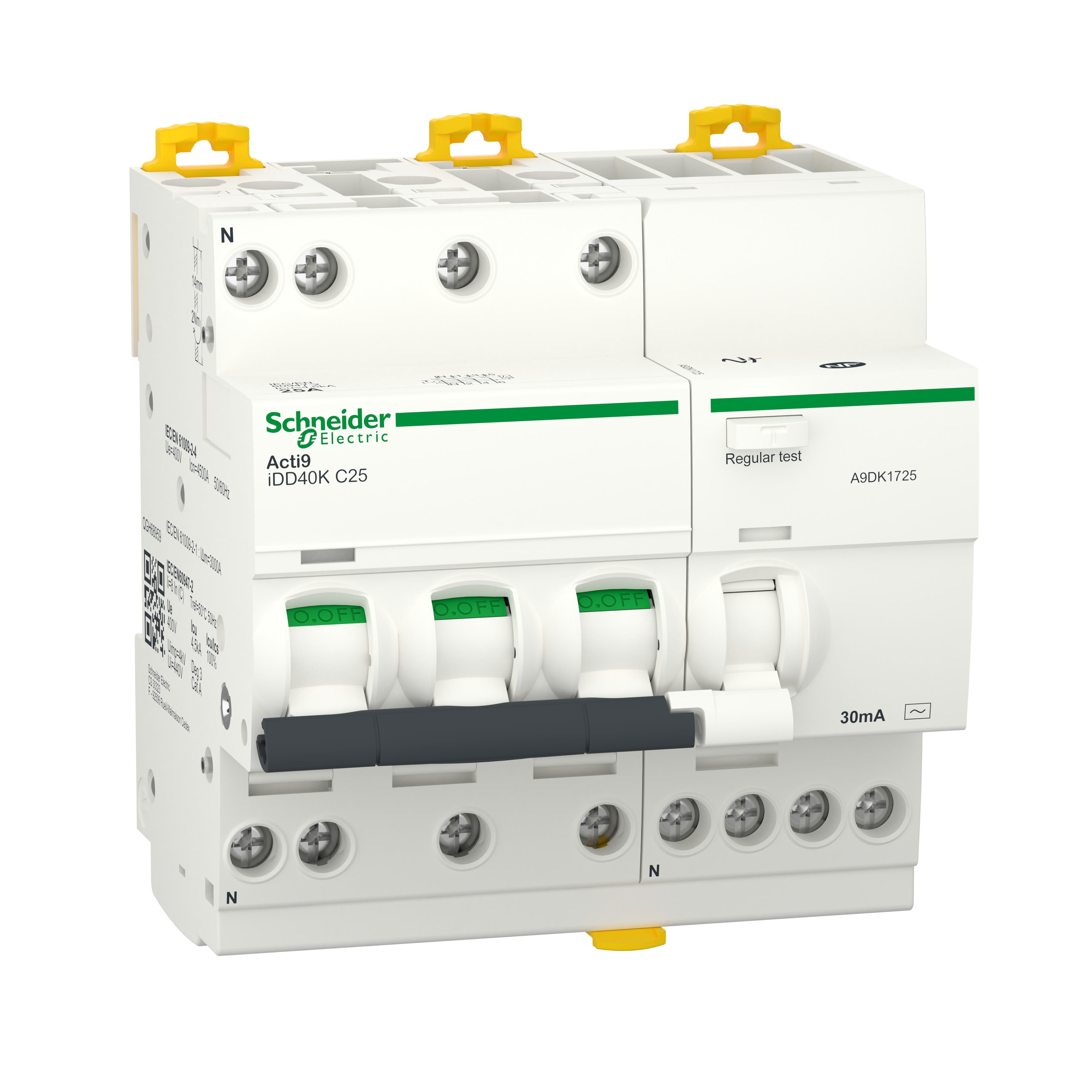 Schneider Electric - Acti9 iDD40K - Disjoncteur dif - 3P+N - 25A - Crb C 4500A/4,5kA - 30mA Type AC - A9DK1725