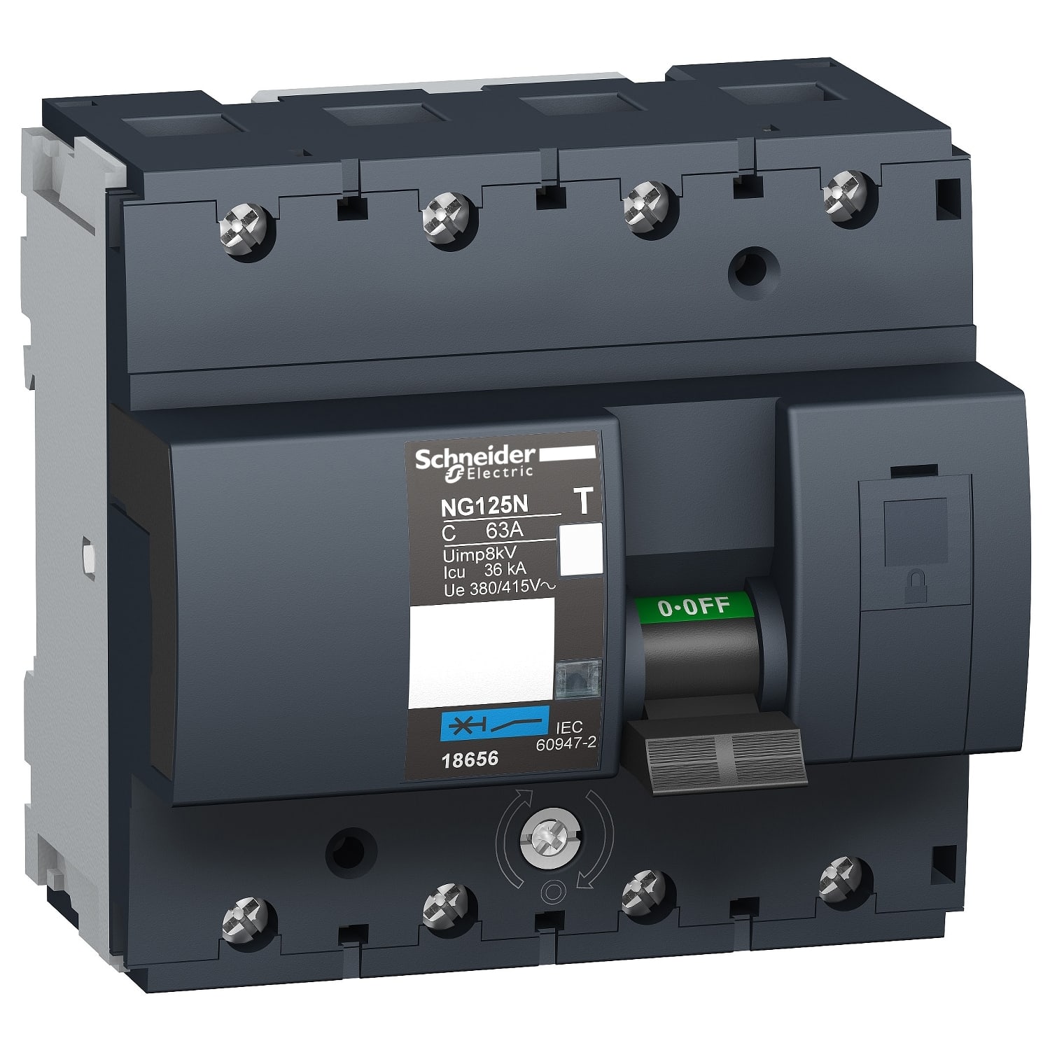 Schneider Electric - Acti9 NG125N - Disjoncteur modulaire - 4P - 63A - Courbe C - 25kA - 18656