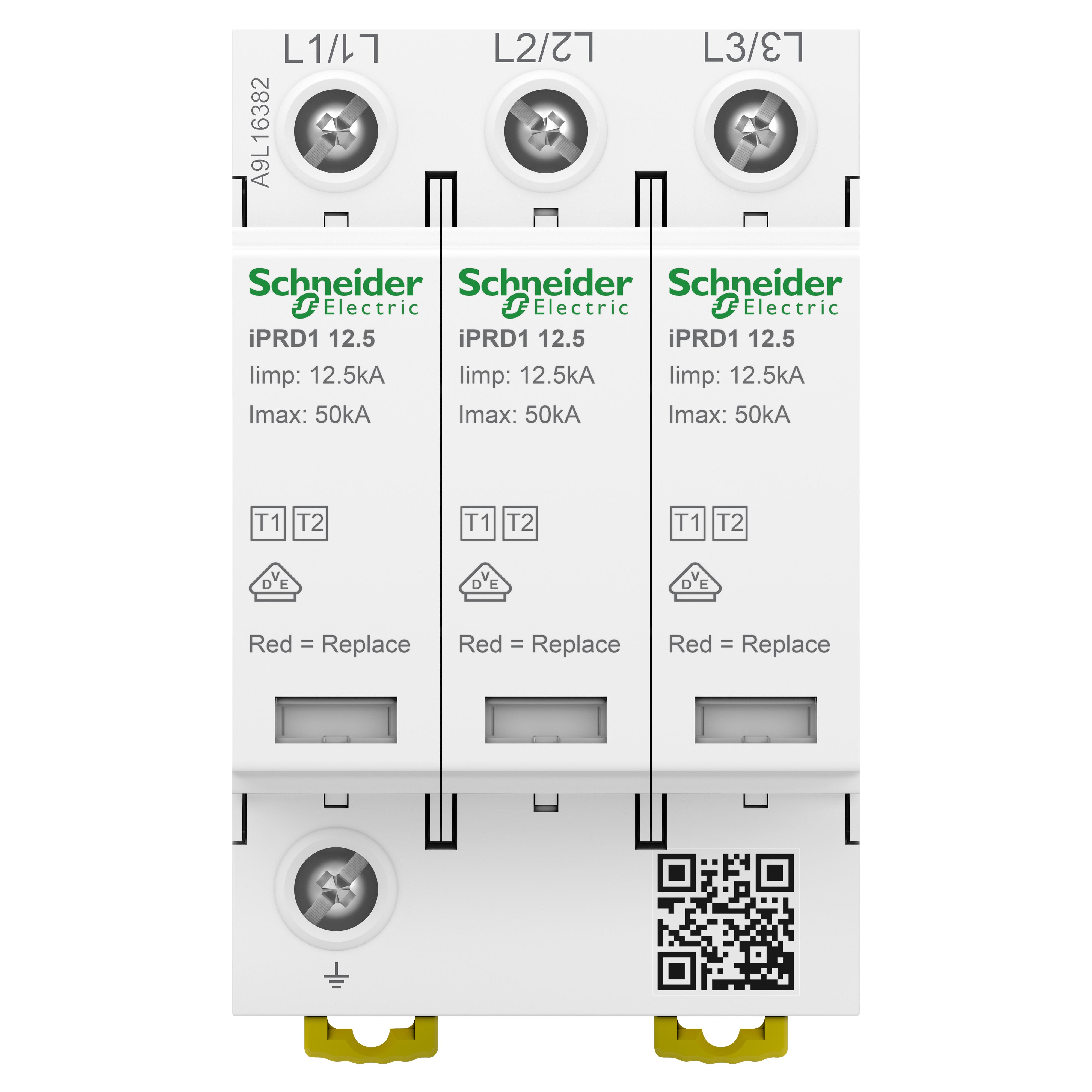 Schneider Electric - Acti9 - Parafoudre iPRD1 12,5r - 3P - Débro T1 - 350V - Report signal - TT/TN - A9L16382