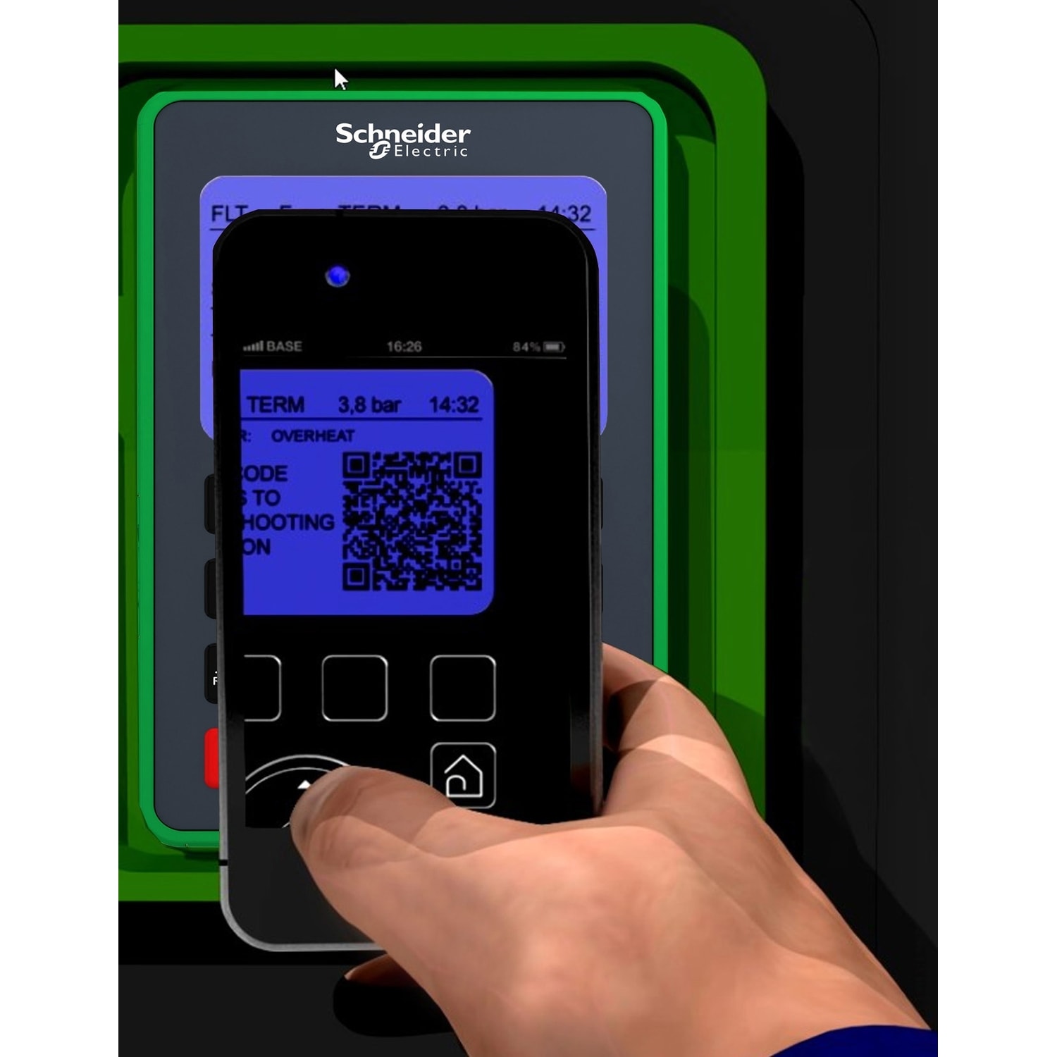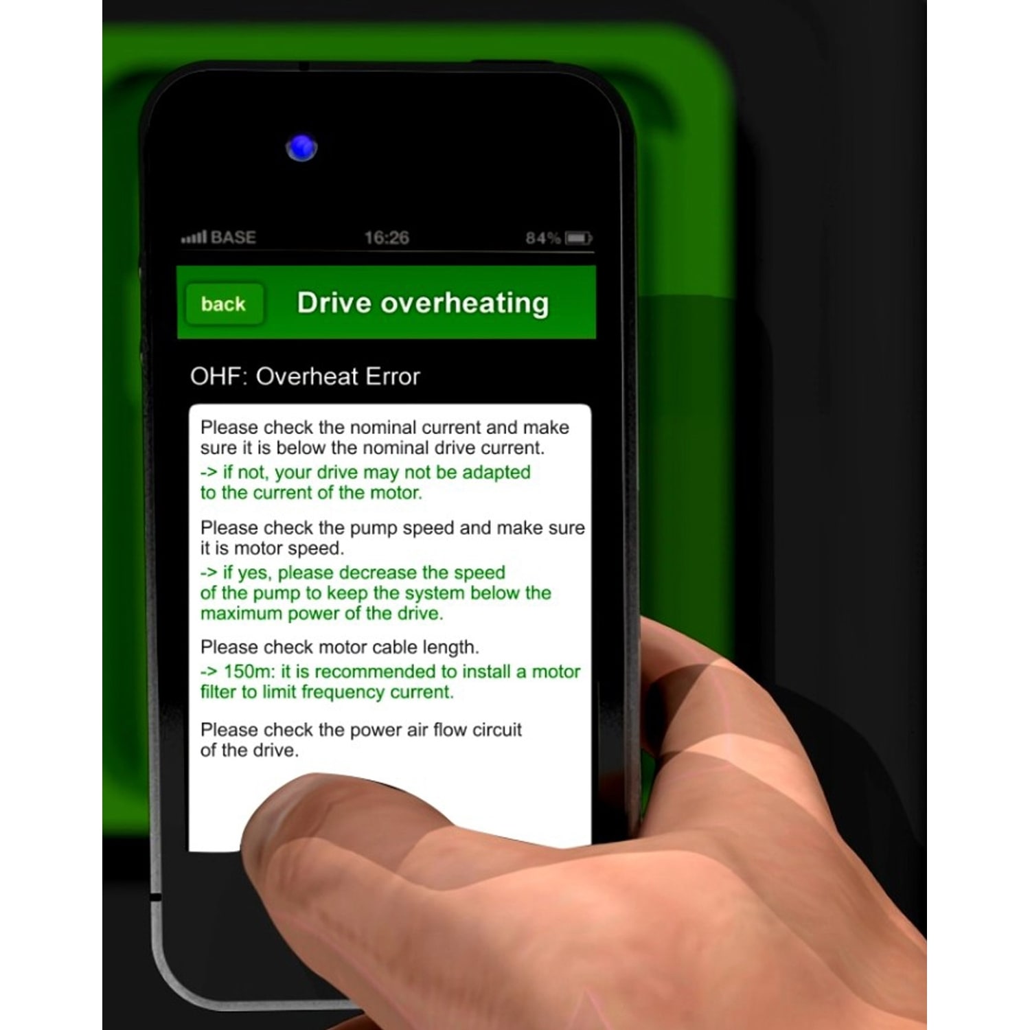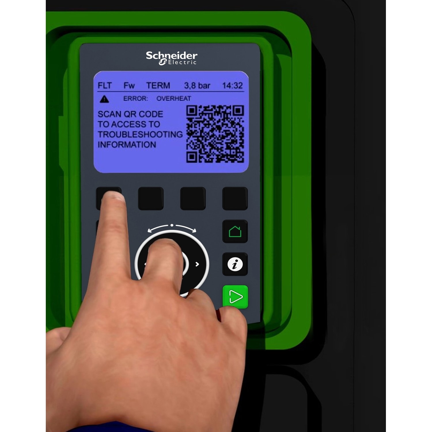 La gamme ATV630 apporte des informations digitales (QR Code) dynamiques avec visualisation des courbes de pompe et un affichage des unités en pression/débit pour une maintenance conditionnelle et un variateur de vitesse orienté Services.