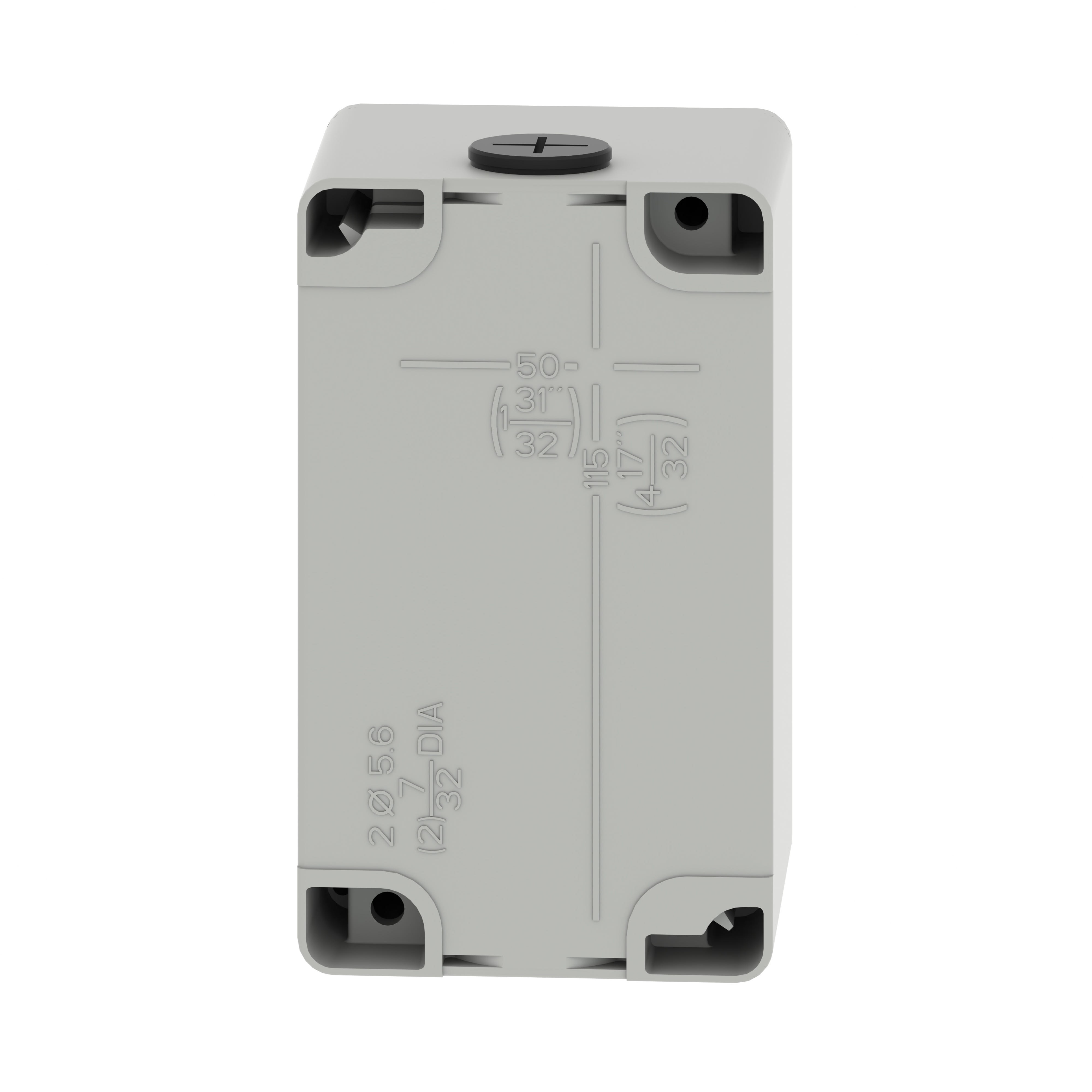Ce produit fait partie de la gamme XAP, une offre de postes de commandes métalliques pour les séries XB4 et XB5 de boutons-poussoirs Ø 22 mm. XAPD2503 est un boîtier vide de couleur grise (RAL7035). Cette version avec 3 trous permet de combiner les fonctions XB4/XB5 dans un petit volume. Sa dimension laisse un espace confortable pour le câblage. Il est possible de personnaliser le boîtier XAP à l'aide du sélecteur de produit et du configurateur en ligne Harmony. Ce boîtier a été normalisé avec un taraudage pour presse-étoupes ISO pour être entièrement conforme à la norme CEI 62444. Il est livré avec deux trous M20. La protection contre les chocs électriques est de classe I selon EN/IEC 61140 et le niveau de protection contre les chocs mécaniques jusqu'à IK07 selon EN/IEC 62262. Il s'agit d'un boîtier en alliage de zinc et les dimensions sont de 80 x 130 x 77 mm (largeur x hauteur x profondeur)et il pèse 0,815 kg. Le boîtier XAPD est conçu pour les fabricants de matériel d'origine (OEM) qui répondent à des exigences d'applications lourdes telles que la manutention des matériaux, l'agroalimentaire, les éoliennes, l'exploitation minière, les minéraux et les métaux (MMM), les véhicules, etc. Ce boîtier est conforme aux normes EN/IEC 60529 et EN/IEC 60947-5-1 et est fourni avec les certifications CE, UL, cULus et EAC. Des marquages entièrement personnalisables sont disponibles pour améliorer l'expérience d'interface et l'esthétique du boîtier. Le boîtier XAP est conçu pour être monté en position verticale et horizontale avec 4 trous de fixation. La forme permet une combinaison entre simplicité, flexibilité de personnalisation et conception attrayante pour les machines. Il est respectueux de l'environnement et conforme aux directives telles que RoHS, DEEE et REACh relatives à la protection de l'environnement.