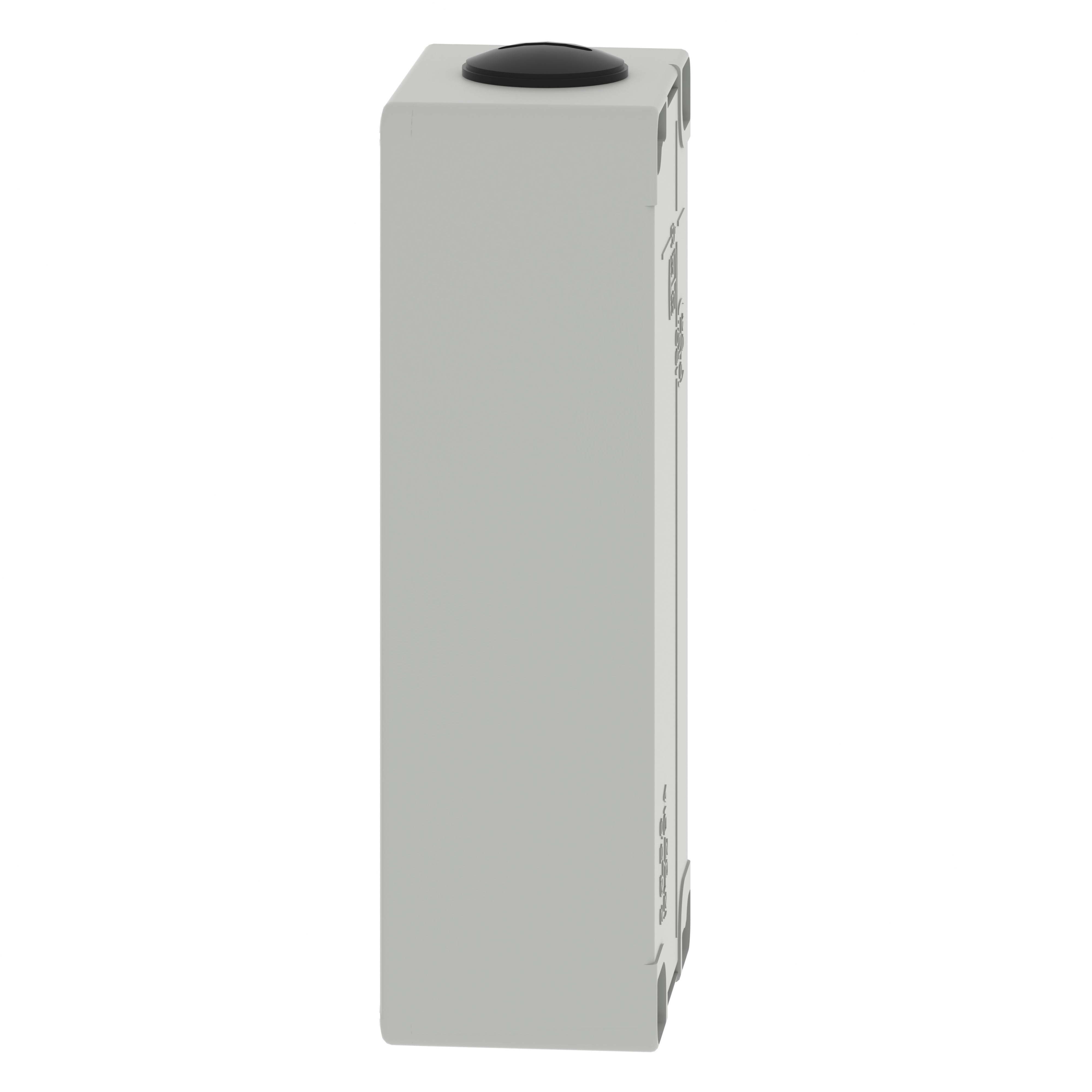 Ce produit fait partie de la gamme XAP, une offre de postes de commandes métalliques pour les séries XB4 et XB5 de boutons-poussoirs Ø 22 mm. XAPD3206 est un boîtier vide de couleur grise (RAL7035). Cette version avec 6 trous permet de combiner les fonctions XB4/XB5 dans un petit volume. La taille reste compacte. Il est possible de personnaliser le boîtier XAP à l'aide du sélecteur de produit et du configurateur en ligne Harmony. Ce boîtier a été normalisé avec un taraudage pour presse-étoupes ISO pour être entièrement conforme à la norme CEI 62444. Il est livré avec deux trous M25. La protection contre les chocs électriques est de classe I selon EN/IEC 61140 et le niveau de protection contre les chocs mécaniques jusqu'à IK07 selon EN/IEC 62262. Il s'agit d'un boîtier en alliage de zinc et les dimensions sont de 80 x 175 x 51,5 mm (largeur x hauteur x profondeur)et il pèse 0,850 kg. Le boîtier XAPD est conçu pour les fabricants de matériel d'origine (OEM) qui répondent à des exigences d'applications lourdes telles que la manutention des matériaux, l'agroalimentaire, les éoliennes, l'exploitation minière, les minéraux et les métaux (MMM), les véhicules, etc. Ce boîtier est conforme aux normes EN/IEC 60529 et EN/IEC 60947-5-1 et est certifiée CE et EAC. Des marquages entièrement personnalisables sont disponibles pour améliorer l'expérience d'interface et l'esthétique du boîtier. Le boîtier XAP est conçu pour être monté en position verticale et horizontale avec 4 trous de fixation. La forme permet une combinaison entre simplicité, flexibilité de personnalisation et conception attrayante pour les machines. Il est respectueux de l'environnement et conforme aux directives telles que RoHS, DEEE et REACh relatives à la protection de l'environnement.