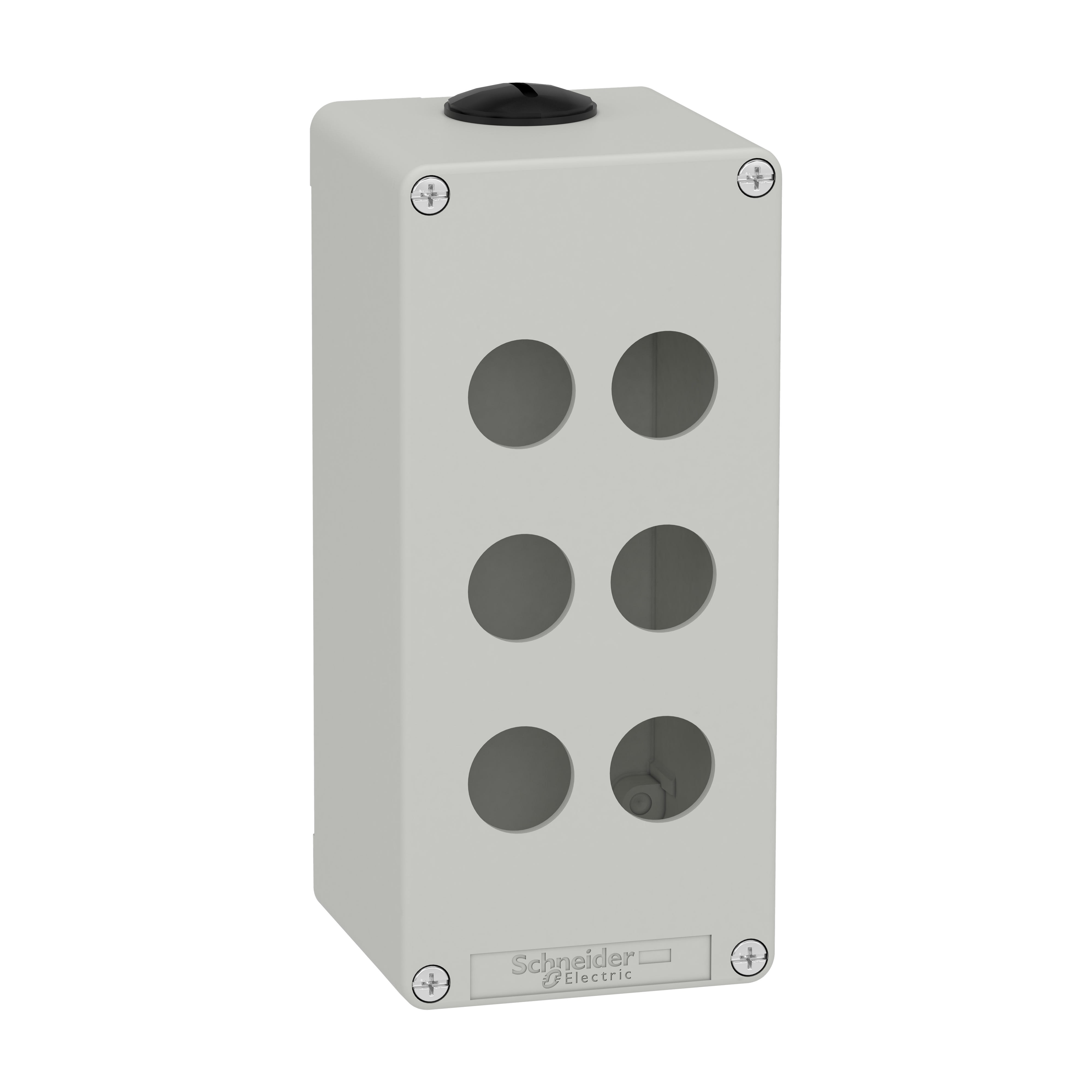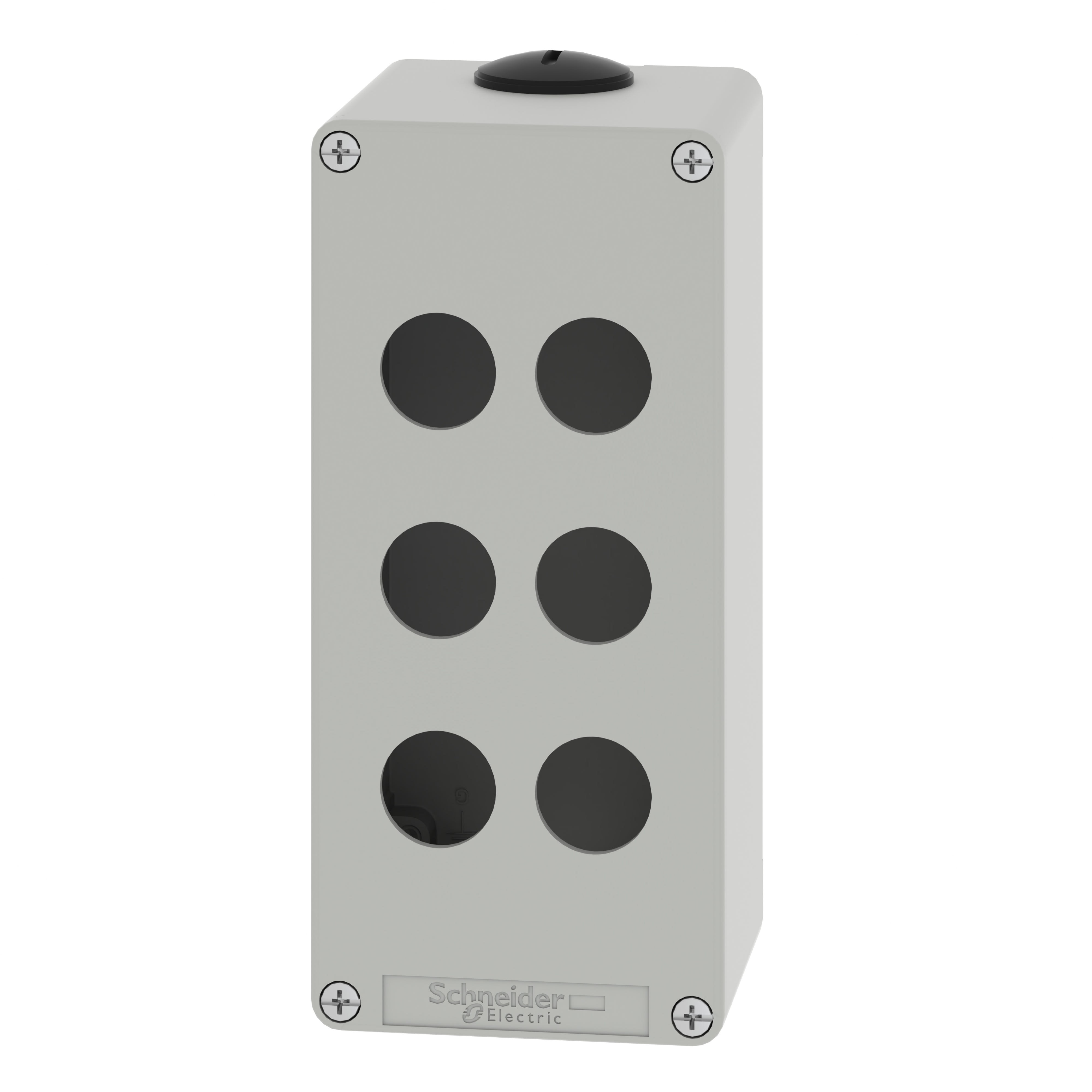 Harmony XAPD - Boite à boutons à composer - boitier métallique en alliage de zinc - Gris RAL7035 - 80 x 175 x 77 mm - 6 trous Ø 22mm - Entraxe horizontale 40 mm - 2 presse-étoupes ISO M25 - IP65|66|69 IK07 - EAC
