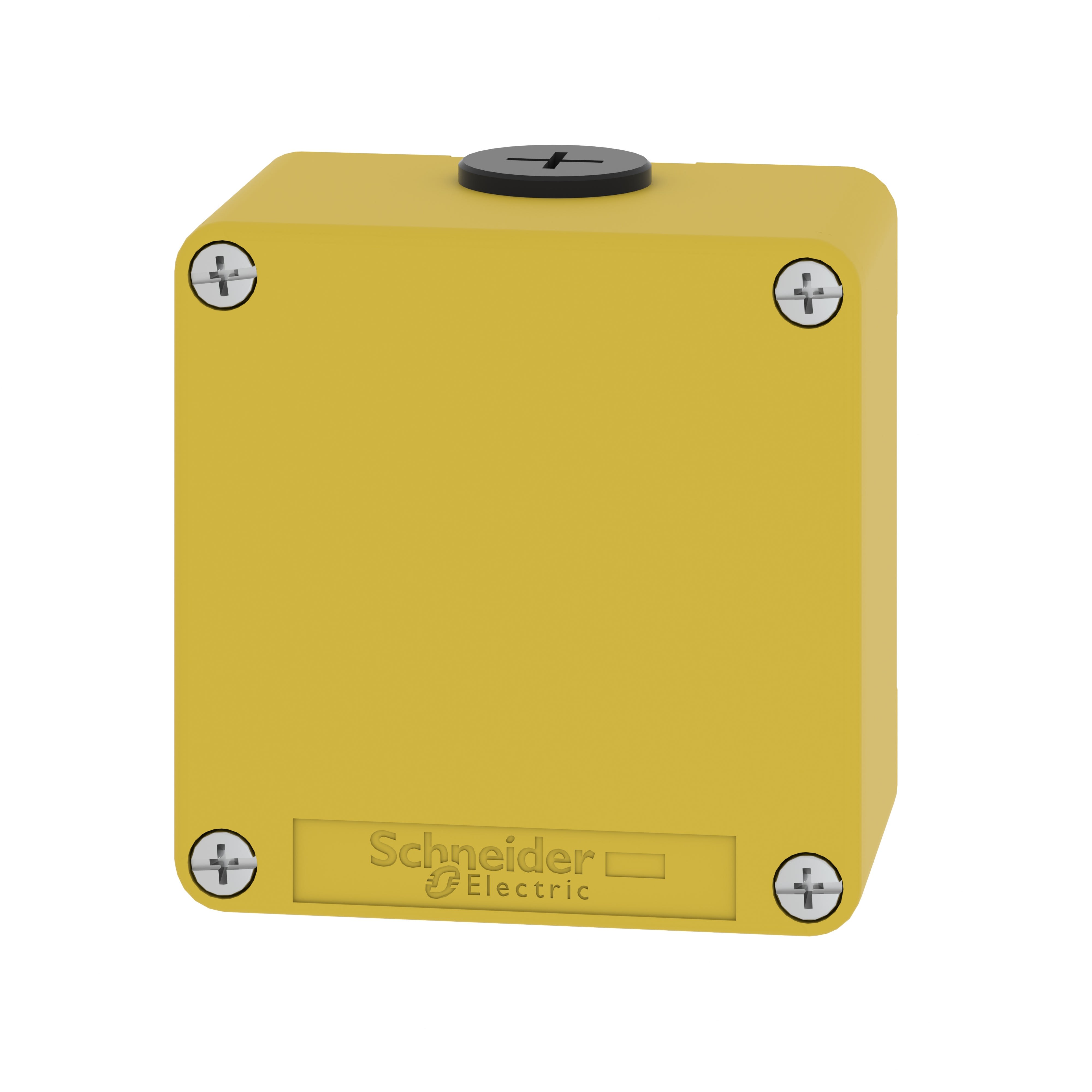 Schneider Electric - Boite métal vide jaune pour arrêts d'urgence M20 non percée 80x80x51,5 UL cULus - XAPK11