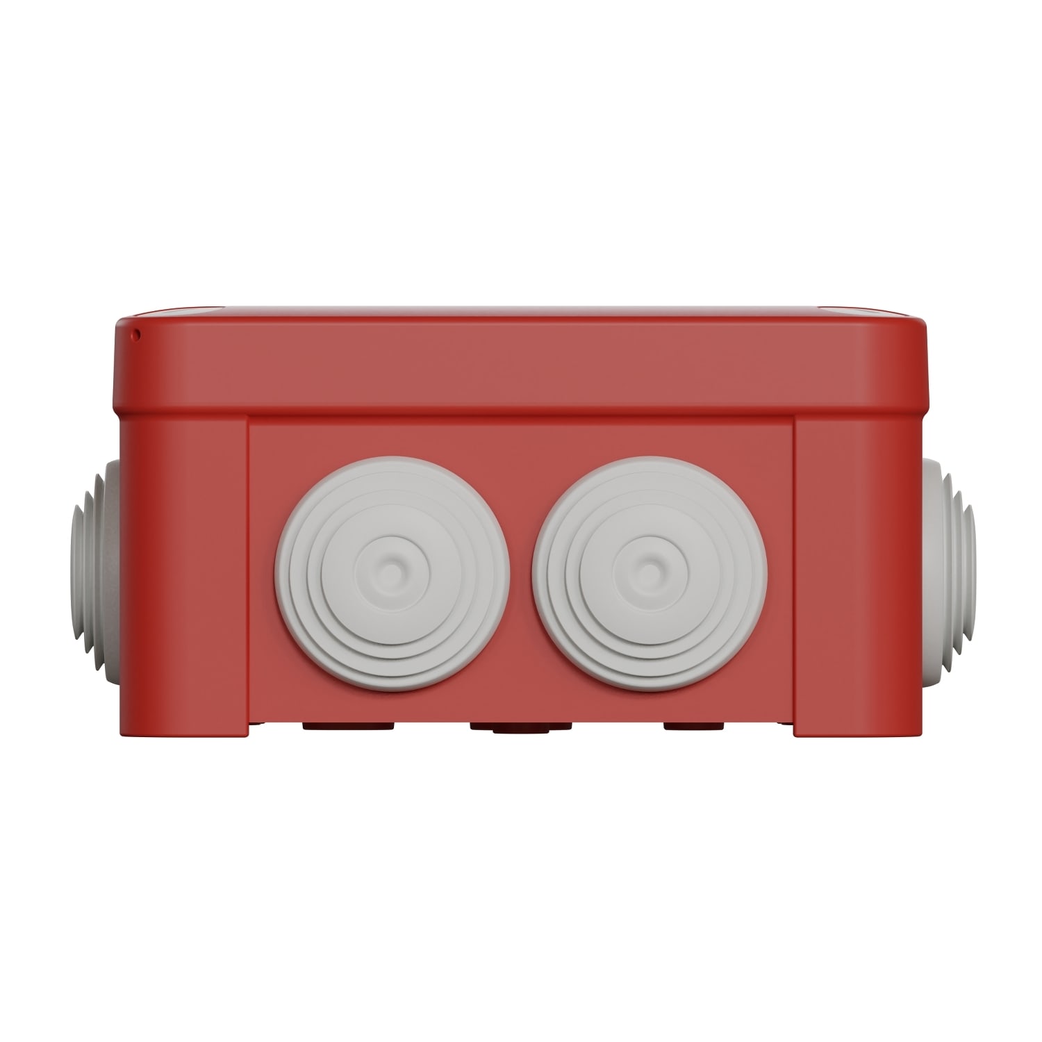 Mureva Box - boîte de dérivation pour circuits de sécurité en saillie - 105 x 105 x 55 mm - 7 passe-câbles Ø 25mm - vissé couvercle - 5 pièces - rouge RAL 3000 - IP55 IK07 - 960°C - CE - classe II - légèrement halogéné
